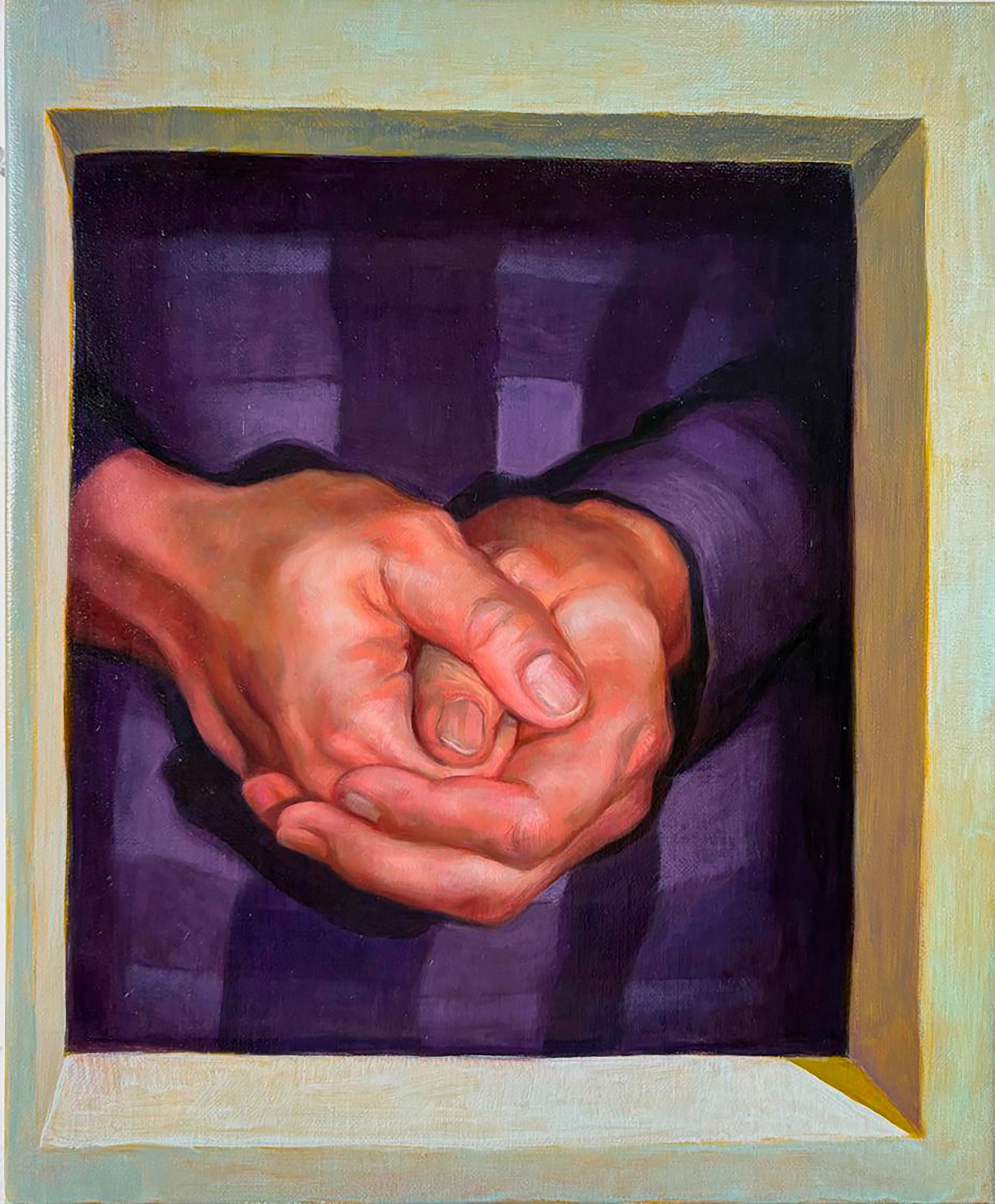 Using geometrical shapes in this series allows me to simplify the pictorial plane, while also giving me a placeholder for intricate renditions of forms and bodily shapes. The resulting effect is a combination of Renaissance and abstract painting, creating a unique and striking effect that invites the viewer to engage with the work on a deeper level.