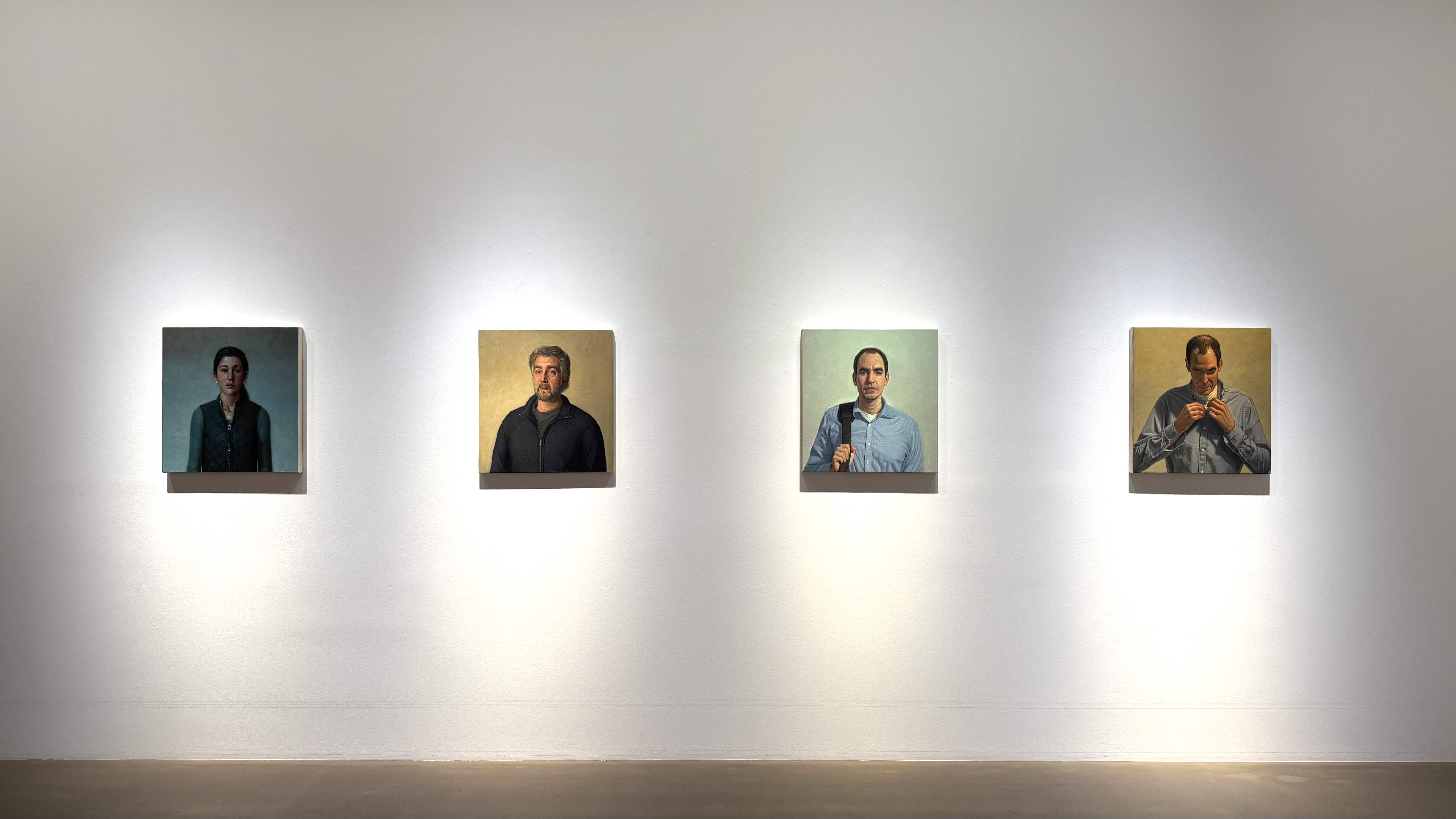 Although the exhibition mainly explores spaces and atmospheres, A House also includes four portraits. Vollo does not see them as traditional portraits, but as figures carrying their own atmosphere. The people are known to him, yet the paintings focus more on universal traits and moods than on specific identities.
