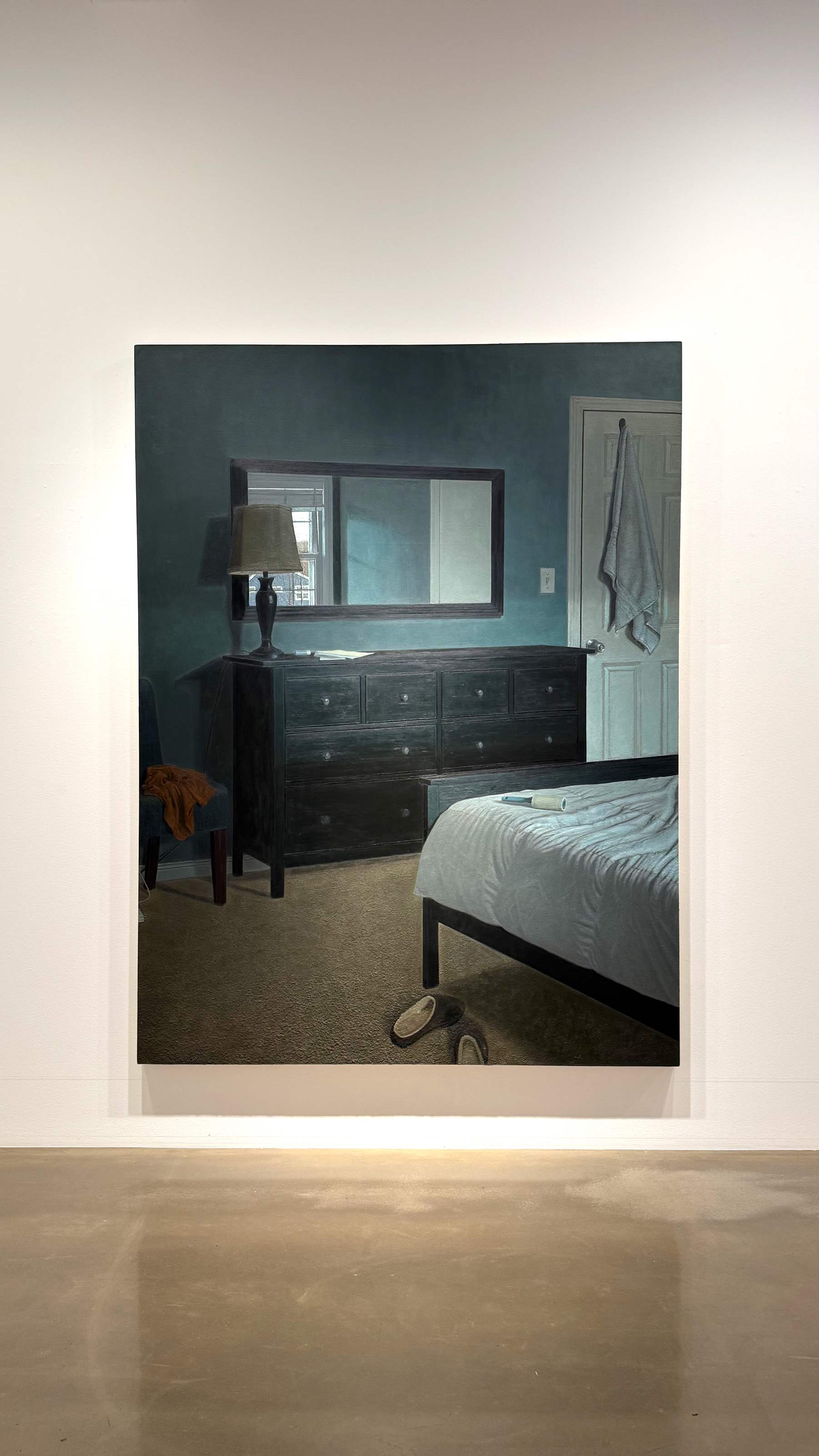 His paintings focus on the familiar and the domestic – a bed, a room, a human figure – motifs that at first appear simple but gradually unfold into more complex, existential spaces we all recognize.