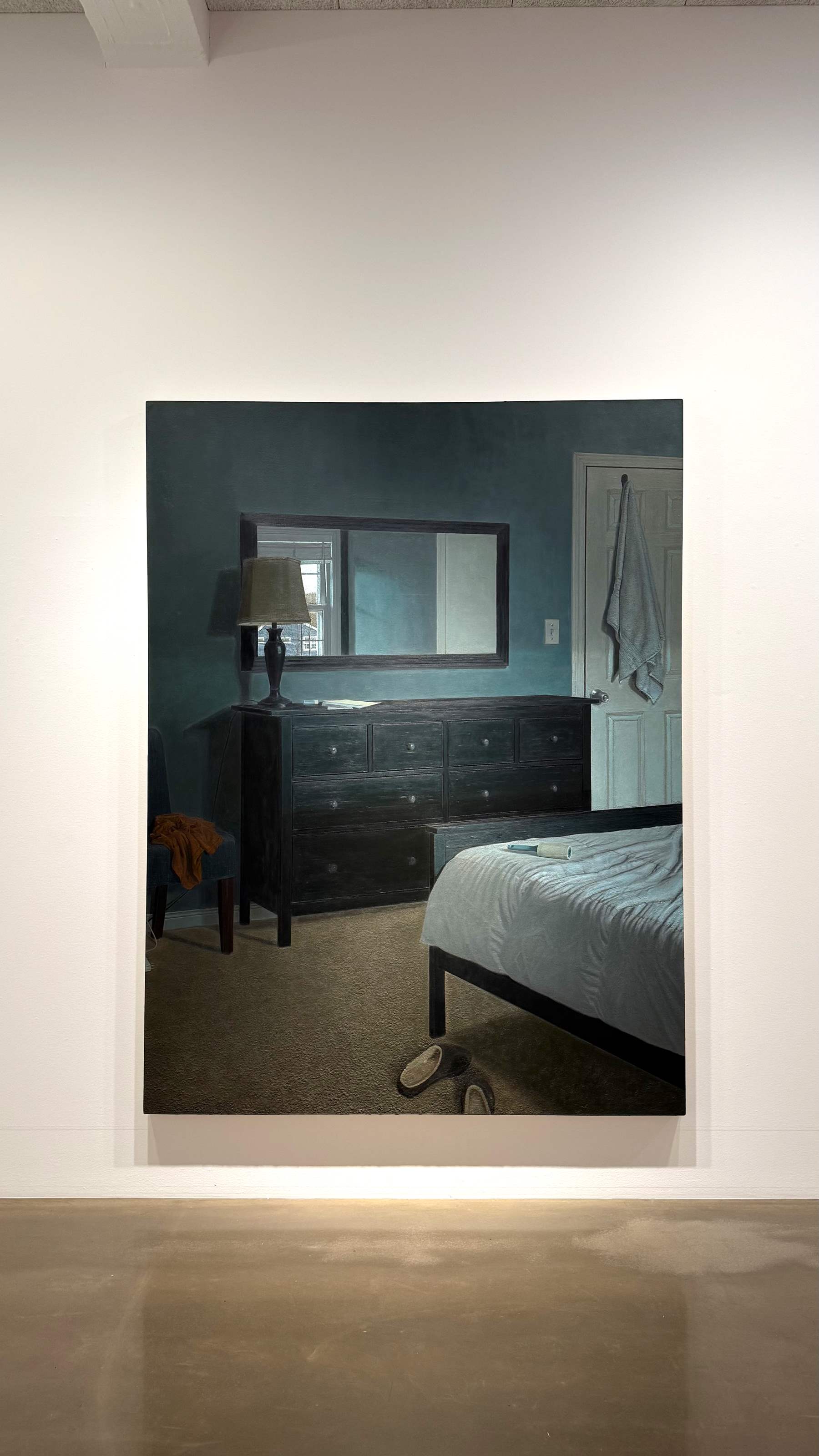 Stephen Vollo (b. 1988, Rochester, NY) works in a quiet, sensuous figurative style that carry a quiet intensity reminiscent of Vilhelm Hammershøi’s interiors. Like Hammershøi, Vollo transforms the quiet and everyday into a place of presence, where light, surface, and rhythm in the painting evoke both calm and unease. A room, a bed, a window, or a glance becomes a symbol of life’s opposites - dreams and restlessness, love and solitude, hope and loss.