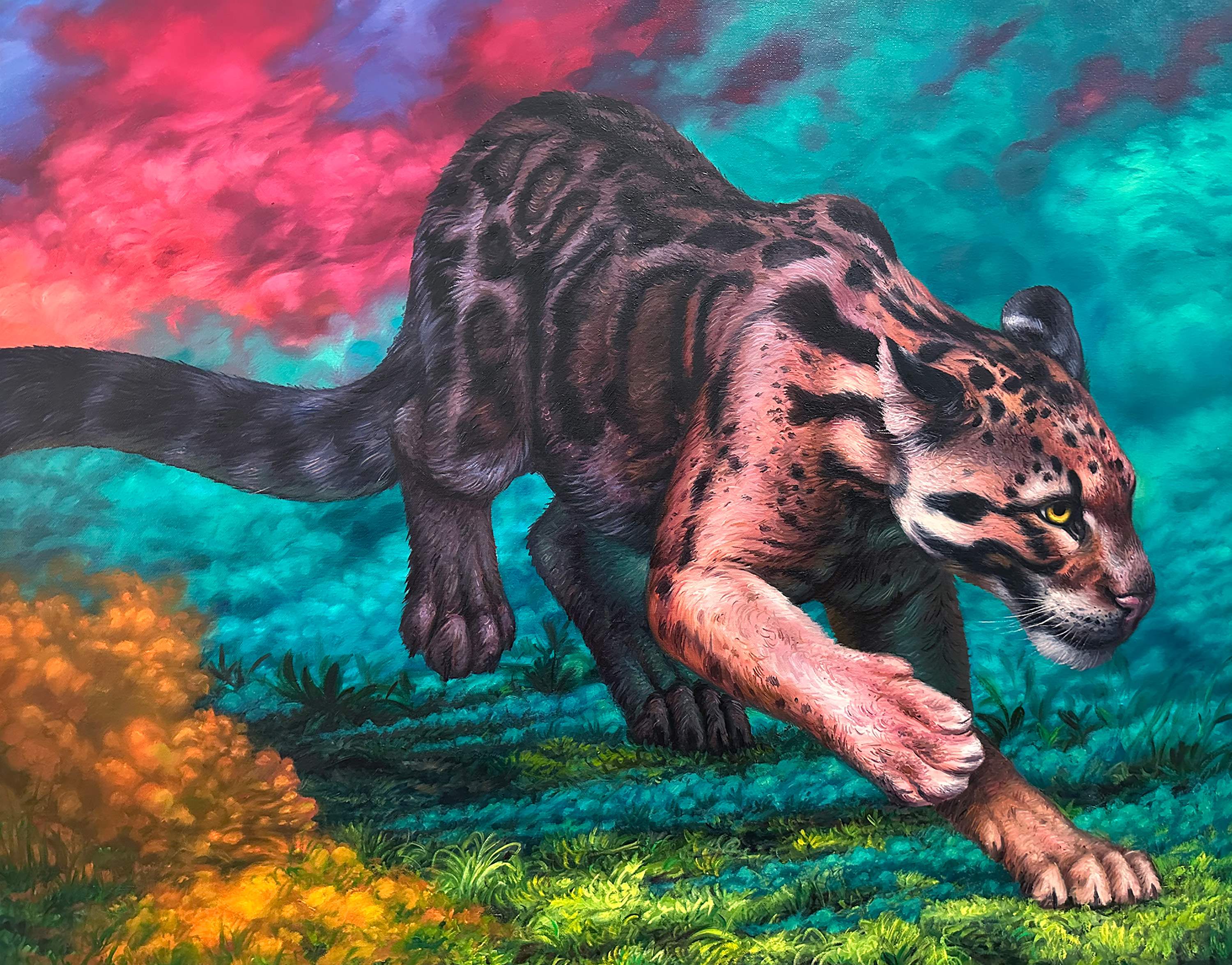 Now we live in a time when reality overtakes fiction. Extinct species can be brought back through biotechnological interventions. What is recreated is not always a return to the original, but rather a curation of life. When DNA is incomplete and must be supplemented, hybrids emerge that appear almost mythological – larger, stronger beings from a time we have never experienced.