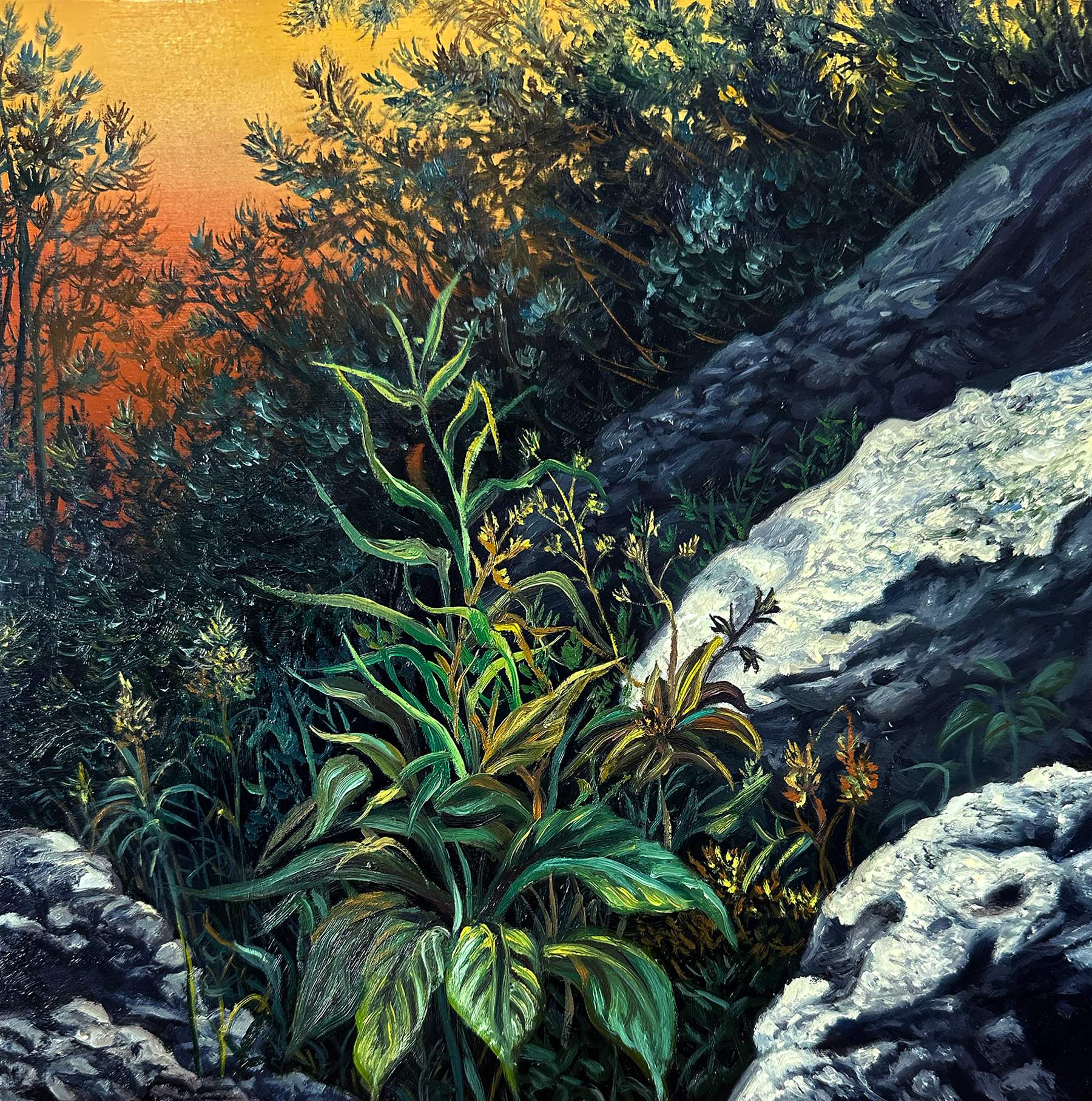 Throughout her career, Angela Gram has explored the tension between fiction and reality, the natural world and the human-made, the past and the future. She repeatedly returns to questions about how our reality changes, how ecosystems shift, and how species disappear. Her paintings have served as a form of documentation of endangered species, showing images of life that future generations may never see.