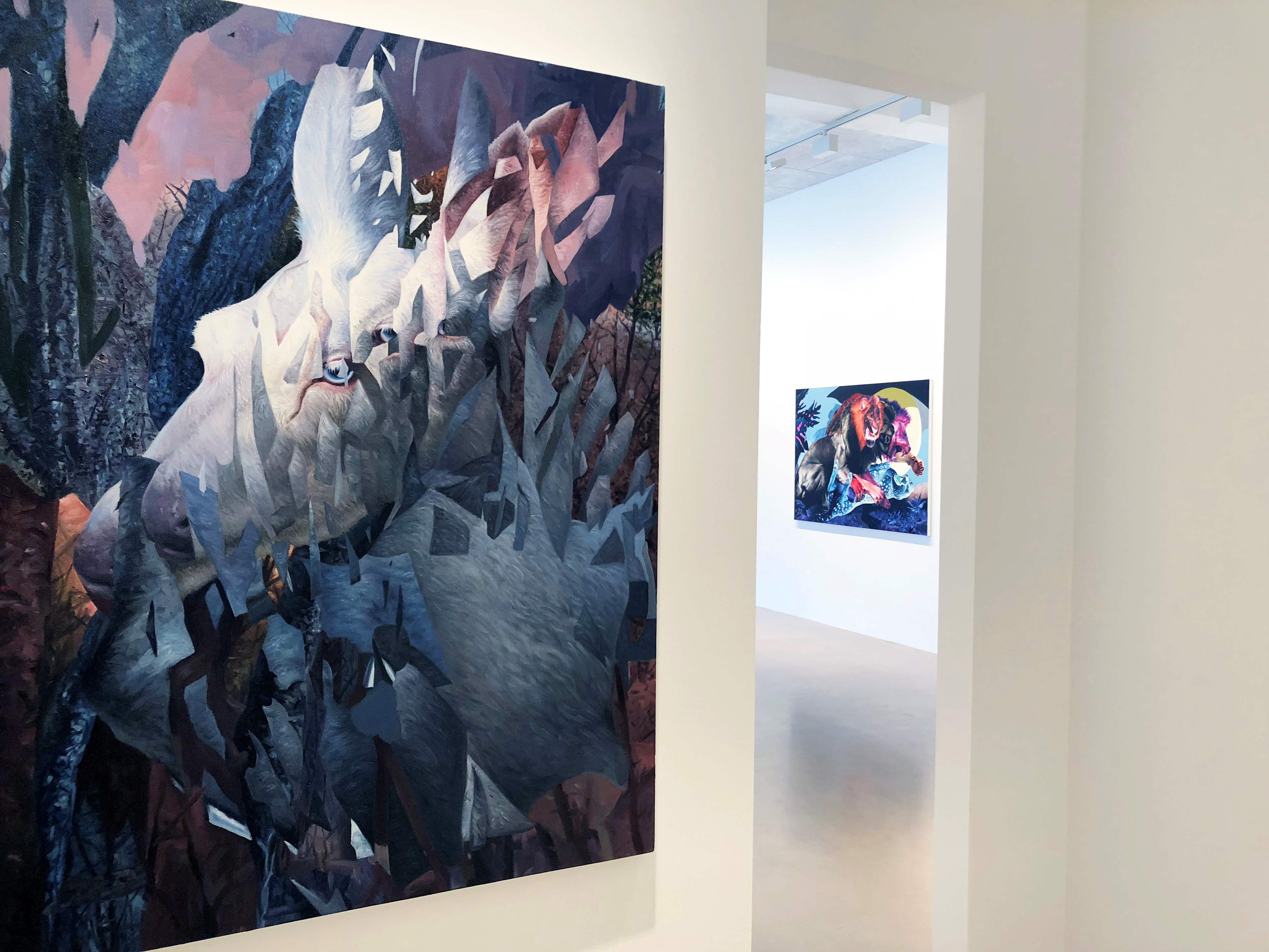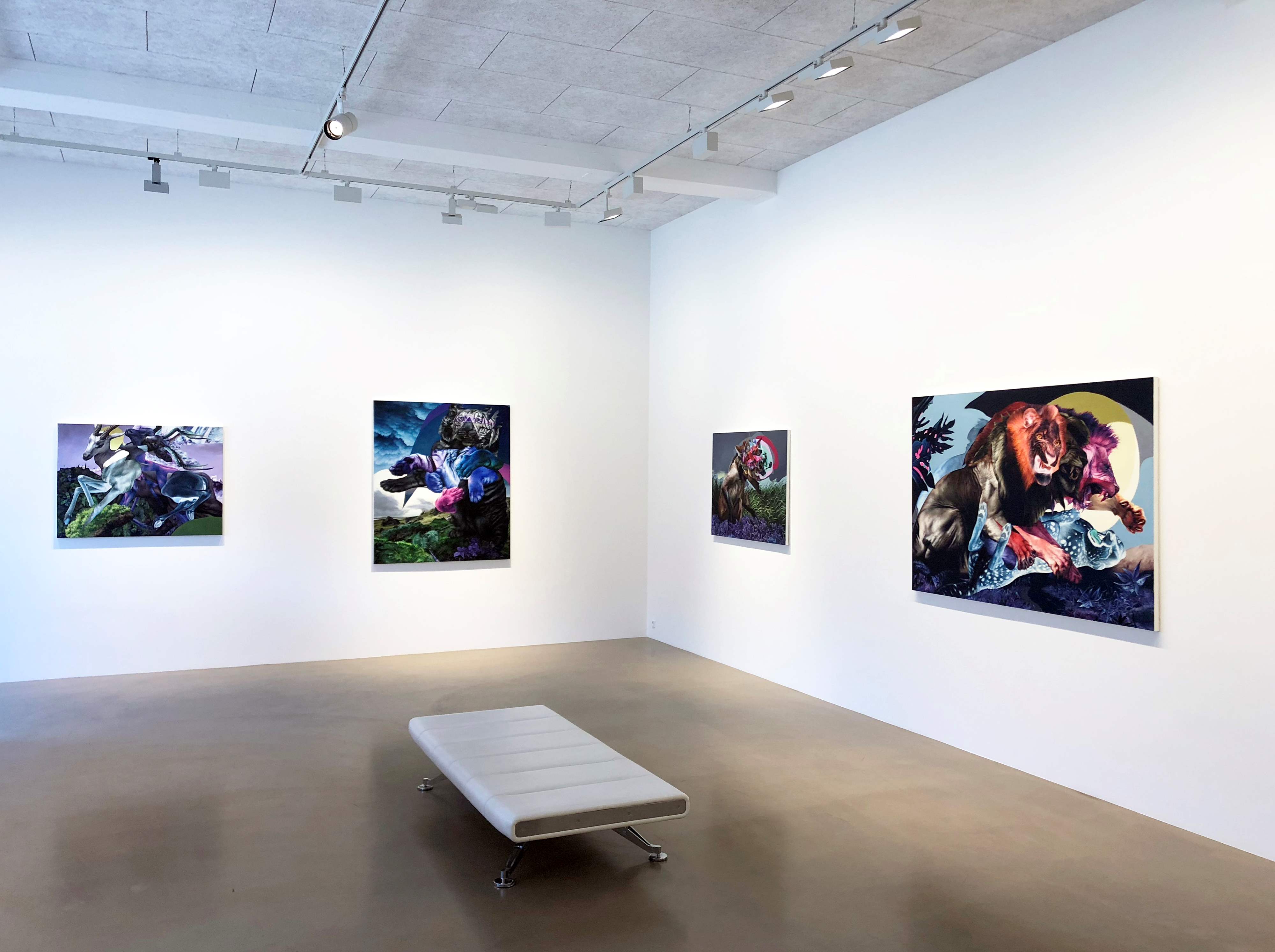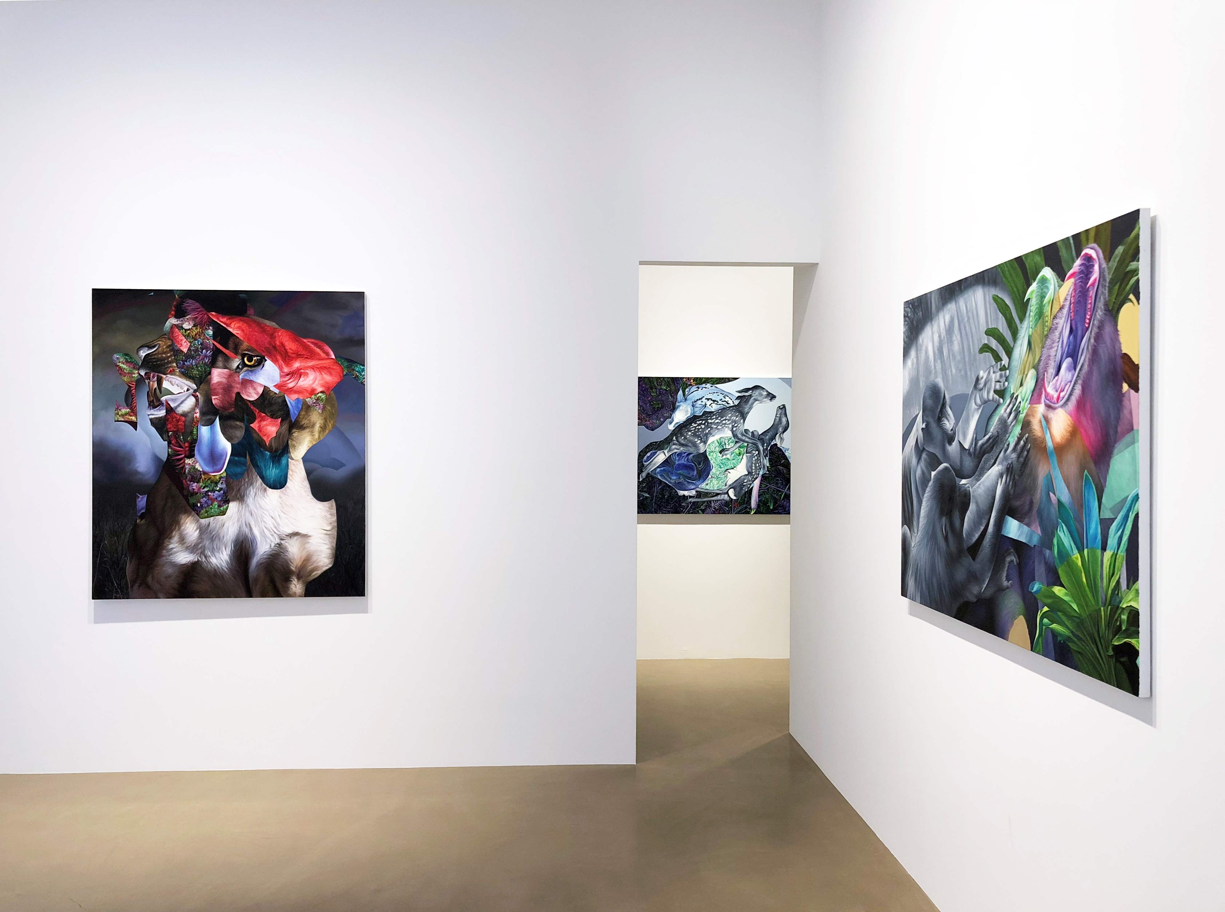 Each work is composed as a collage of deconstructed fragments that reflect the irreconcilable tension between the reality of wild animals and our modern romantic perceptions of nature. Through their cultural and physical disappearance, animals have come to exist in the contemporary imagination where nature retains its value as a creative force and continues to symbolically narrate the human condition.
