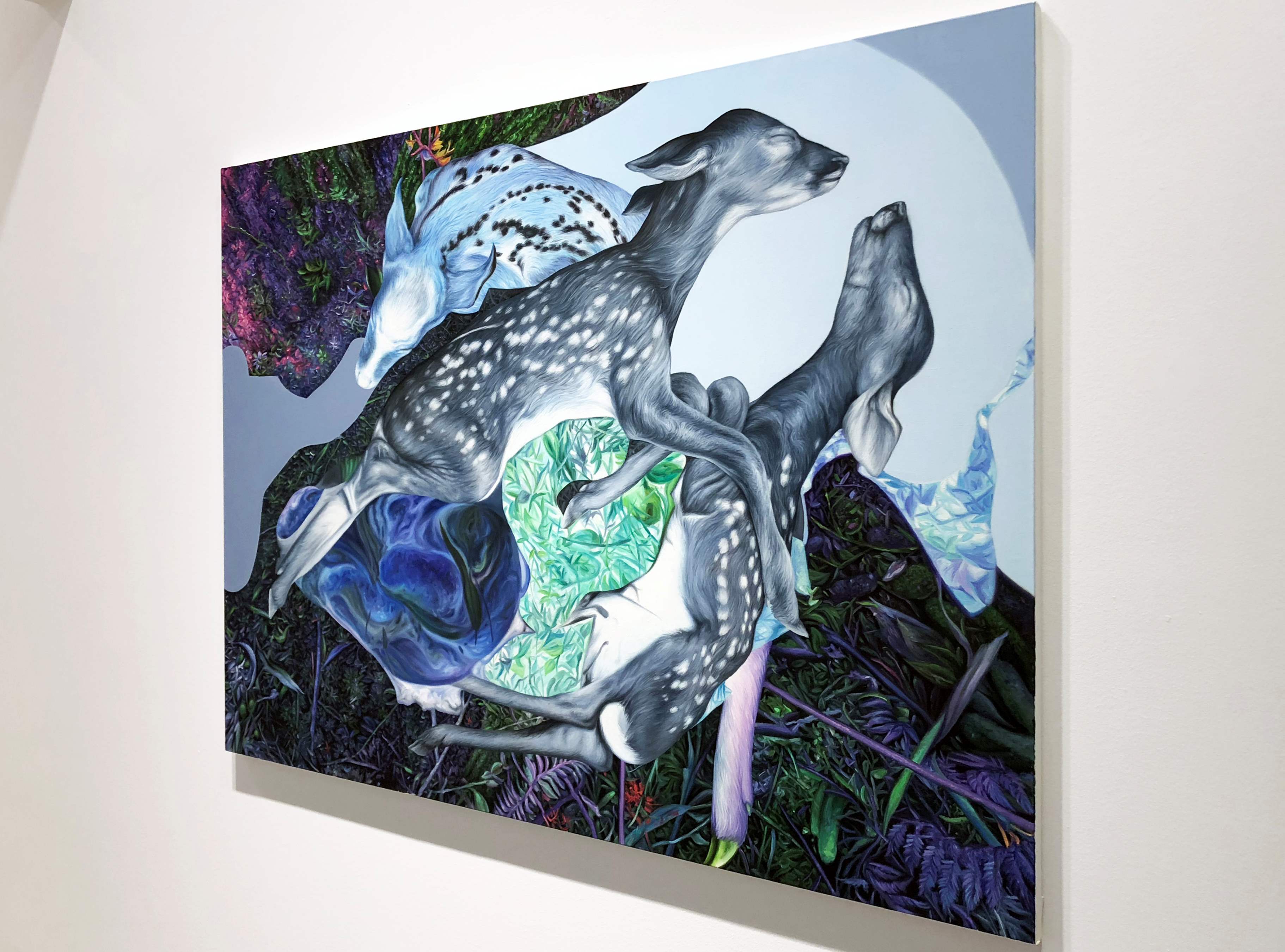Træd varsomt, når du bevæger dig ind i galleriets nyeste udstilling, hvor bestialske vilddyr og lunefulde små skabninger sidder på spring bag lærredet og overvåger selv din mindste bevægelse. Angela Grams sælsomme vildnis af forvrængede naturbilleder får vores øjne til at flakke mellem genkendelige motiver, der fanger vores blik og i samme sekund splintres til atomer!