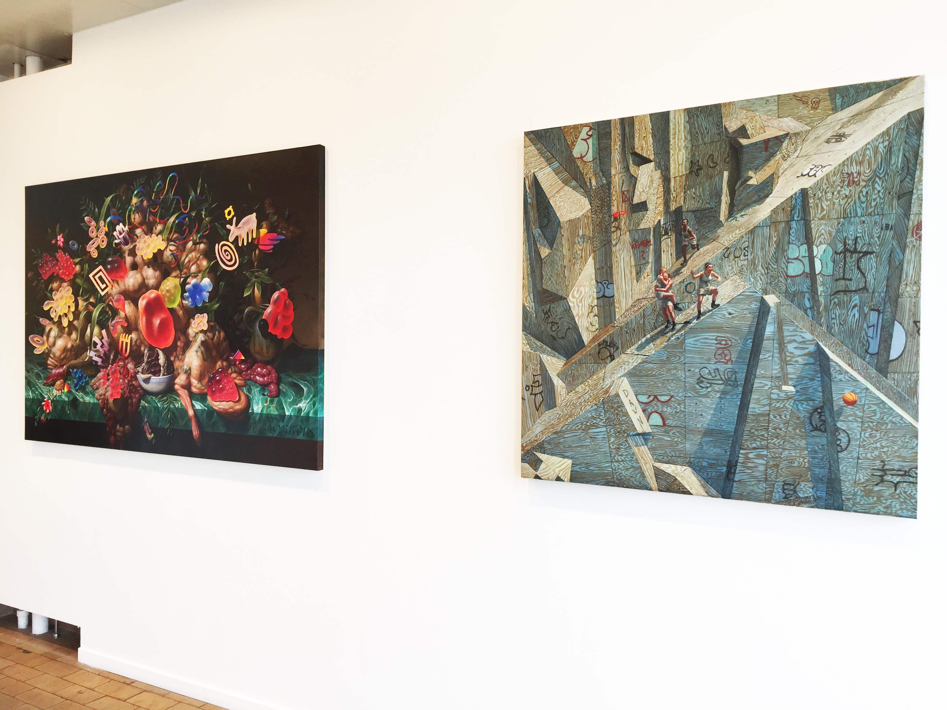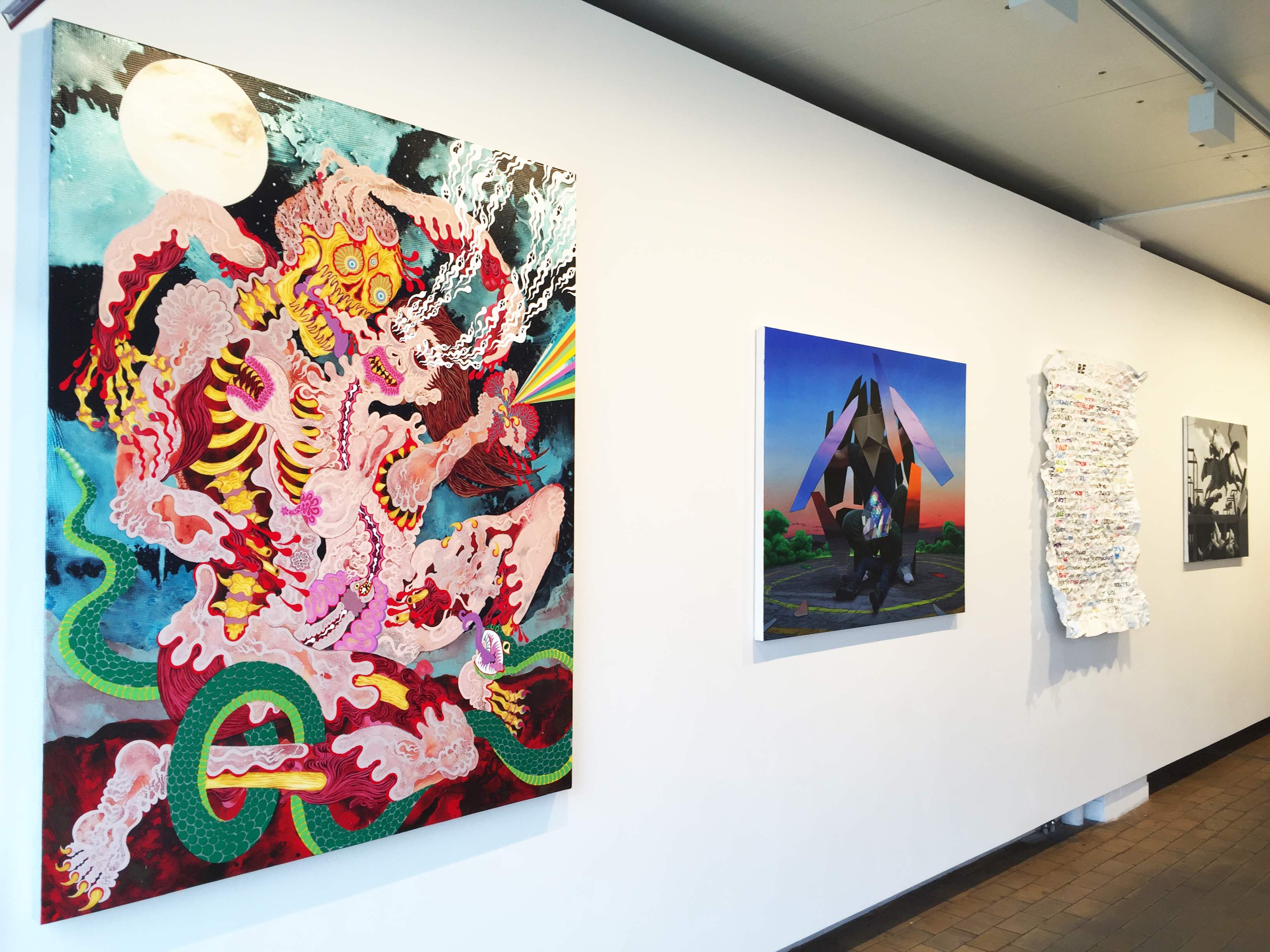 The show consists of twelve works on canvas, paper, panel and video art.