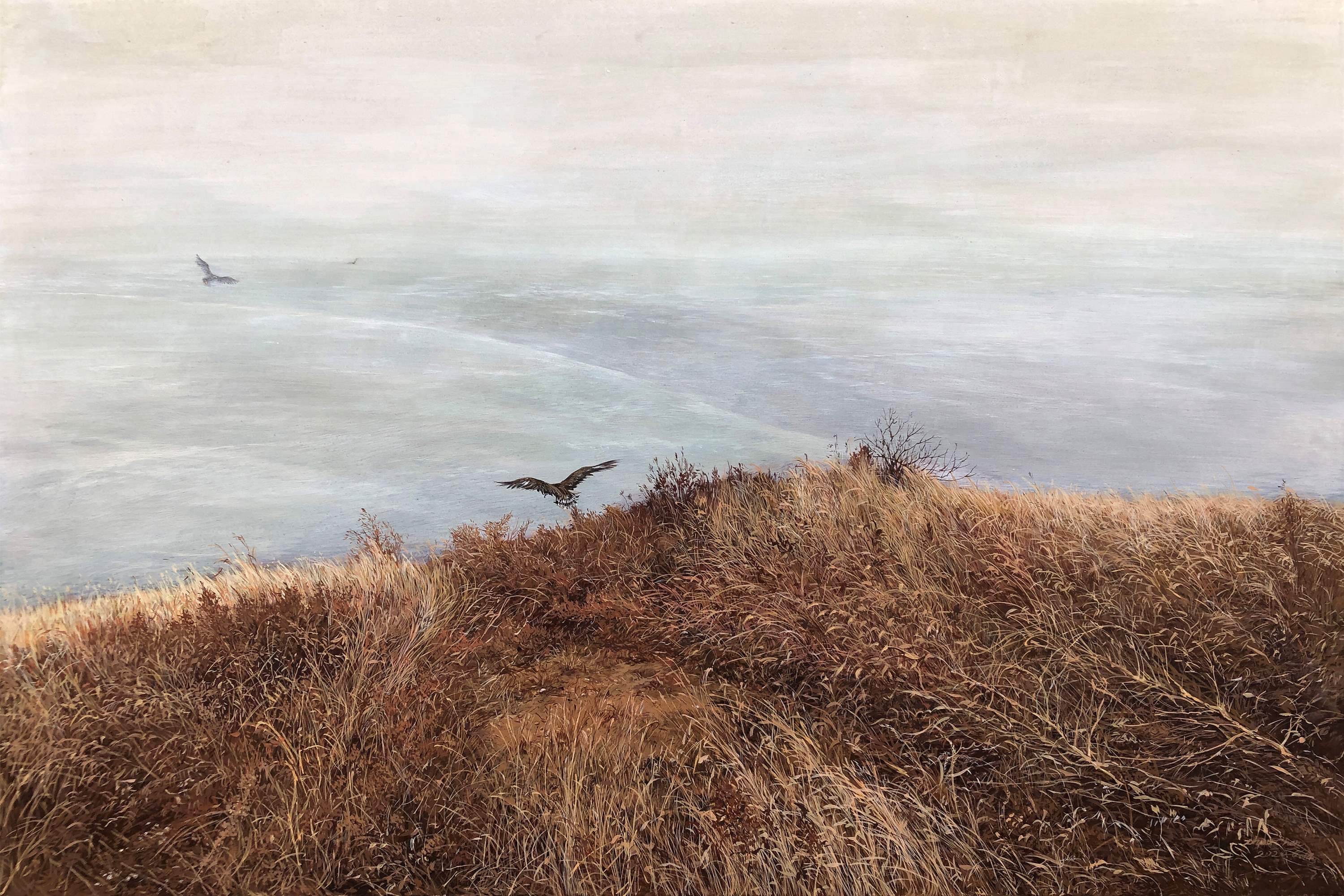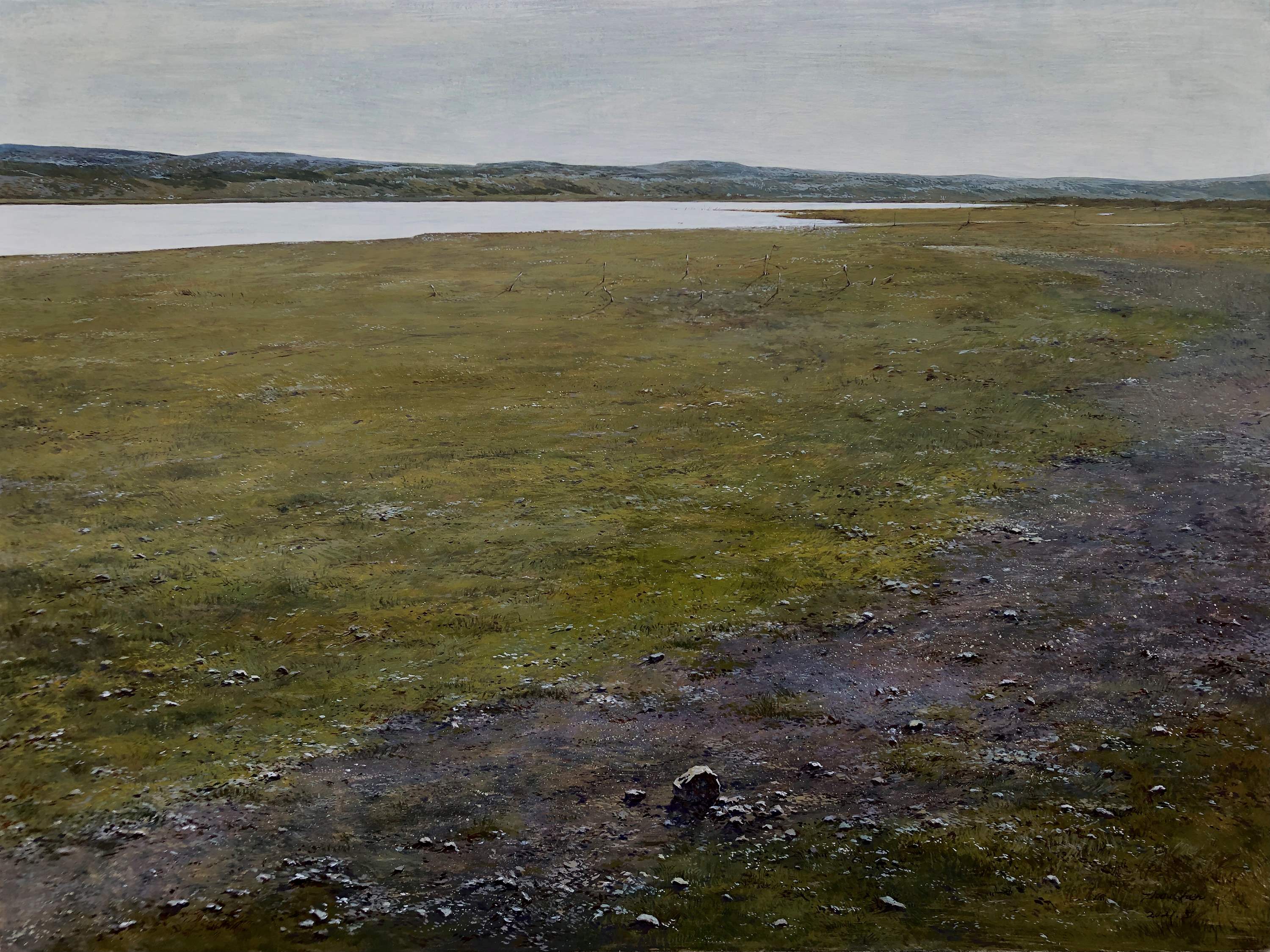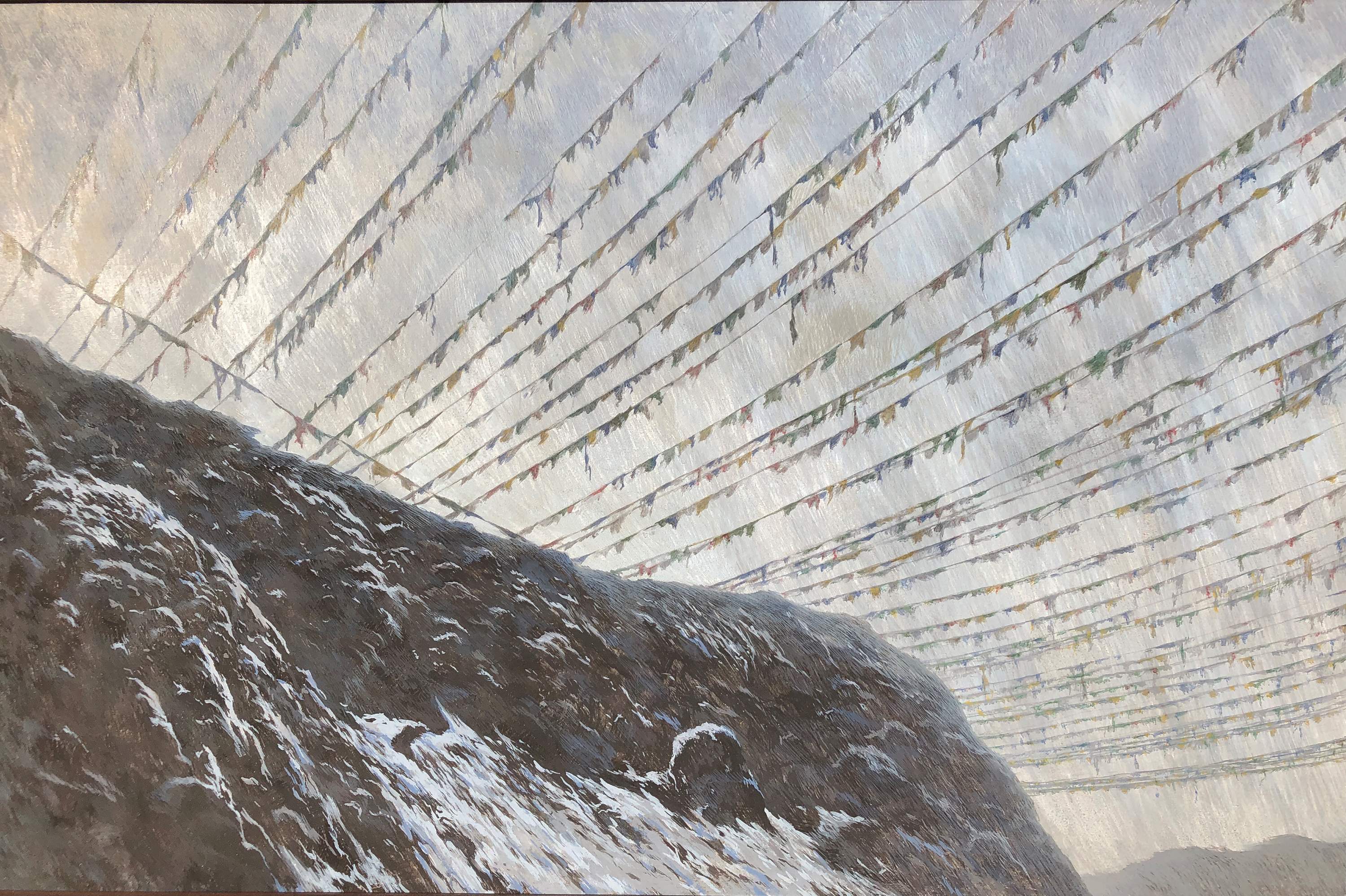 The subject matter in Zhou Chen’s landscape paintings is inspired by the untouched, desolate, and barren but incredibly beautiful nature and rich history and culture of northwestern China. Removed from the unstoppable noise, stress, and impressions of contemporary society, the unending grasslands, snow-covered mountain tops, and the star-filled night sky have the sole opportunity to claim the viewer´s attention and, in return, offer a cleansing, almost spiritual experience where there is no attempt influence the individual in one direction or another as the case is in our information technology and media controlled daily lives. Through his works, which all portray a vast but quiet landscape, Zhou Chen wishes to convey grand and eye-opening experiences in nature. At the same time, the landscape paintings convey the enormous dissimilarities between different cultures of the world and for this reason, play a significant role in demystifying and increasing understanding across natural borders.