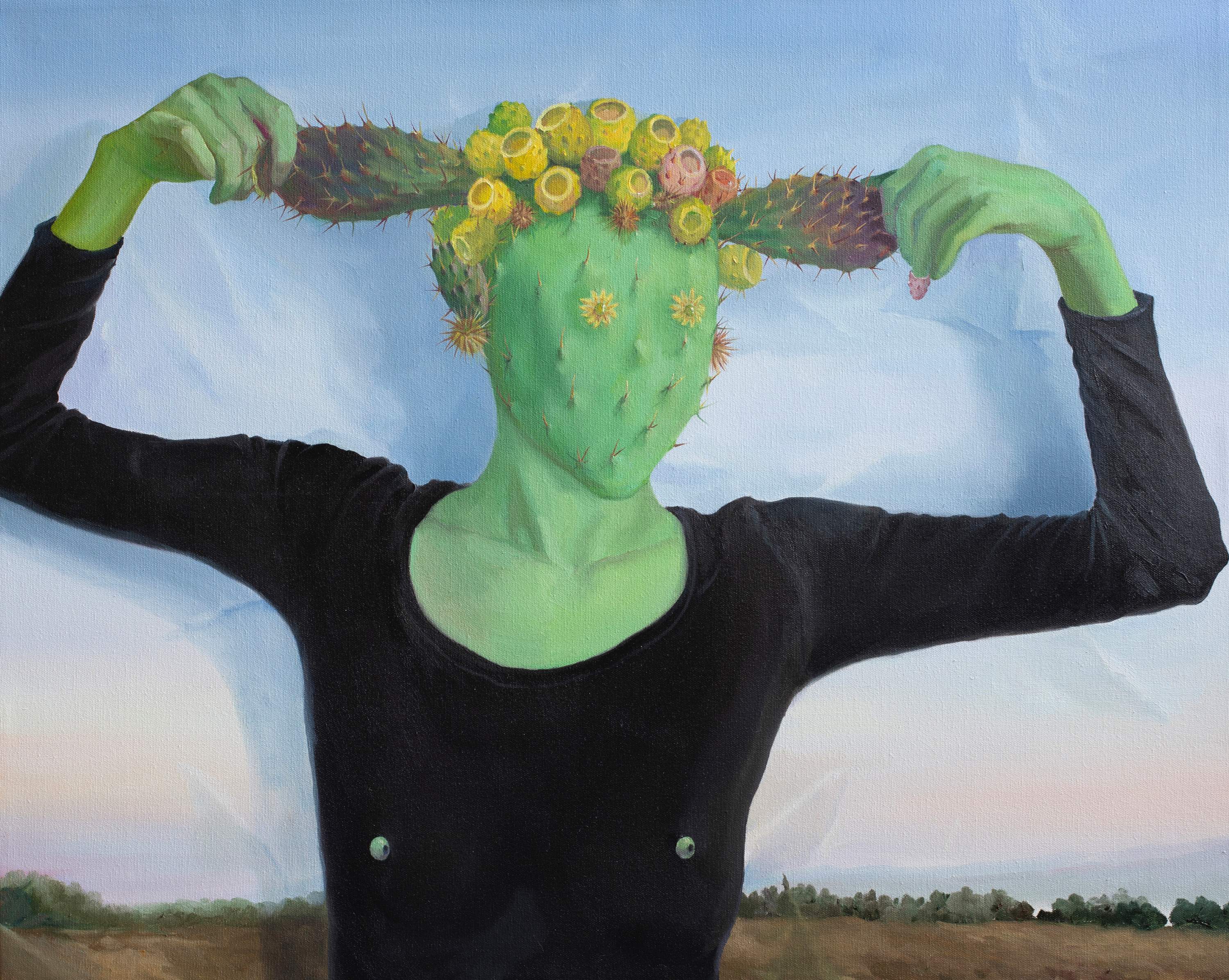 Just like Jiannan Wu, Jingyi Wang is a graduate of our long-time collaborative partners across the Atlantic, the New York Academy of Art. Inspired by her own observations and perceptions, Jingyi Wang’s paintings take focus on the relationship between culture and nature. Through colorful and playful portraits of anthropomorphic cacti, inhabiting dreamlike spaces, an inevitable duality between the sharp and the fragile, the serious and the light-hearted is revealed. These cacti-humans represent the biological and psychological aspects of life in a way that approaches the subtle and intimate intersubjectivity of humankind. With her paintings, Jingyi Wang wishes to create a connection between the human body and nature, which in return will offer the opportunity for dialogue and collaboration between the two.