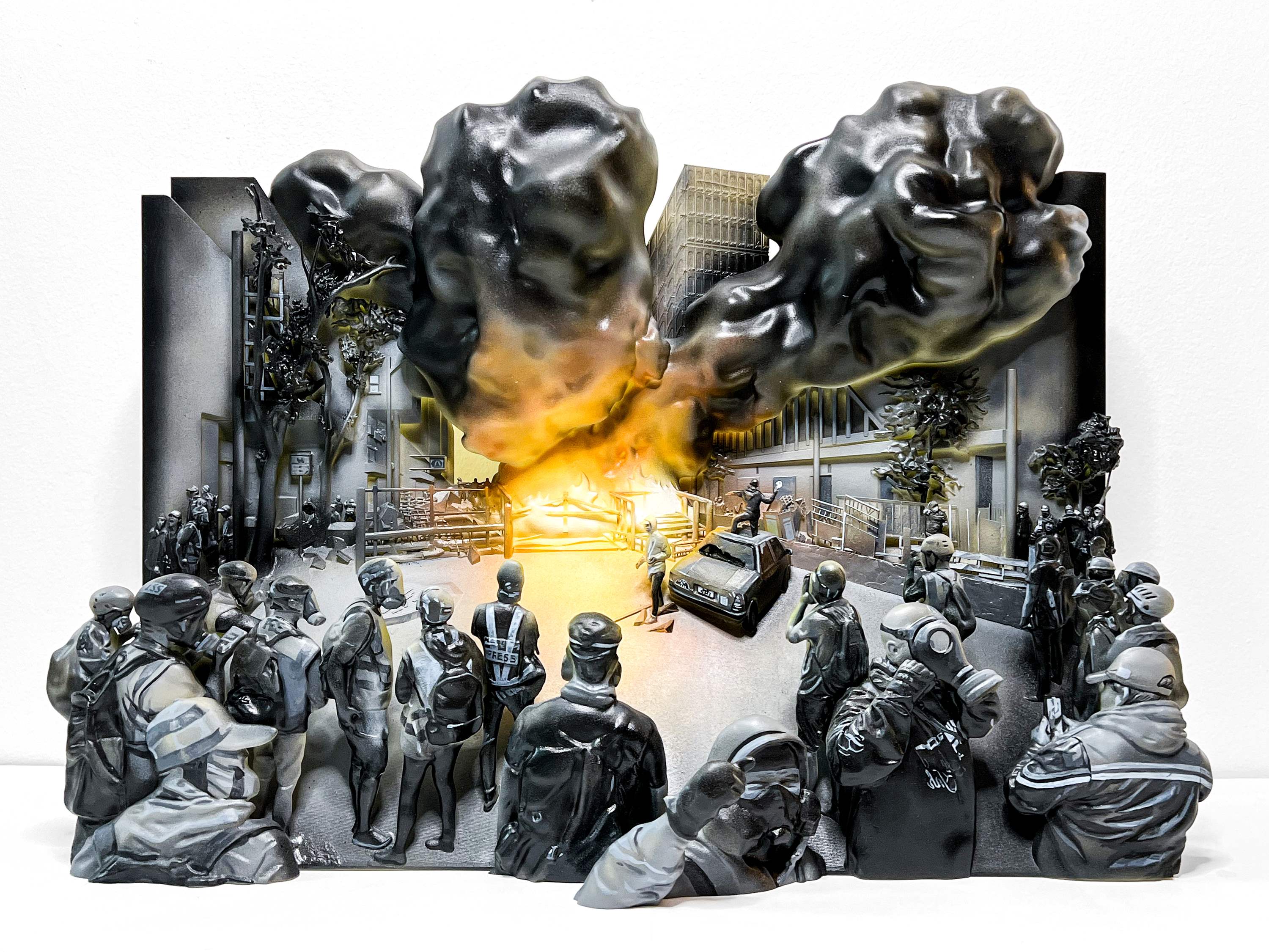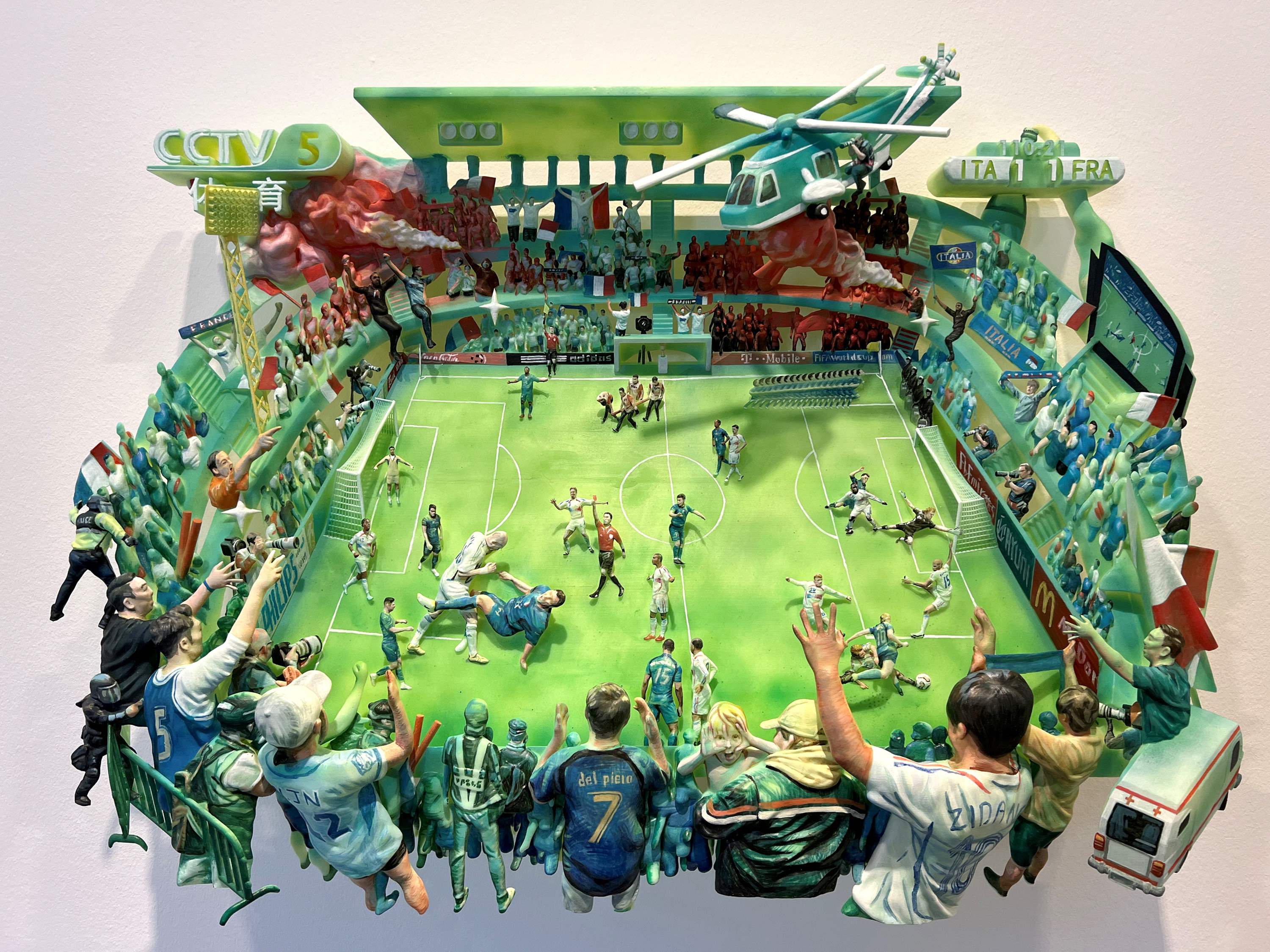In the exhibition, Jiannan Wu is presenting five new relief sculptures. The work “Feb. News” examines the authenticity and questionable neutrality of the unstoppable news feed we´re all witnessing right now. As an international artist living in both China and the United States Jiannan Wu is a firsthand witness as to how news media in both countries are using political, economic, and ideological beliefs as tools of propaganda to sway and influence the country’s citizens and at the same time spread fear and uncertainty that we mistakenly thought belonged to the past. The result of these mechanisms is that the same events are presented in vastly different ways by the media in the two countries, and the other country is more often than not portrayed in a negative light. The relief sculpture exemplifies how the effect of global events can be purposefully exaggerated, distorted, or ignored, and how these techniques are used to mislead a country’s inhabitants by only letting them see what the government or media wants them to see.
