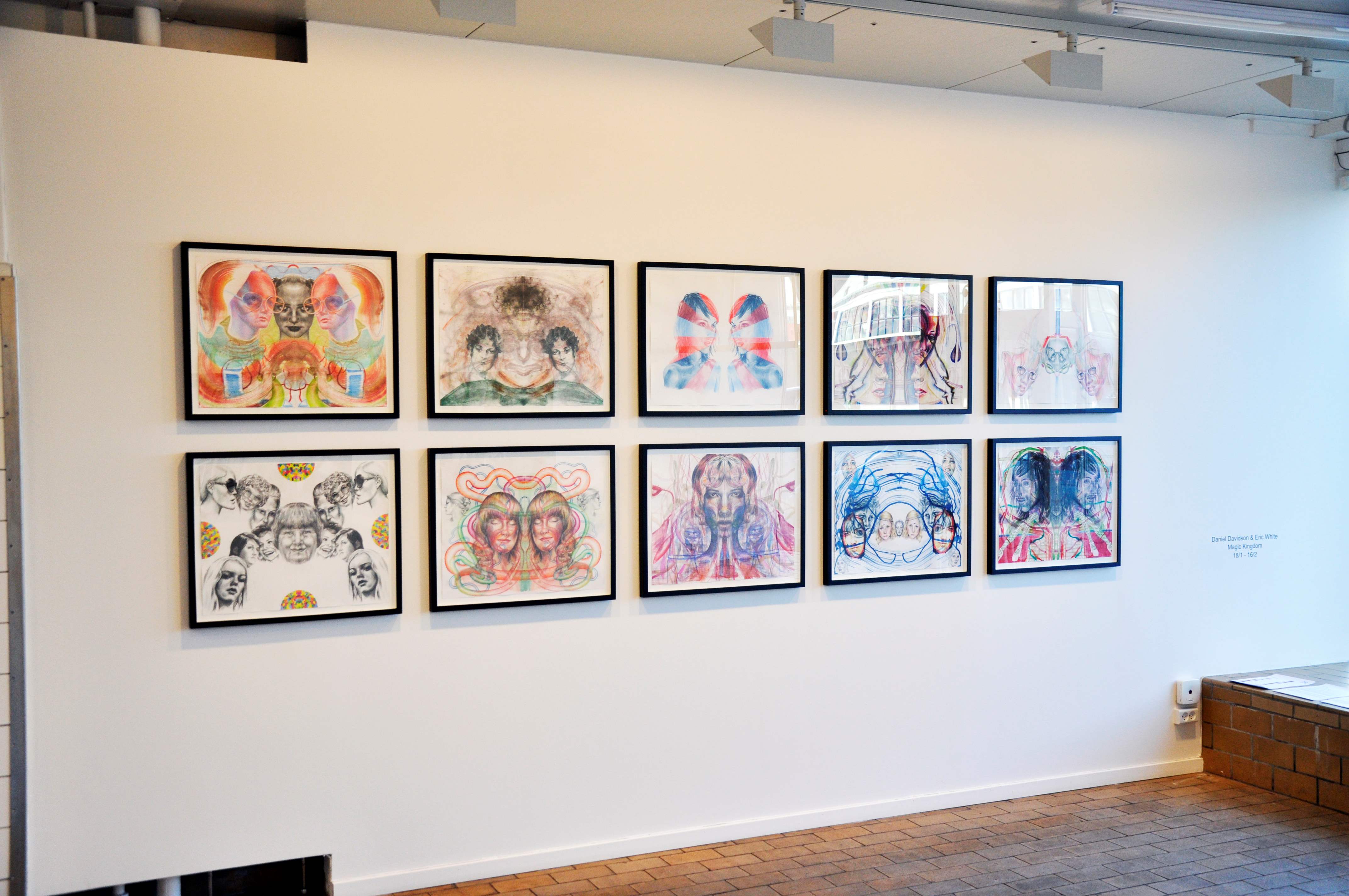 Daniel Davidsons værker i "Magic Kingdom" viser figuration og abstraktion i tvillingehoveder der udfolder sig fra et spejlfelt, hvor den første blækklat på papiret eller en tilfældig ridse er afsæt for værket, der udfolder sig på papiret og bliver til en sammenfiltret arkitektur af ansigter, svimlende design og stærke farver. Davidsons tegninger skabes ved, at han på udvalgte dele af papiret tegner modsatrettede ansigter med abstrakte former; derefter fugter han papiret og foretager talrige foldninger, der producerer symmetriske overførsler og nye uventede billeder.