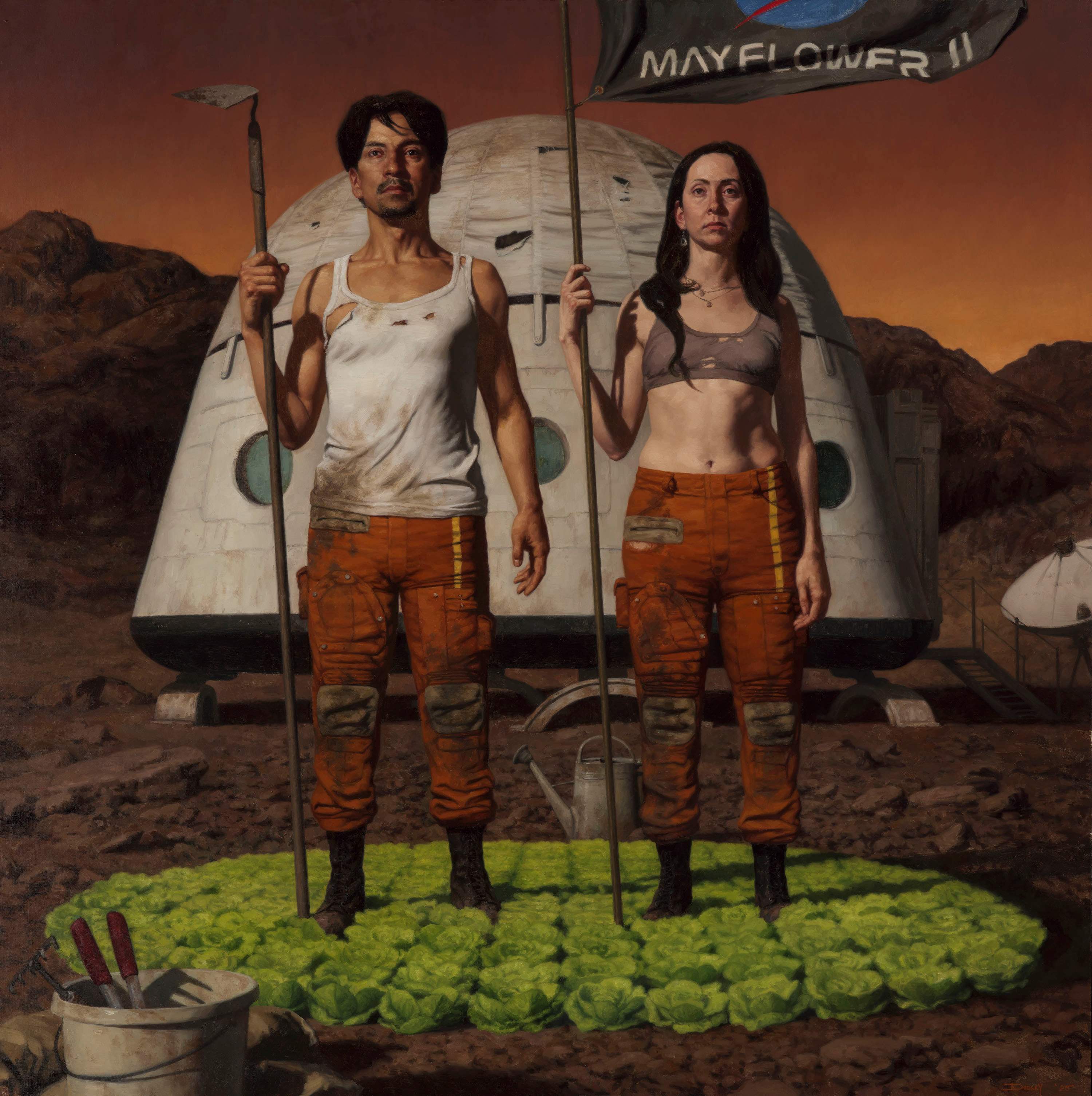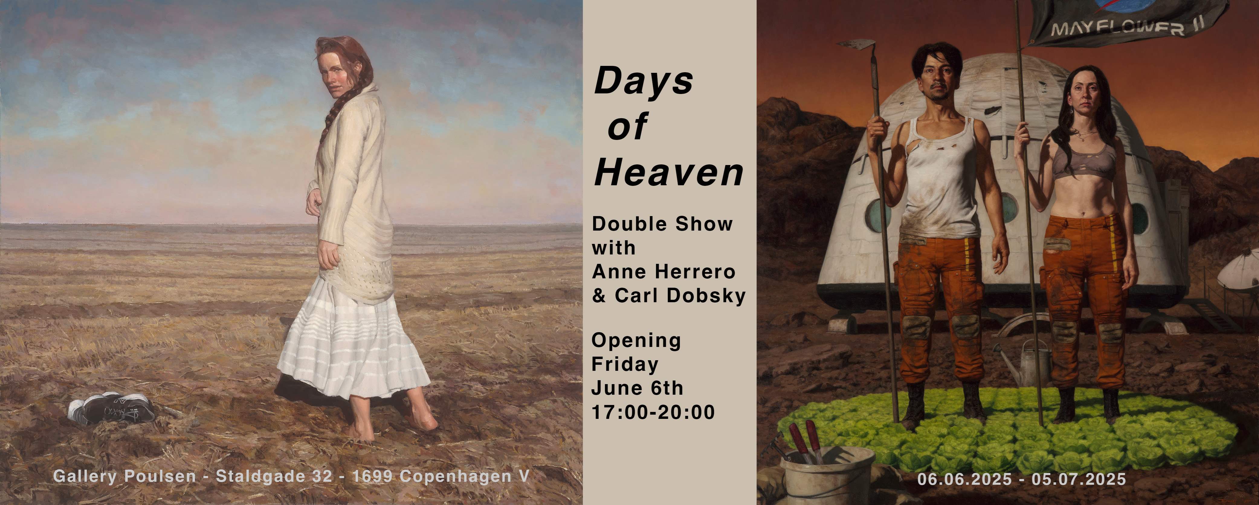Days of Heaven takes its starting point from the 1978 film of the same name, which tells the story of settlers chasing the dream of a better life. The idea of the settler spirit and the longing for something more is a recurring theme in both artists’ work.
