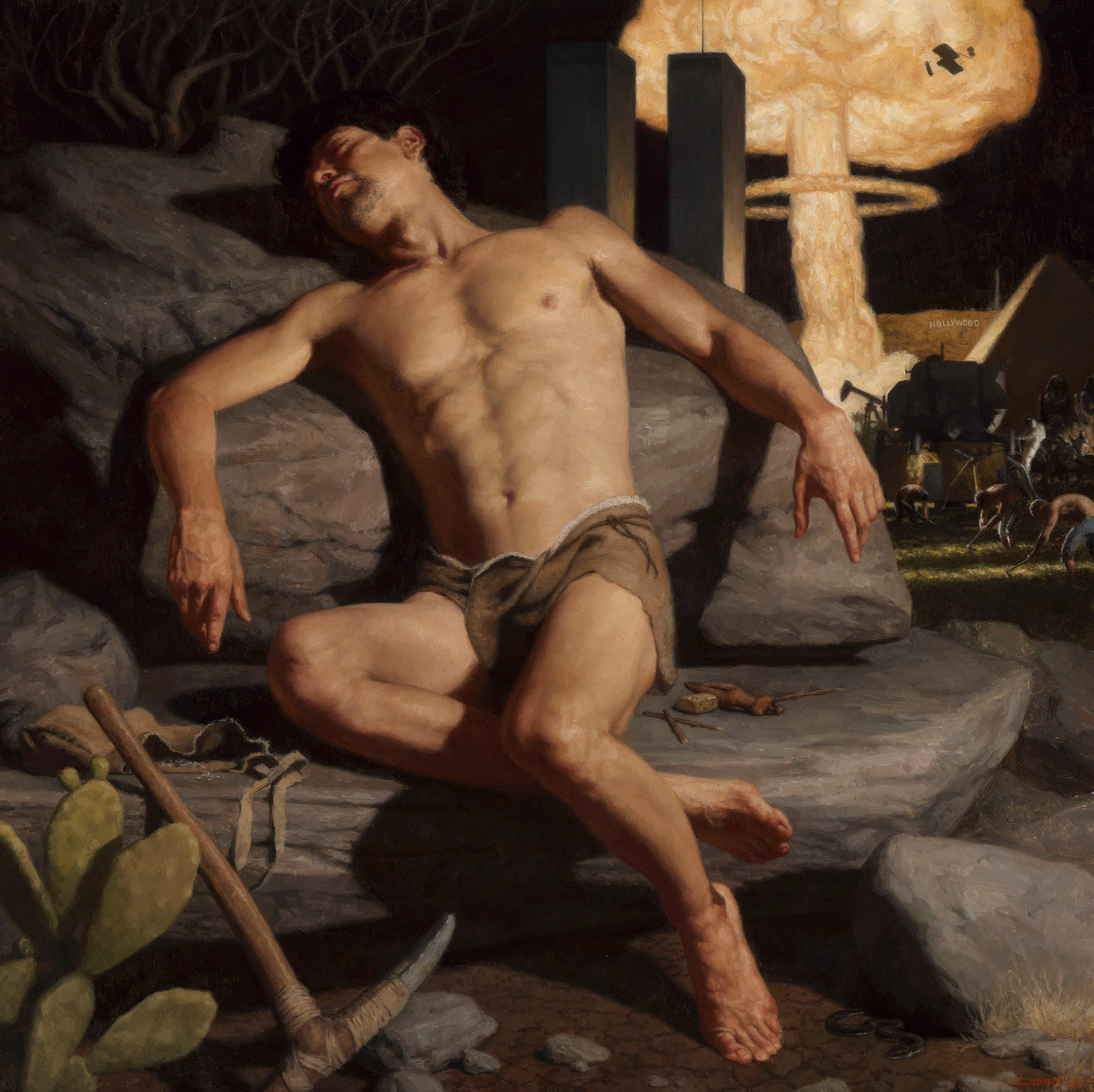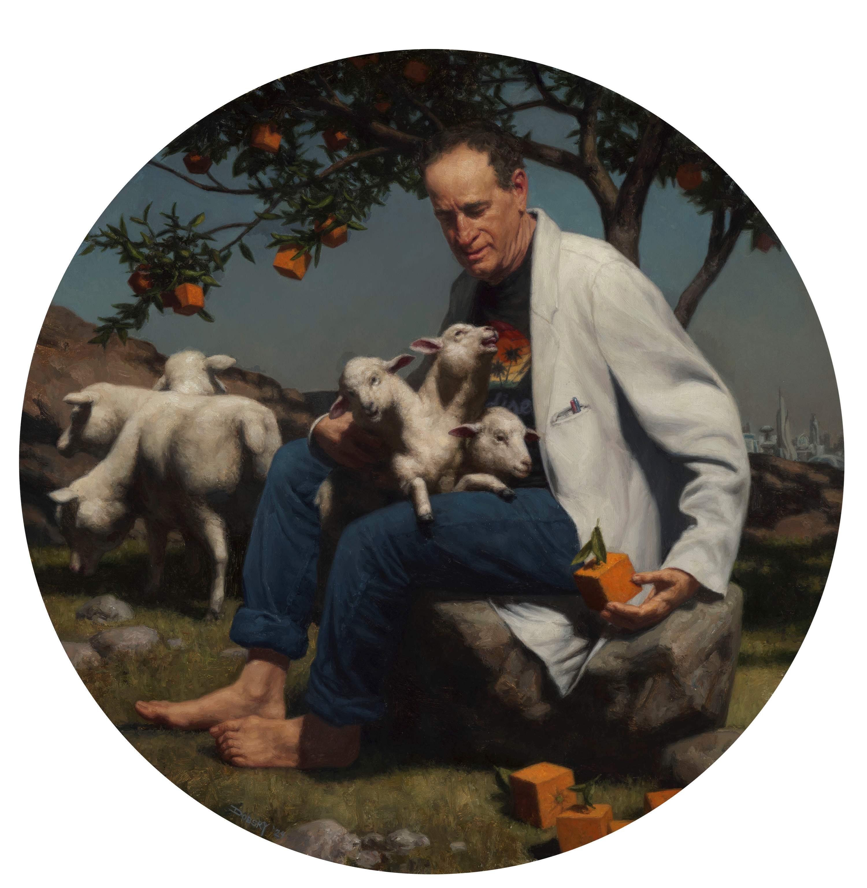 Dobsky’s new paintings, shown in Days of Heaven, focus on the tension between the ideal and the perfect on one side, which the exhibition title refers to, and the imperfect or unwanted consequences that arise in the pursuit of perfection on the other side. He is deeply interested in the idea of utopia. These are the first works in which he explores that theme.