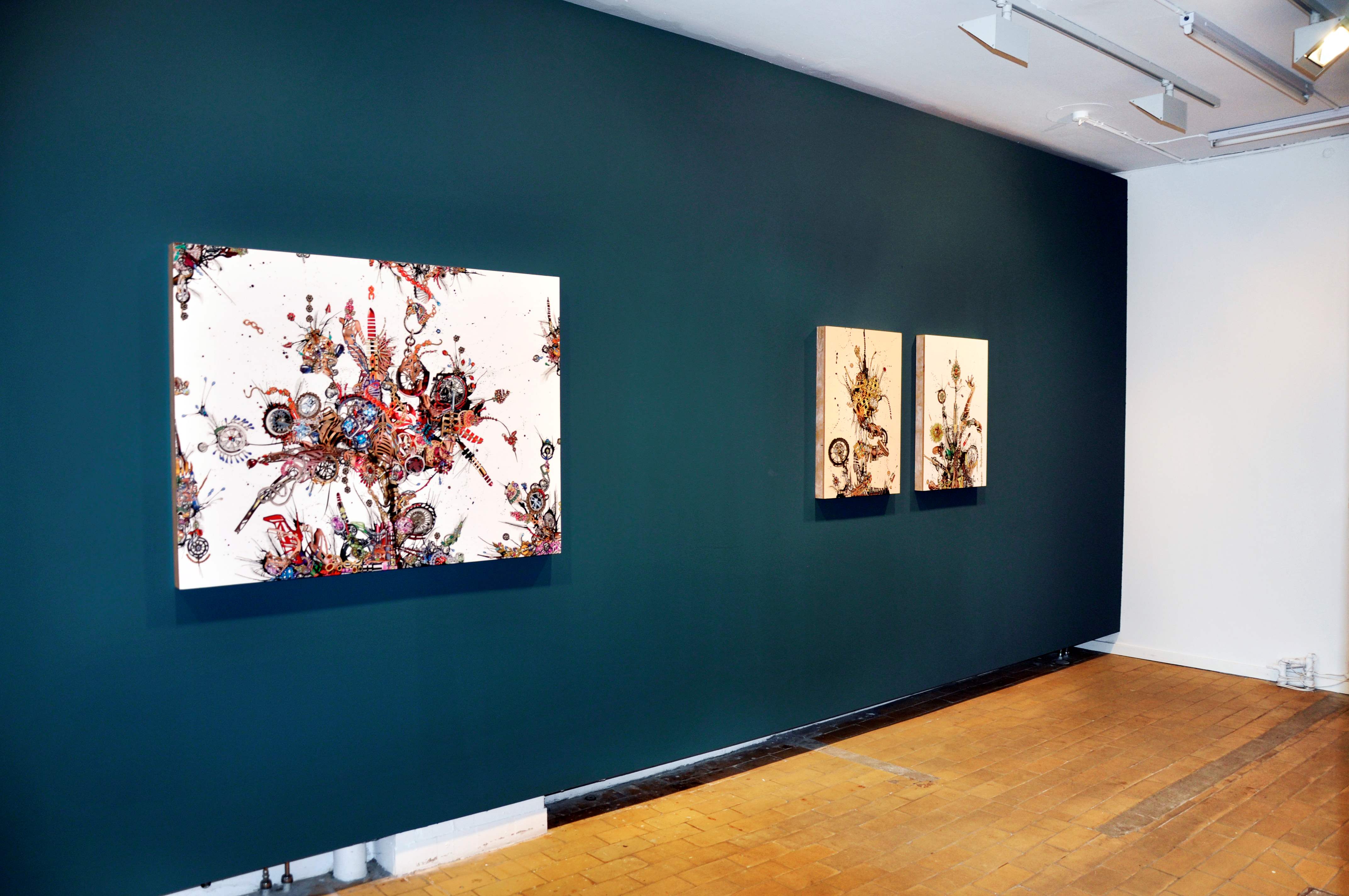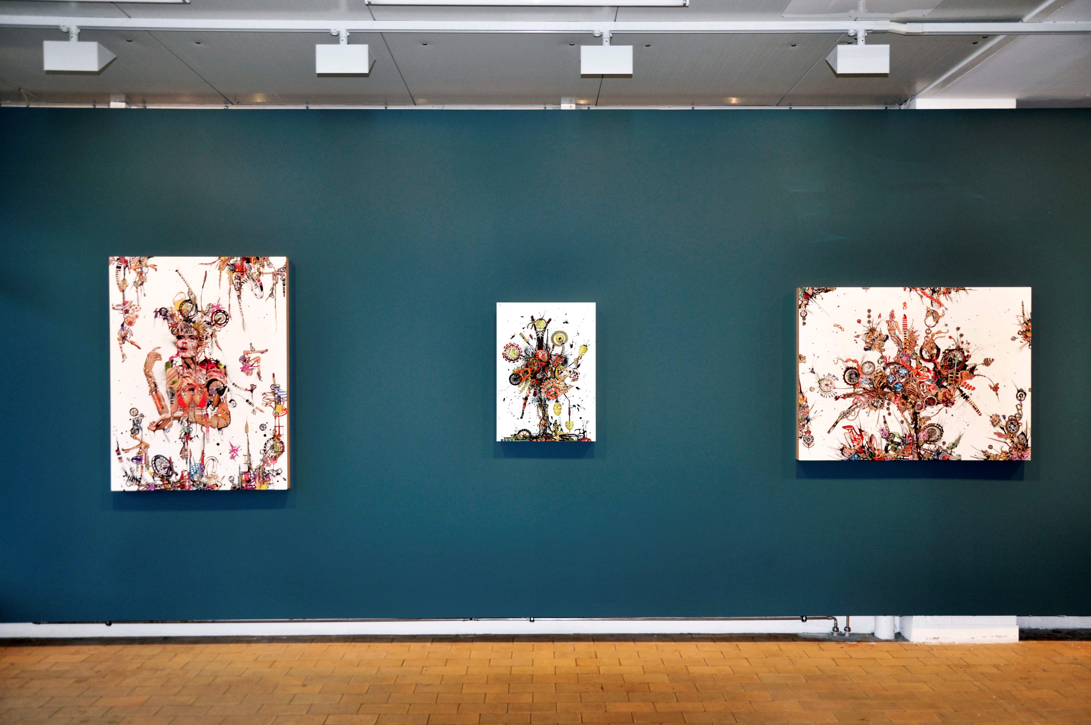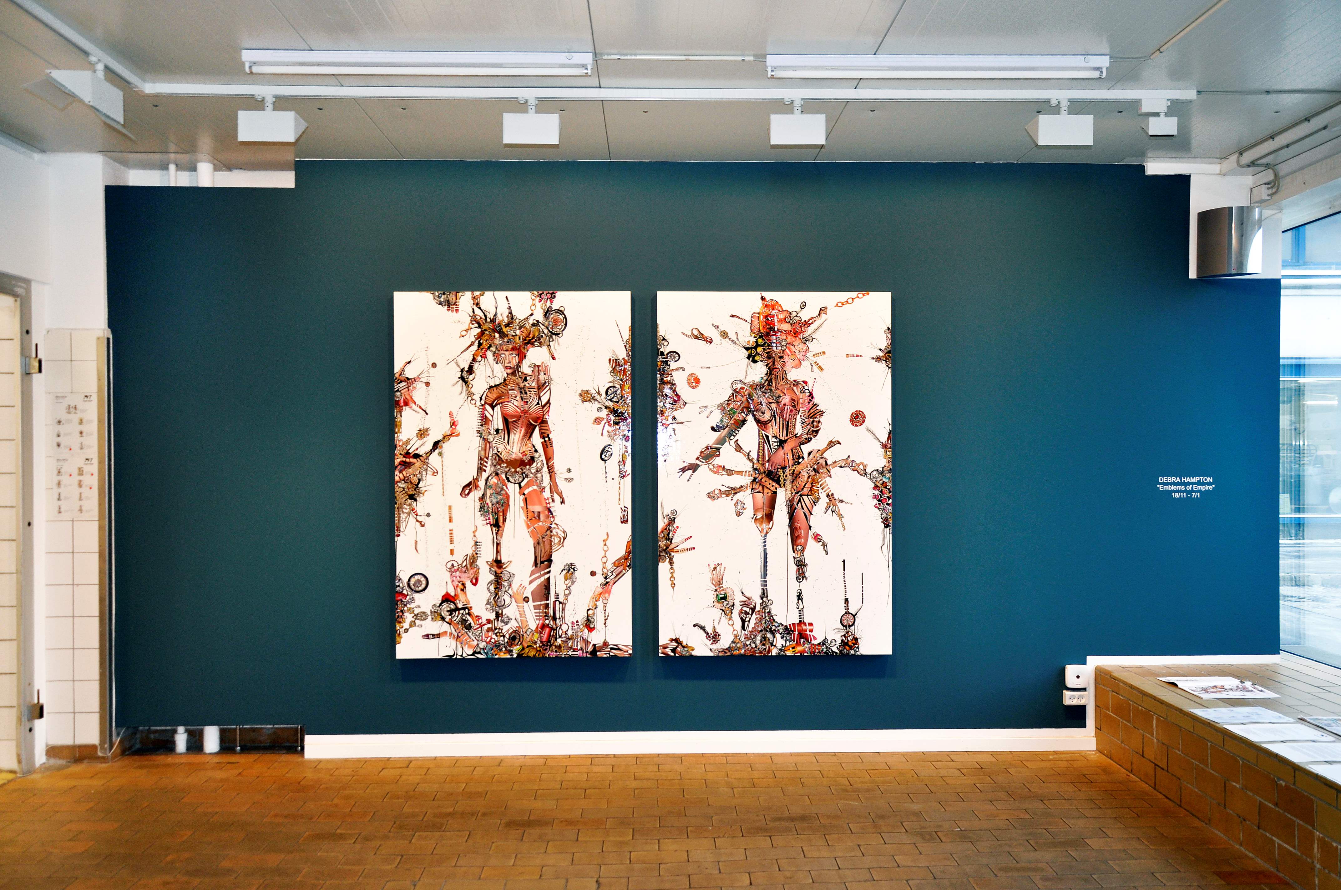 I en tid hvor vi dagligt stilles over for den umulige opgave, at filtrere og afkode et bombardement af visuelle informationer fra alle sociale og materielle facetter af vores liv, synes Debra Hamptons hektiske collager at være den perfekte sammensmeltning af kreative output og kulturelle kommentarer. Hendes figurer, som hun sirligt sammensætter fra tusindvis af reklame-udklip, fanger den konceptuelle og bogstavelige essens af en hektisk og transformerende kultur på randen af konstant ødelæggelse og genfødsel.