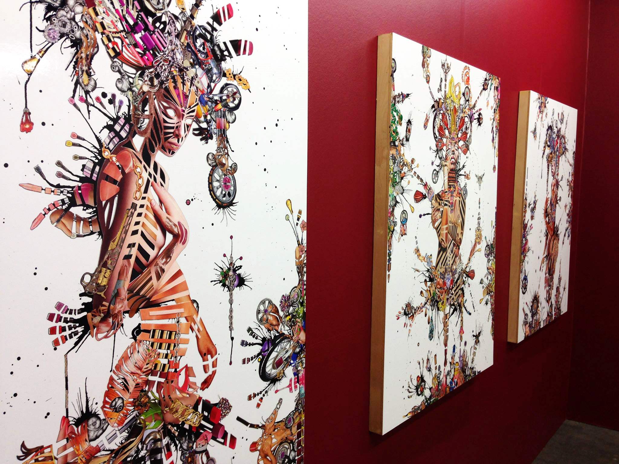In Debra Hampton's art, beauty can be seen as both armor and weapon. In the dramatic booth installation with historical references, Debra Hampton poses critical questions about consumer culture and society’s continual focus on the body and our desire for youthful perfection. She assembles her heroines from fragments of magazine advertisements and other ephemeral material, creating powerful female figures as contemporary warriors evolved from the absurdity and abundance of luxury items, beauty products, mechanical parts and coveted weapons. The questions and critiques inspired by her collages are relevant and ongoing as we navigate times of economic hardship and one should think post-consumerism. However the quest for eternal youth, power and the promotion of unethical consumption is showing no signs of slowing down. Are we in a time of denial rather than facing the facts that there are more substantial concerns at stake?