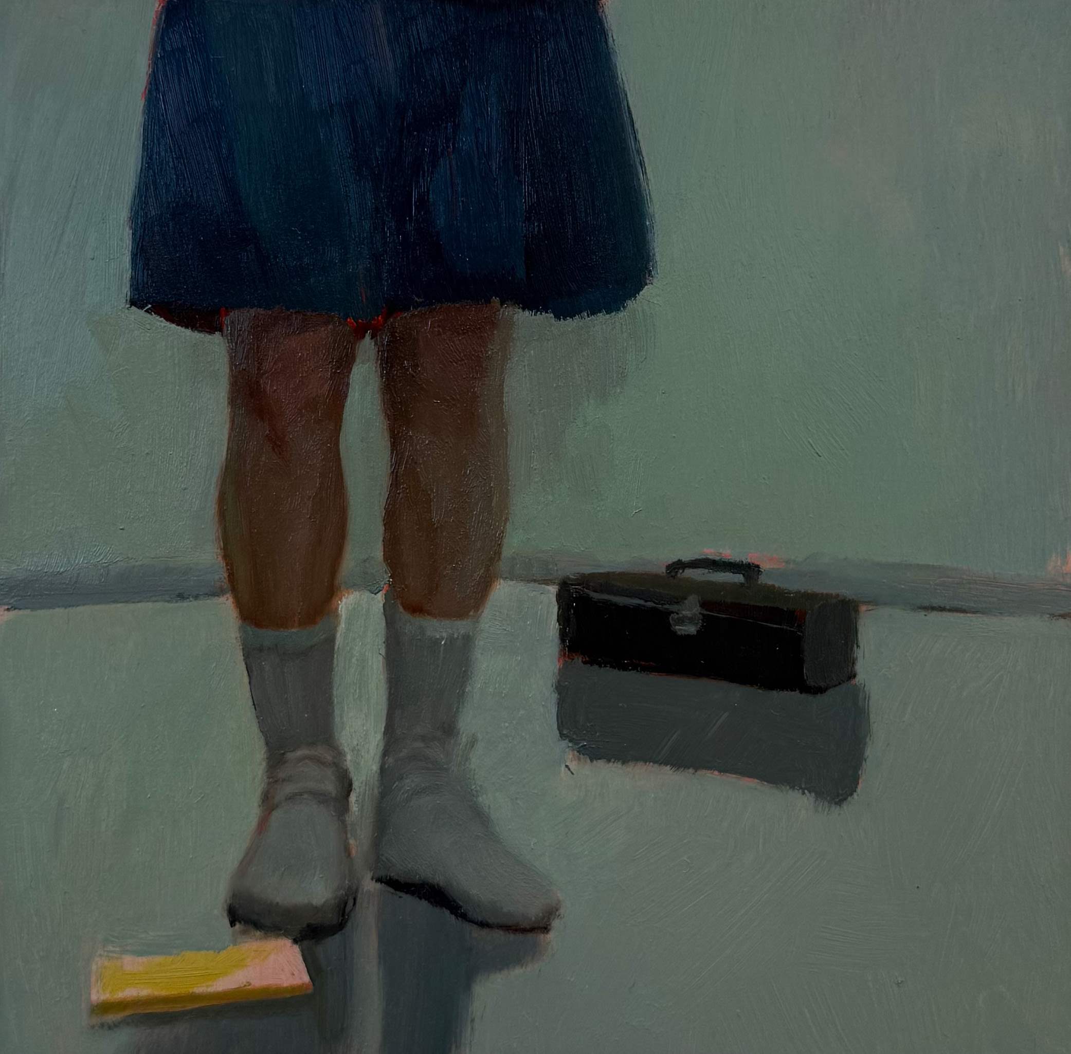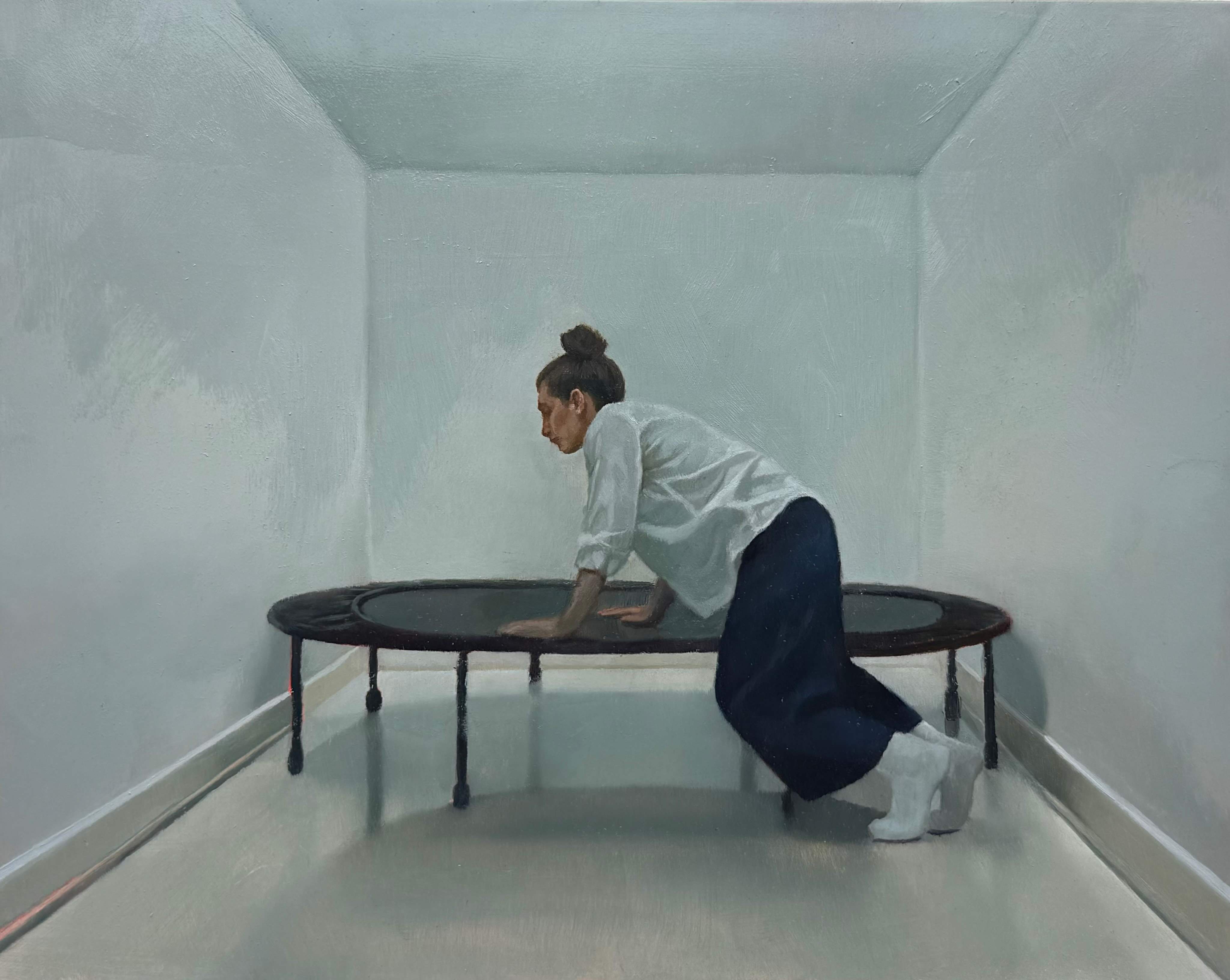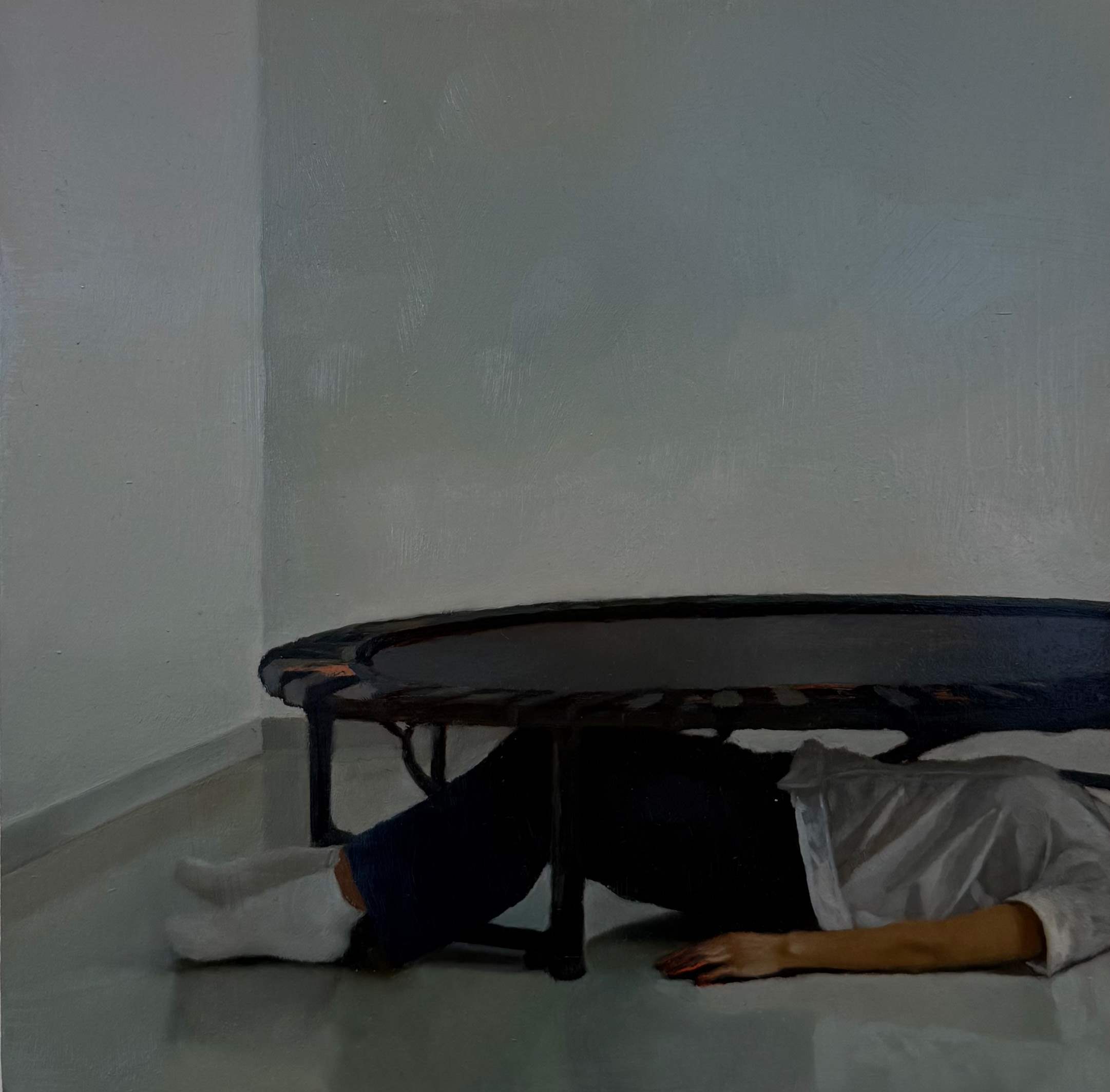 In her paintings, Rebecca Orcutt zooms in on those tiny unconscious glitches — the moments we all experience daily, between thought and action — a split second of indecision. This contrast between inner longing and a fading belief in its fulfillment is highlighted throughout the exhibition. Whatever could potentially satisfy the need becomes irrelevant in these quiet moments. What remains is longing itself — a universal and enduring feeling that we all recognize, for better or worse.