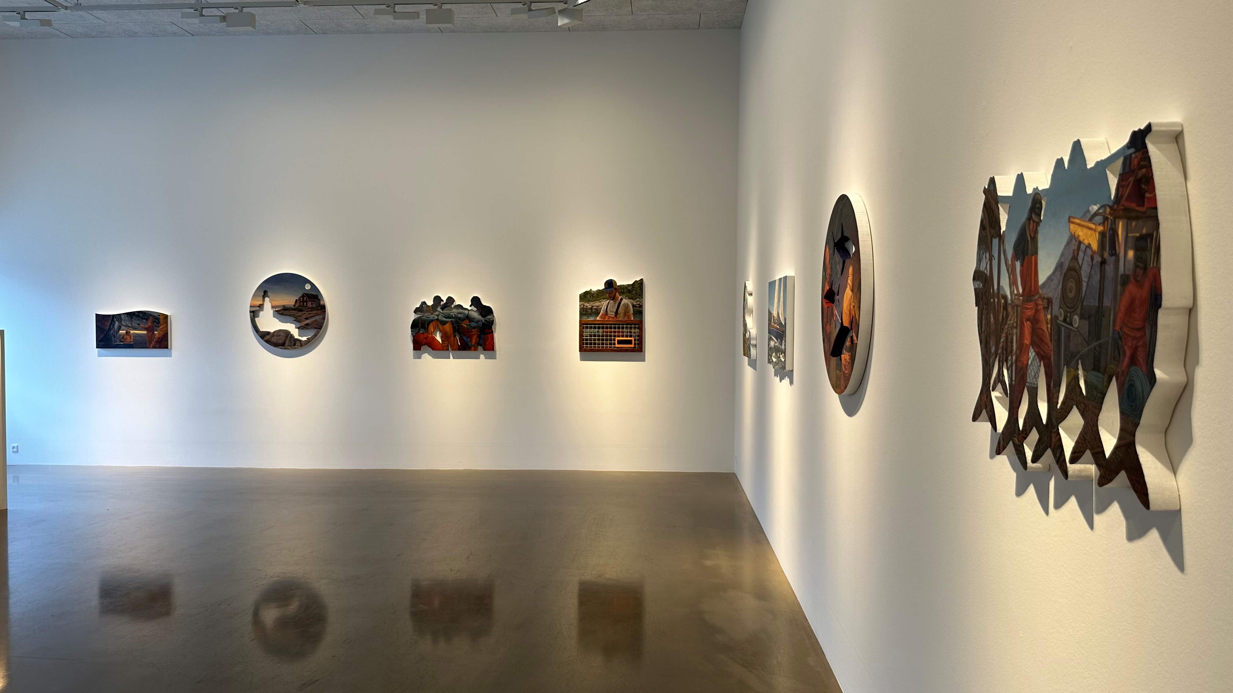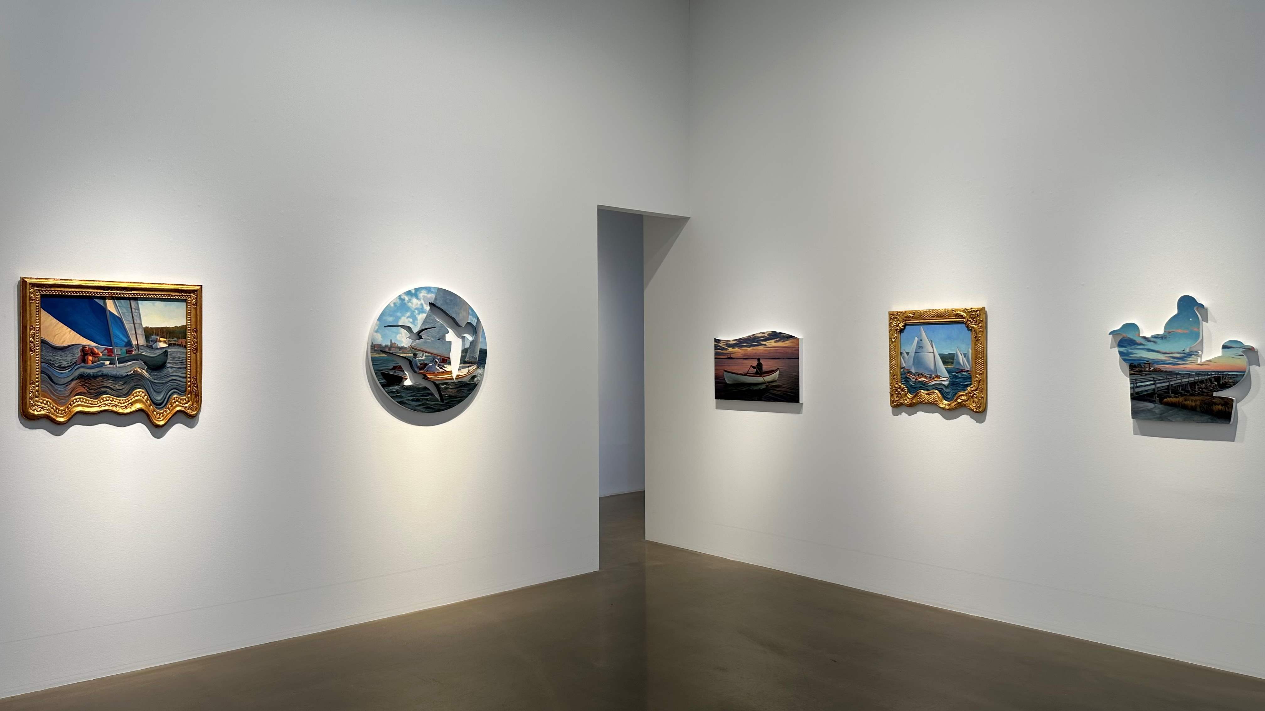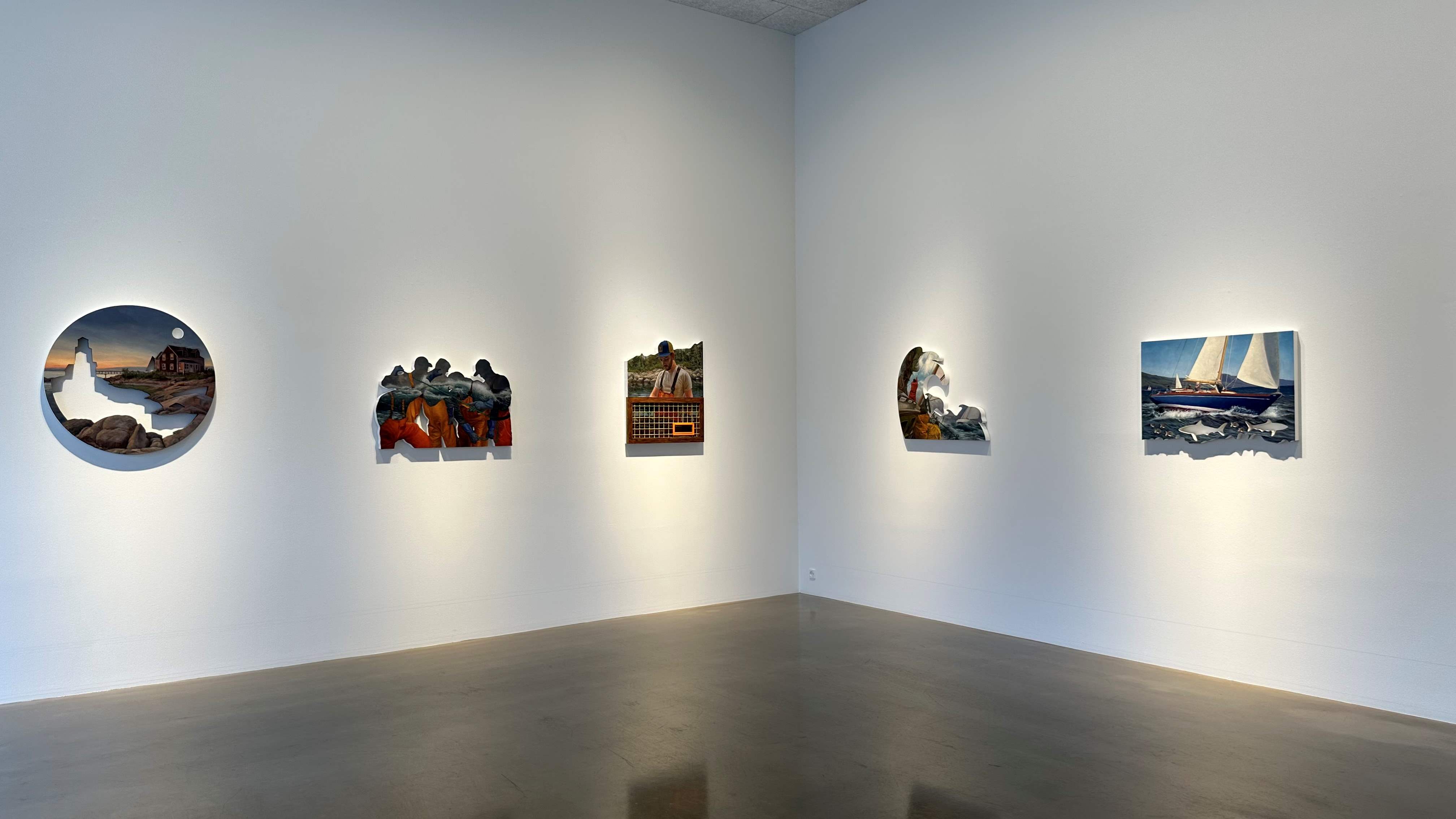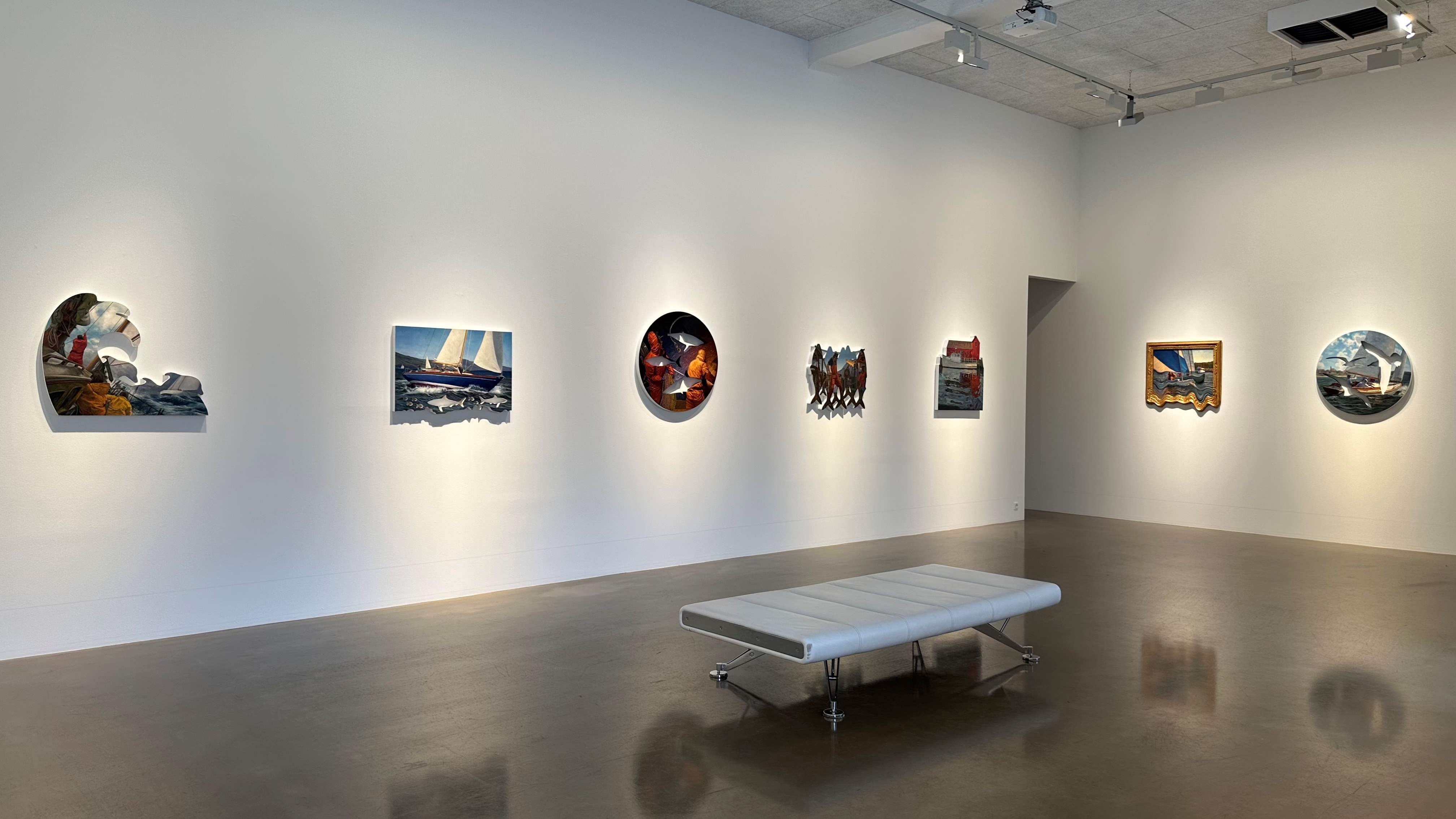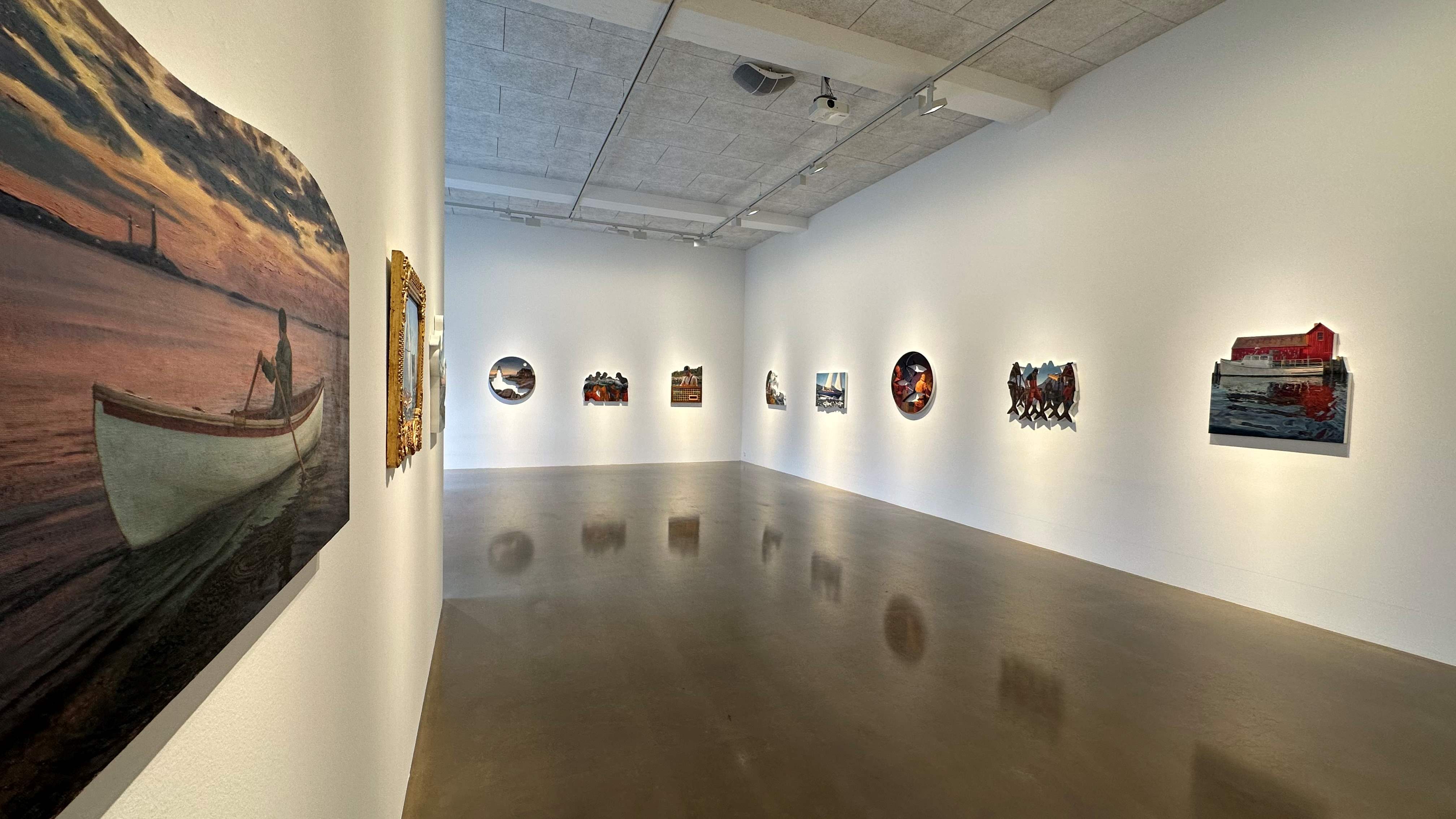 The exhibition “Holy Mackerel!”, which is named after Ryan Davis’ father’s boat, features works that represent Davis’ first-hand experiences and passion for the sea. Not only do they aptly capture the essence of the tides moving in and out, the light bouncing off the waves and the drastic weather changes of the ocean but they also serve as a powerful representation of the livelihood the sea provides, the day-to-day struggle of the fishing community and the massive feat of getting seafood onto a plate. Davis’ artwork observes humanity’s interaction with the ocean and its role as a vital food source, as well as being a significant body of strength, power, beauty and force – indicating a relationship to be sustained and preserved. Encapsulating the jagged, testing and shifting environment of the sea through specially shaped canvases and frames, Davis instills his artwork with a palpable essence of his memories and life experiences, capturing moments that resonate with the senses and reflect his deep affection for his home and community.