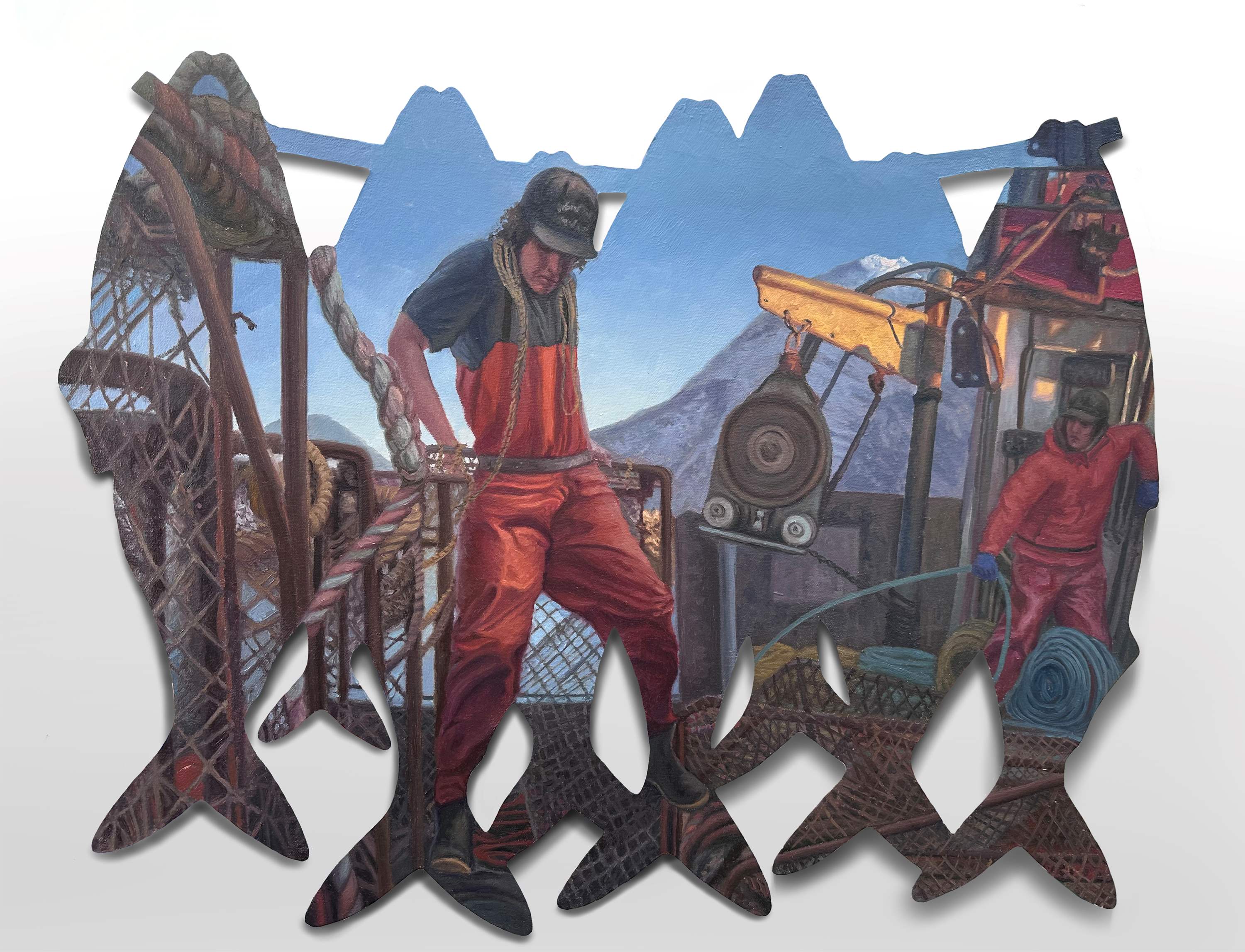 På trods af at havet er en omskiftelig og uforudsigelig kraft, sejler de stolte fiskere fra New England modigt men frygtsomt ud på havet i Ryan Davis' nye serie af oliemalerier, for at tage kampen op mod de stormfulde farvande, i et af verdens rigeste fiskeområder i Nordatlanten.