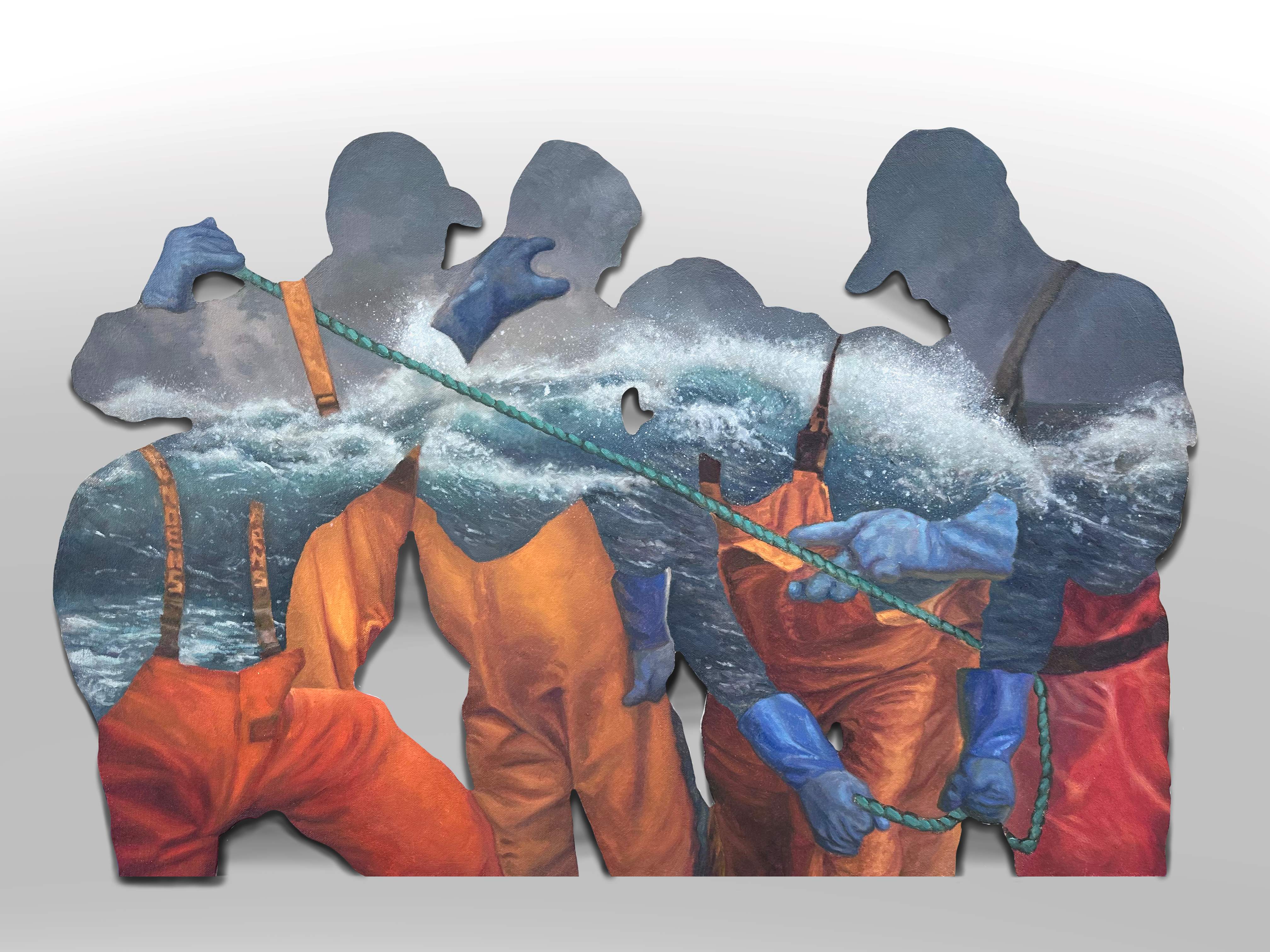 "My work concentrates on the human relationship with the sea. Individuals bent on the task of survival in the wild and turbulent sea that is a recipe for nature's force. I balance this with the harmonious and serene beauty of the seas and leisurely activities. These paintings tell the story of my deep connection with my community, family and experiences as an offshore fisherman. How the ocean can bring us together and tear us apart.”