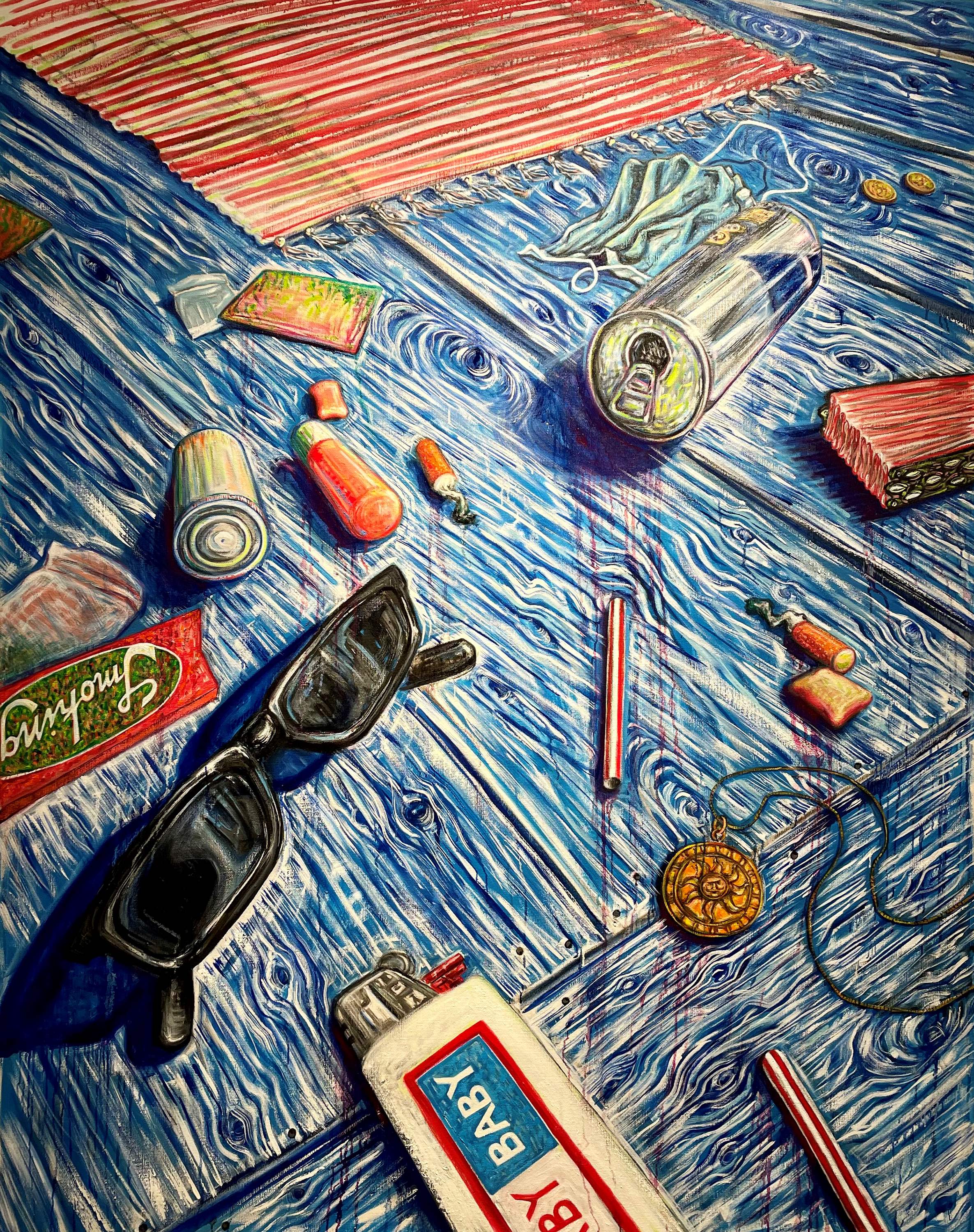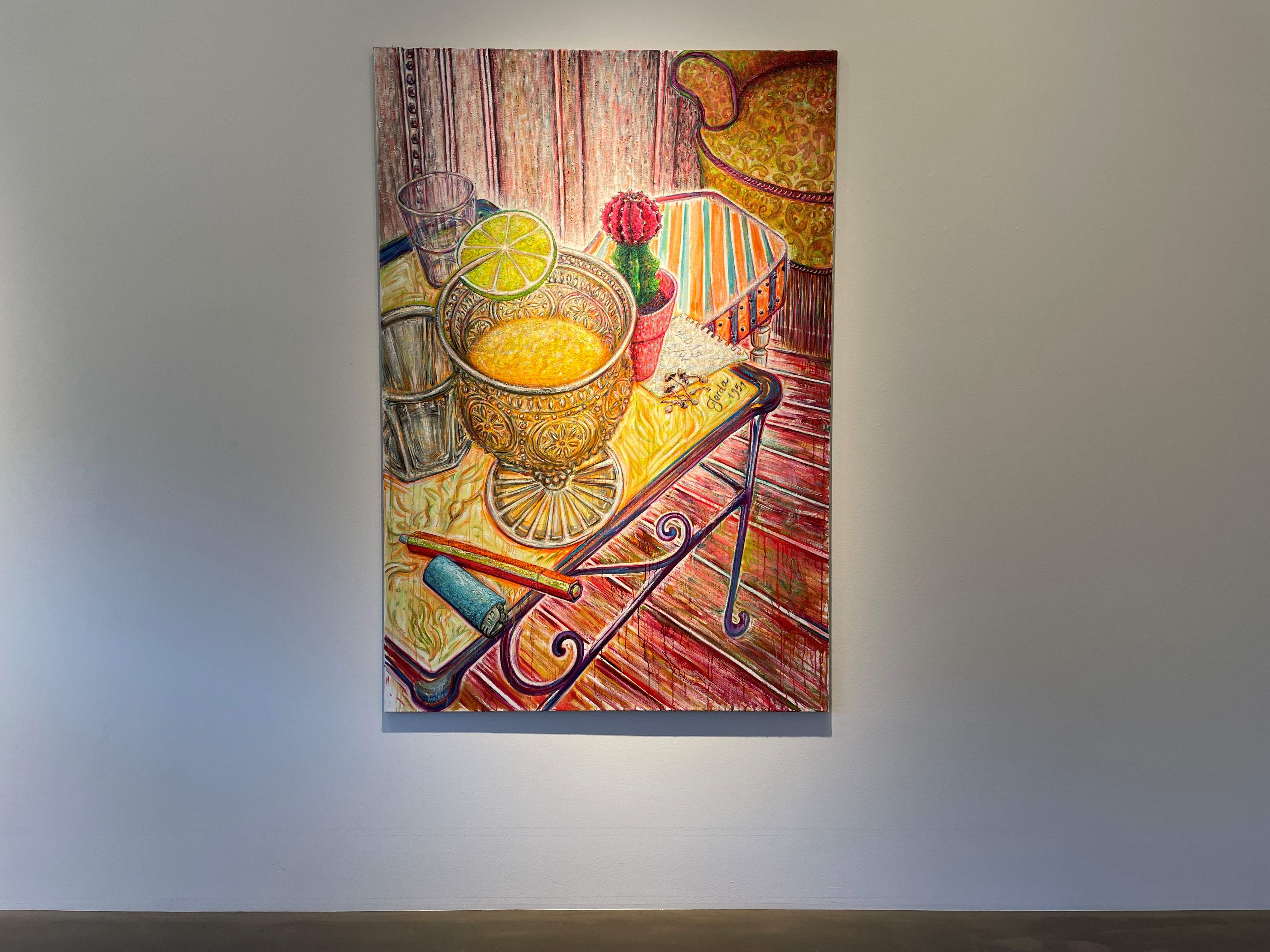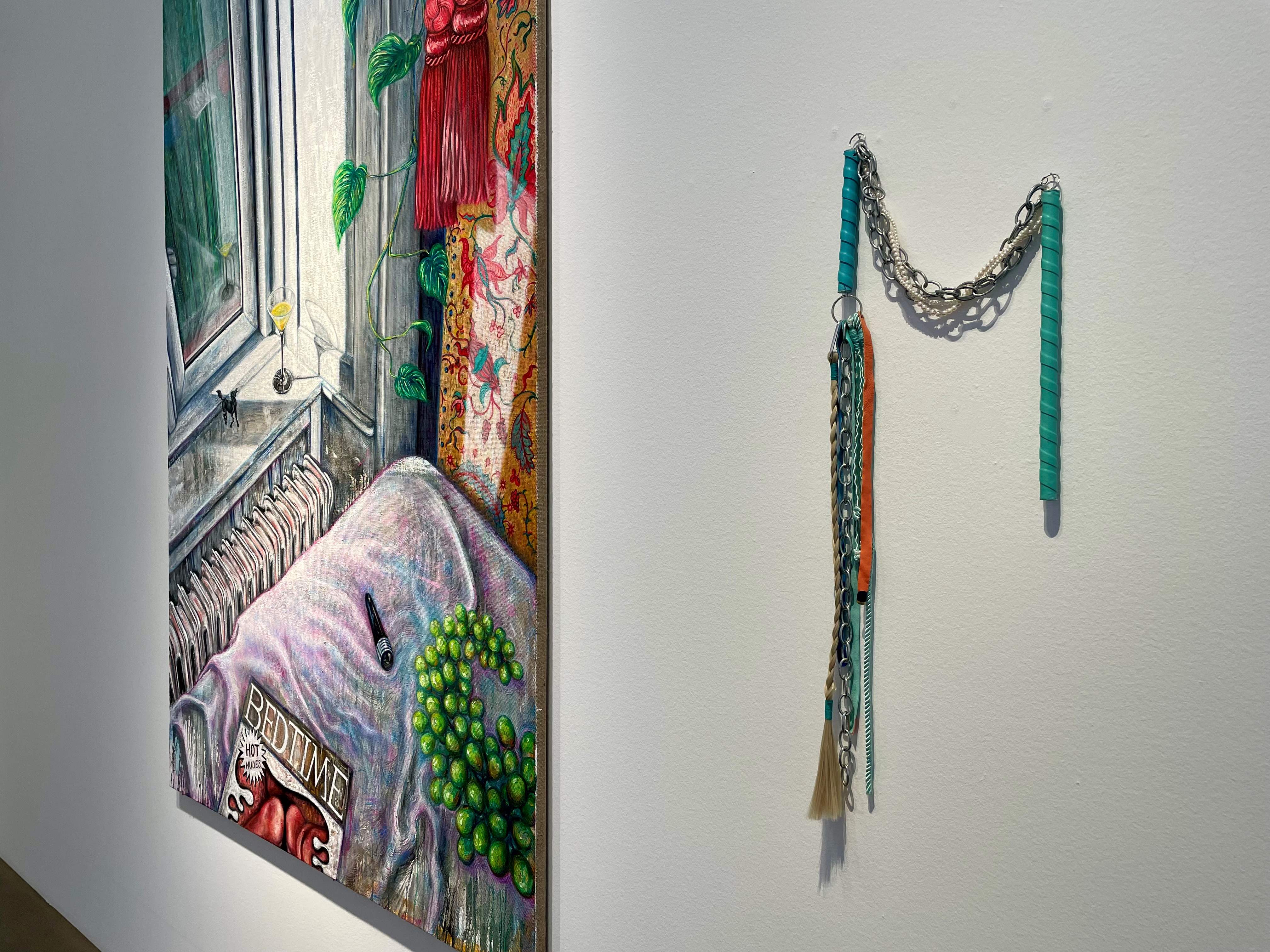 Where Nedbo’s earlier works have often centered around the human figure, the six large and brand-new paintings in the exhibition take a new direction. The paintings work as a kind of object-portraits that all apply the still life genre as the form of inquiry. Here a line of personal snapshots from the reassuring and intimate framework of the home is presented. Through the hijacking of this traditional genre, Tine Nedbo’s new series of works challenge the onlookers’ understanding of how we as humans and individuals inhabit physical spaces and which social and political meanings these intimate relationships entail. Much like the historical still life paintings the mute objects are never isolated but adds to their context as a symbolic representation that welcomes political, economic, and bodily perspectives. The silent echoes of power.