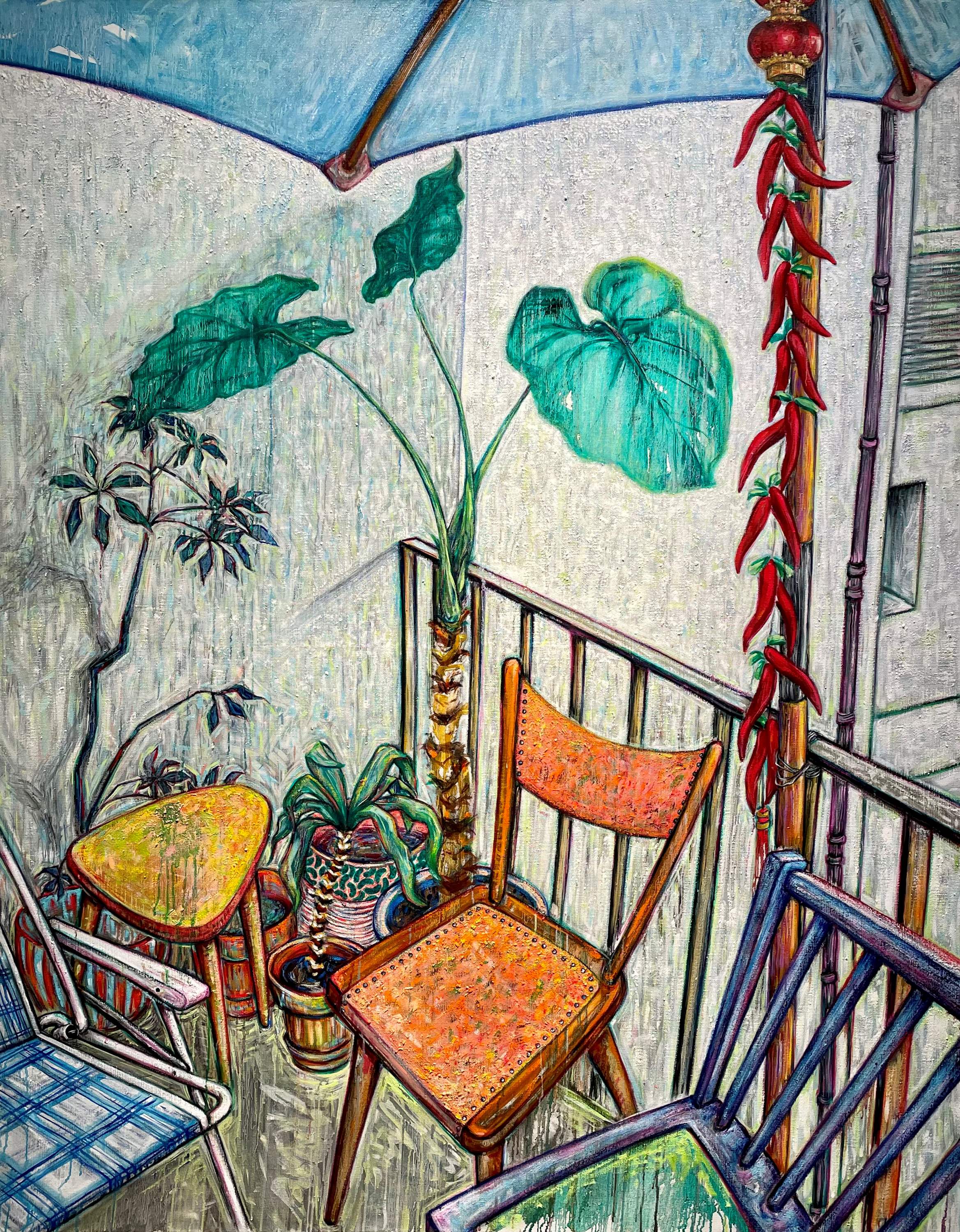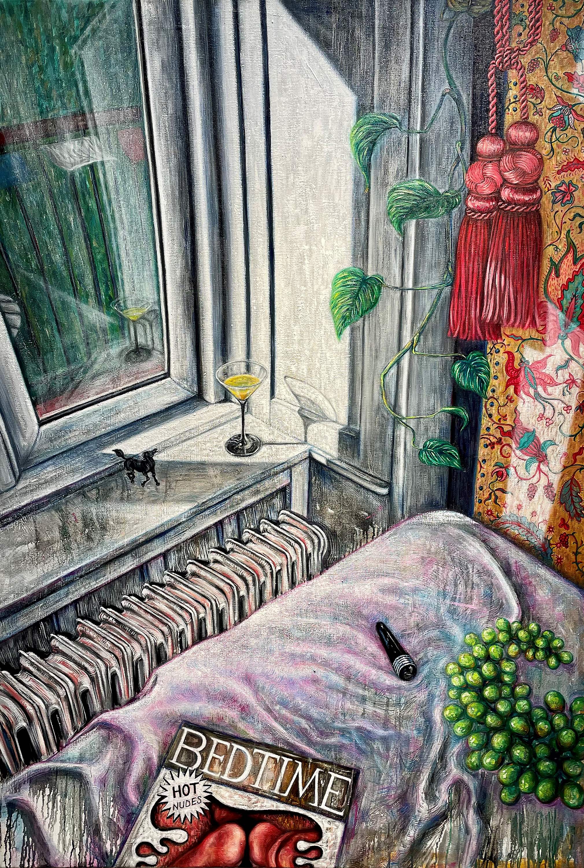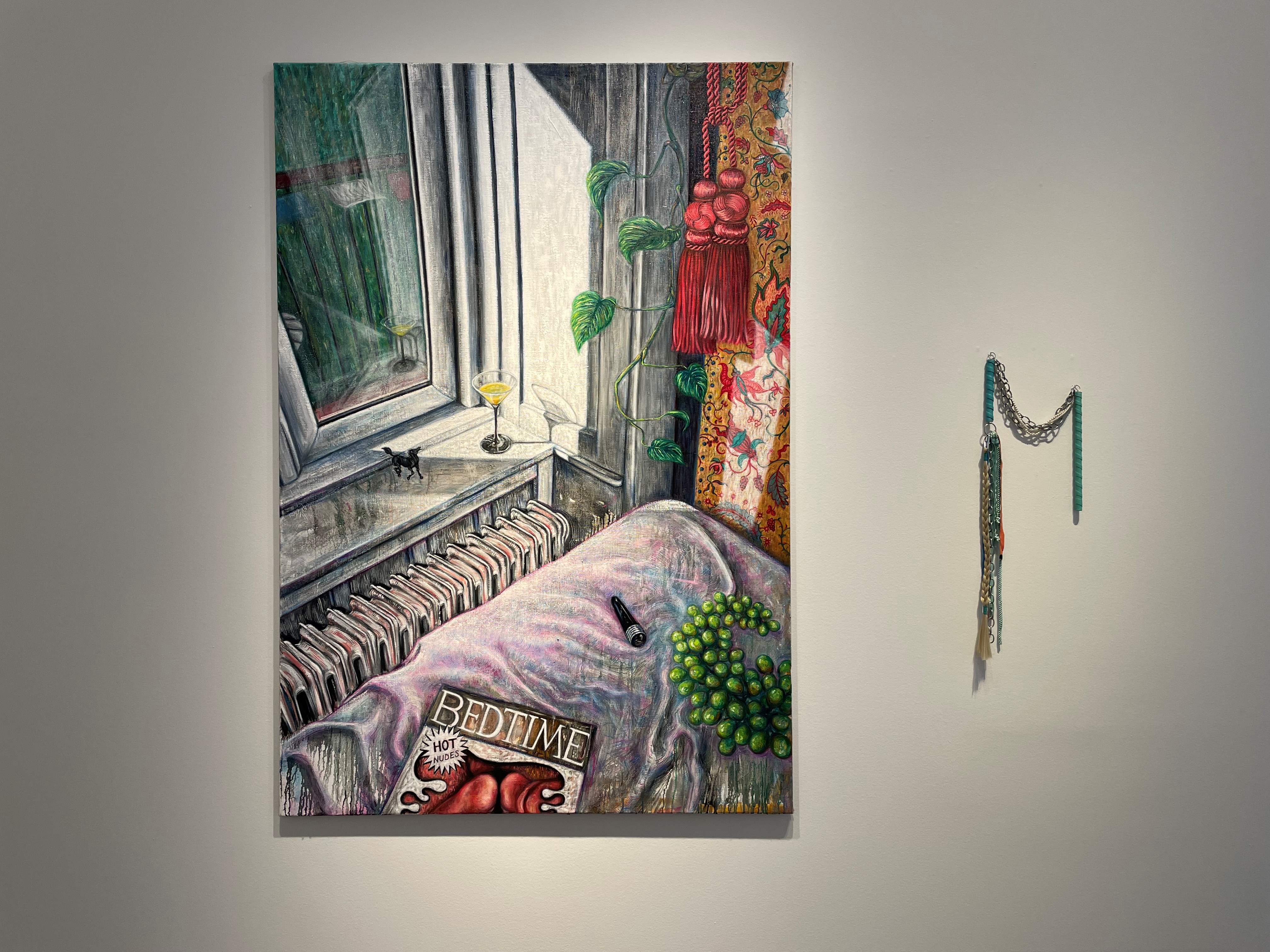 By sharing her most intimate and safe spaces Tine Nedbo points at the connection between the personal and the mutual. Despite the absence of human figures in the object portraits, the paintings tremble with an echo of human presence and influence. The spaces presented in the paintings open themselves towards the viewer and invite us to coinhabit these vulnerable spheres and their objects and to use this open invitation as a base for reflection and exchange.