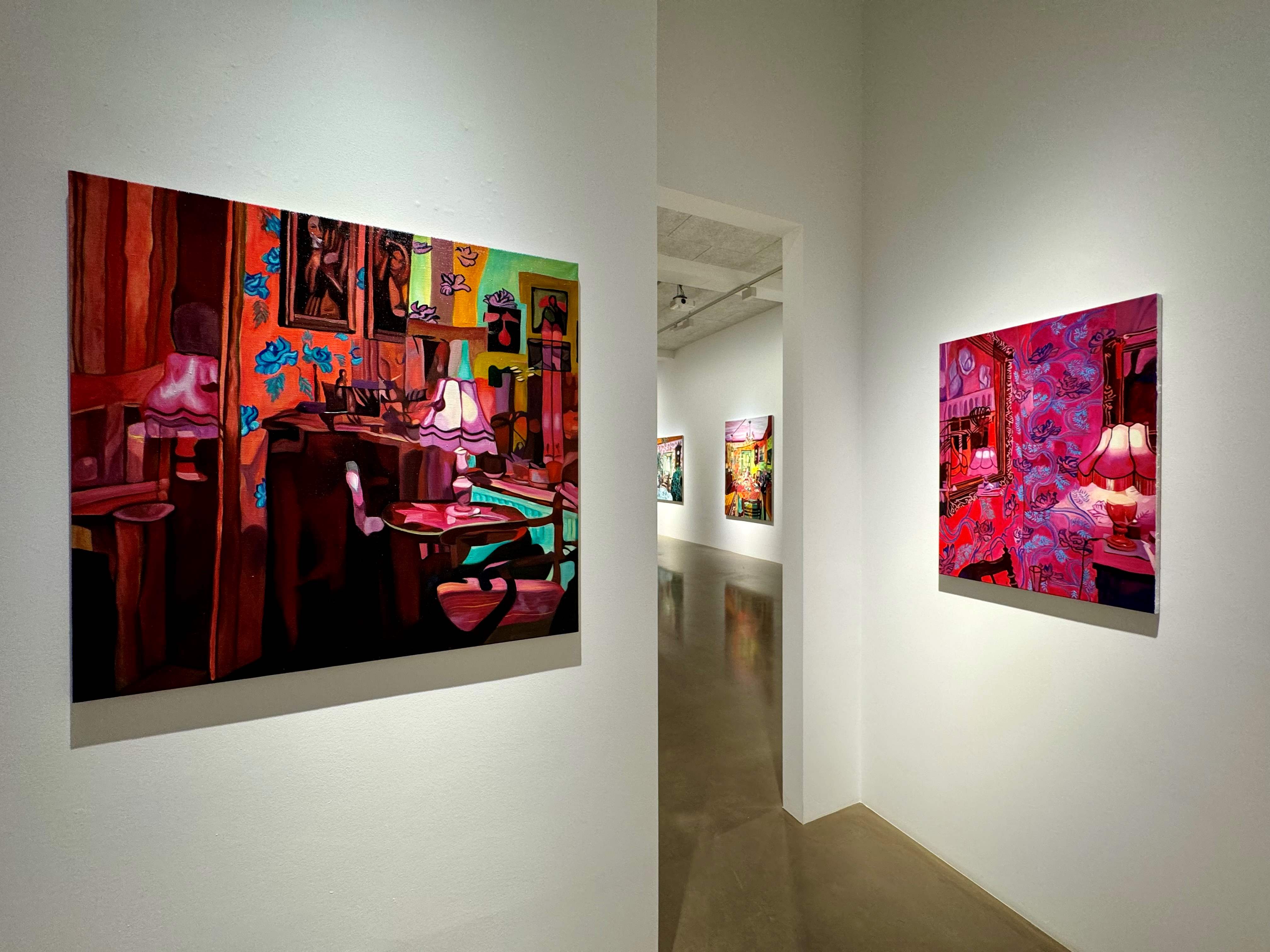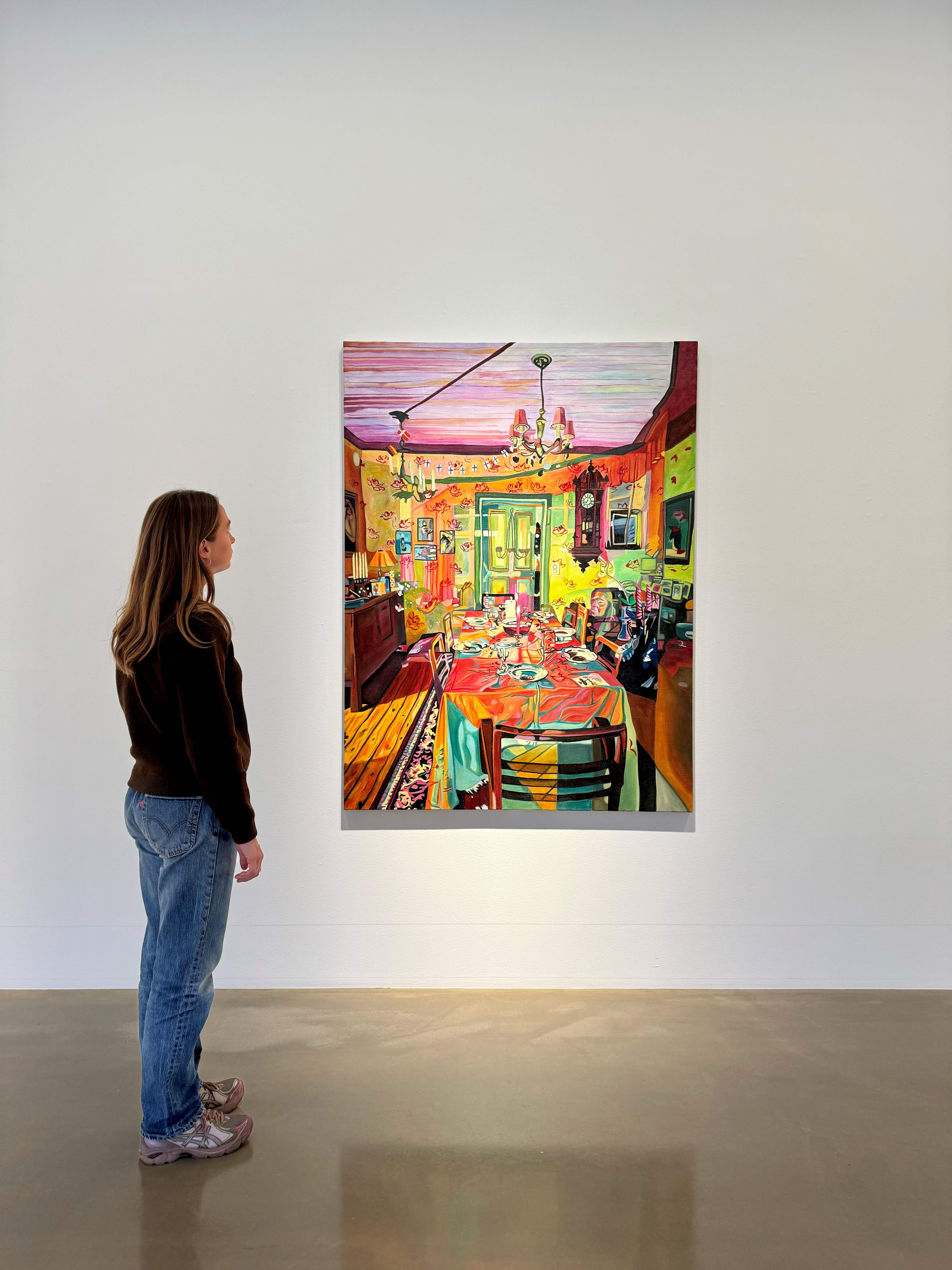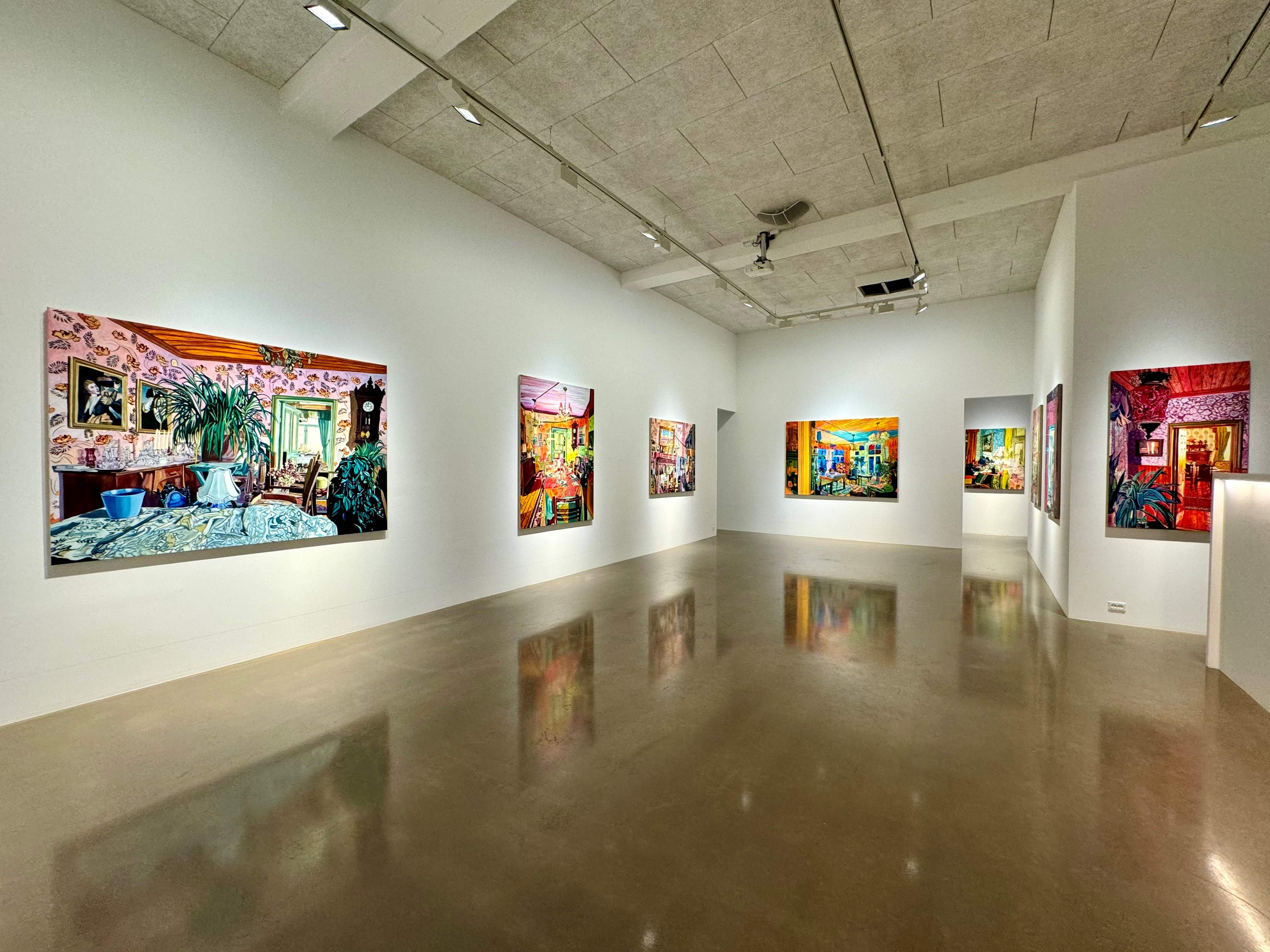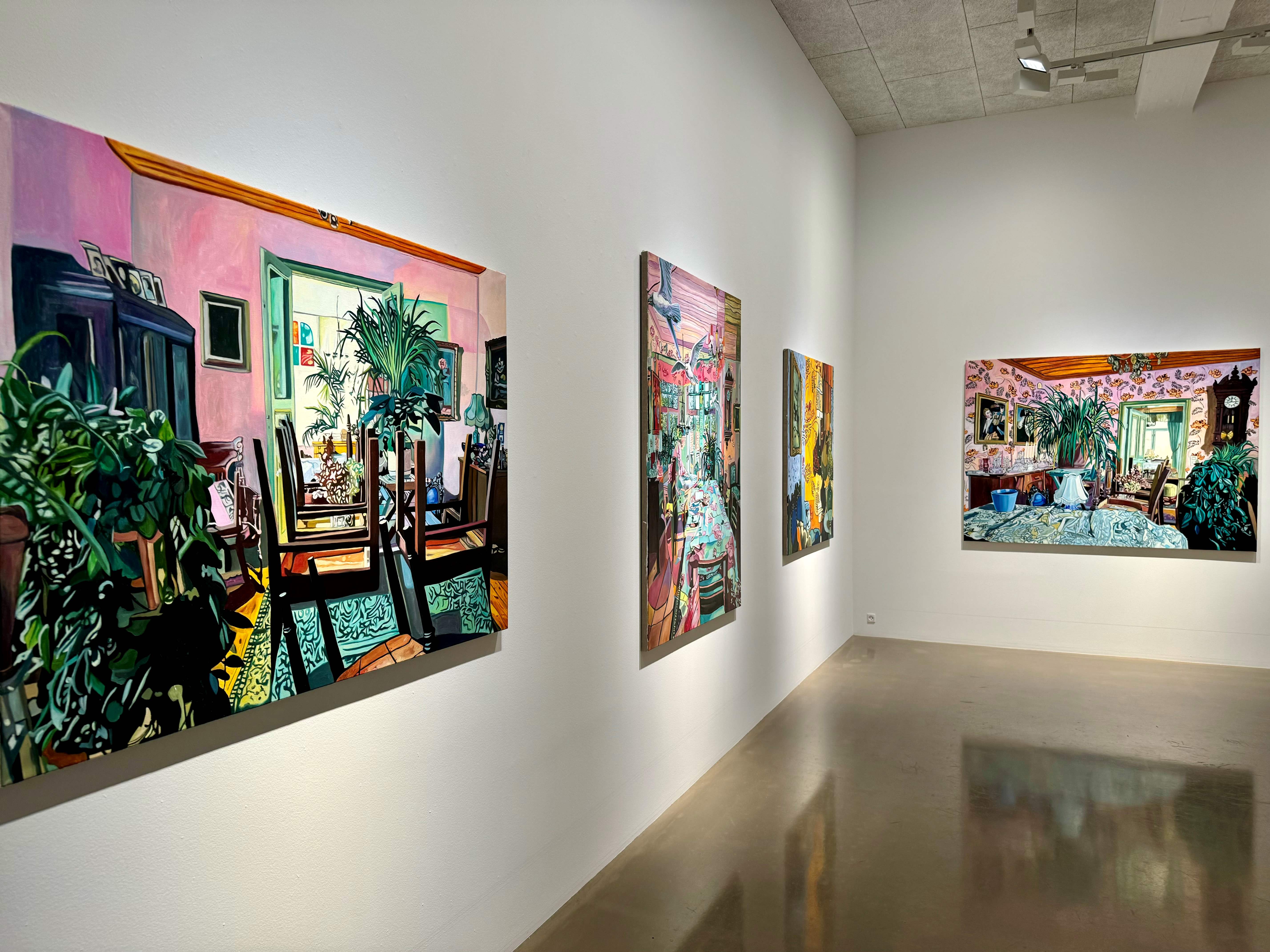 Vibrant, warm interiors filled with assorted furniture and objects bid us welcome in Emilia Nurmivaara’s most recent body of paintings depicting fond interpretations of her childhood home in Finland. The figurative imagery of interior scenes in Nurmivaara’s paintings comes alive through her distinctive and playful use of perspective and proportion. The exhibition House of Dreams is Nurmivaara’s second solo exhibition at Gallery Poulsen. Her works follow a continuation of French philosopher Gaston Bachelard’s book “The Poetics of Space” which explores how dreams, thoughts and memories become attached to the spaces we inhabit, transforming them into powerful extensions of the soul.