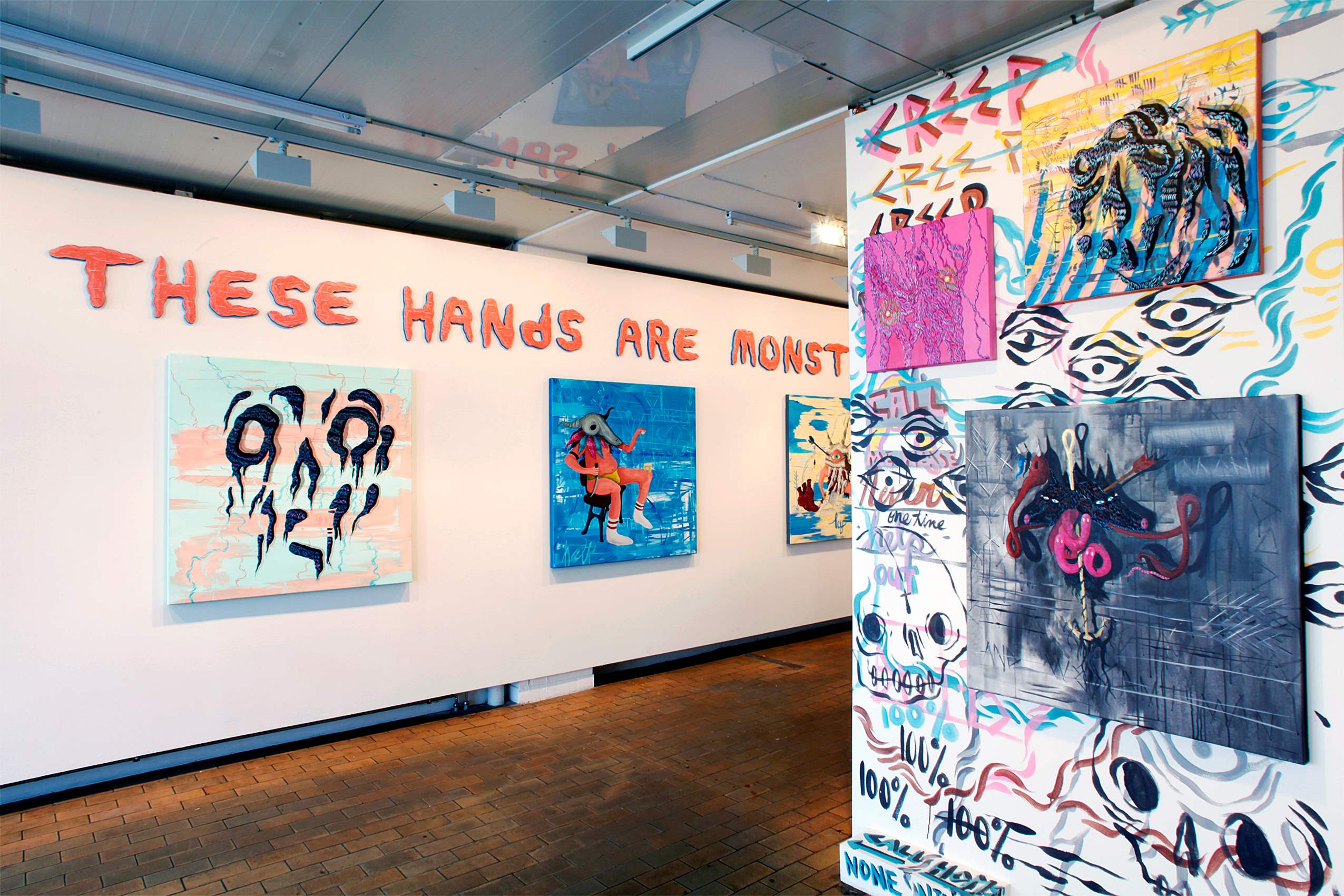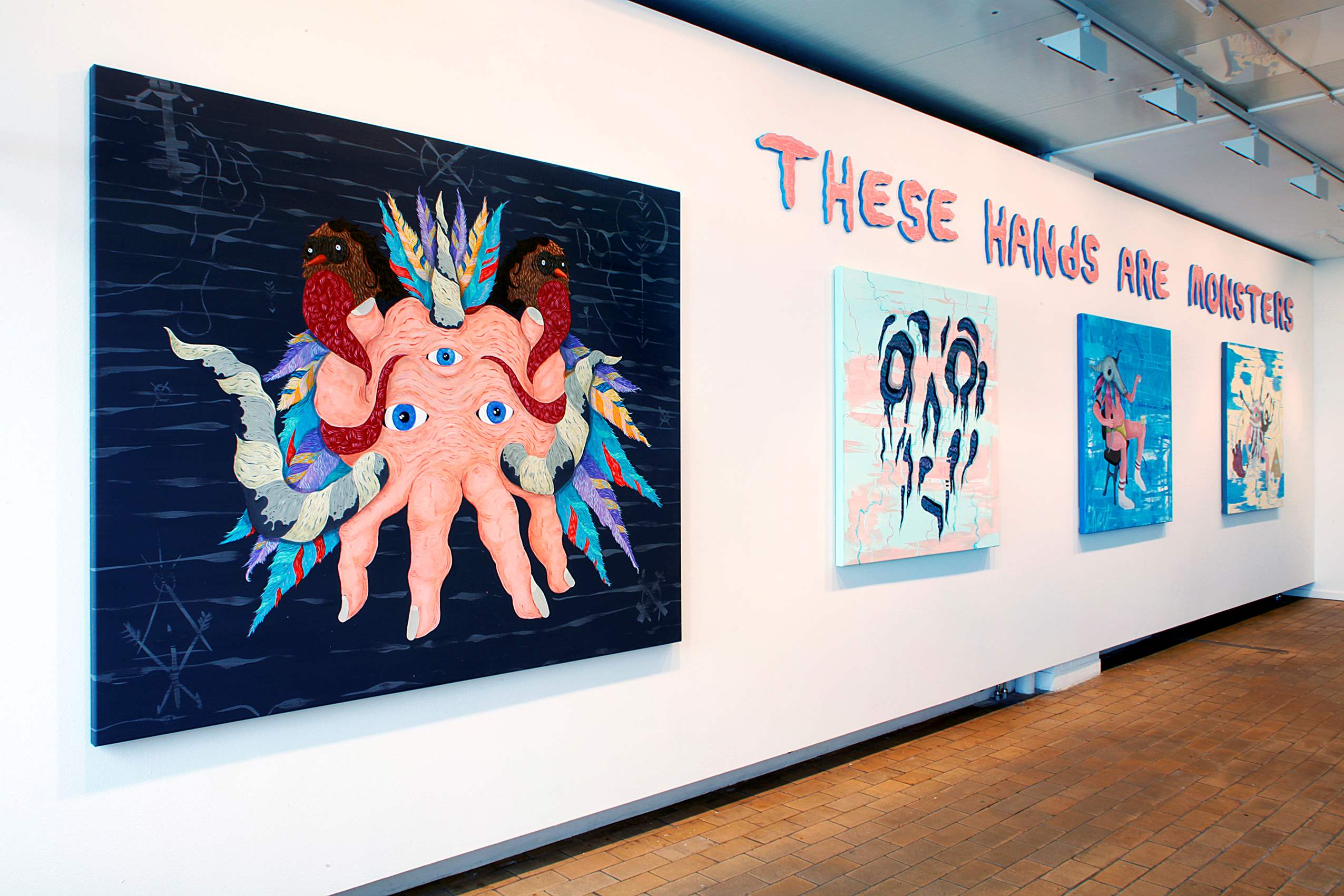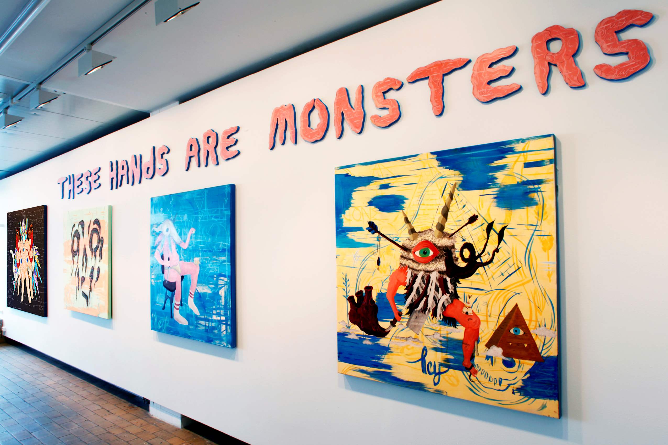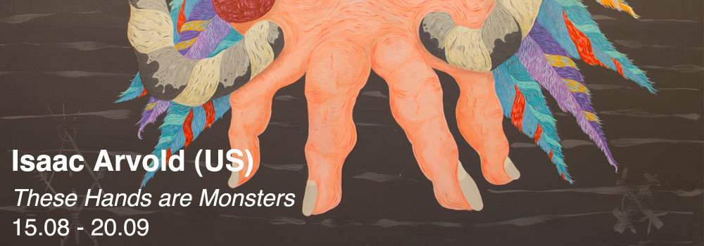 Med disse ord skyder vi efterårssæsonen i gang med et af galleriets senest ankomne amerikanske talenter, Isaac Arvold. Til denne udstilling ”Disse Hænder er Monstre”, der er Isaacs første solo i galleriet, har Isaac primært arbejdet med værker i akryl på lærred, der ledsages af seks håndmalede print samt en mindre installation.