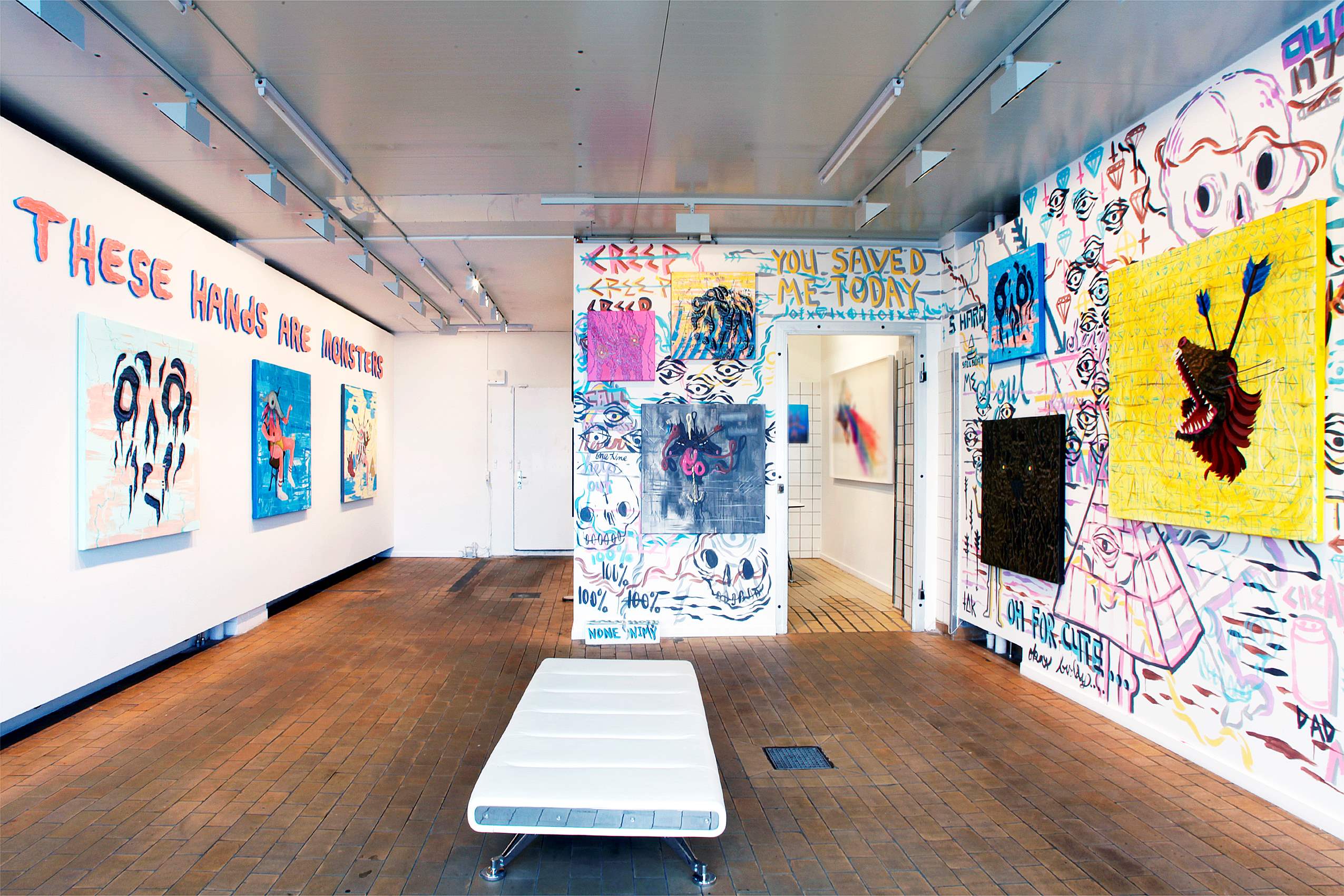 With these words we kick off the fall season with Gallery Poulsen’s newly arrived American talent Isaac Arvold. For this show “These Hands are Monsters”, which is Isaac’s first solo show in the gallery, Isaac has primarily been working with acrylic on canvas accompanied by six hand-painted prints and a small installation.