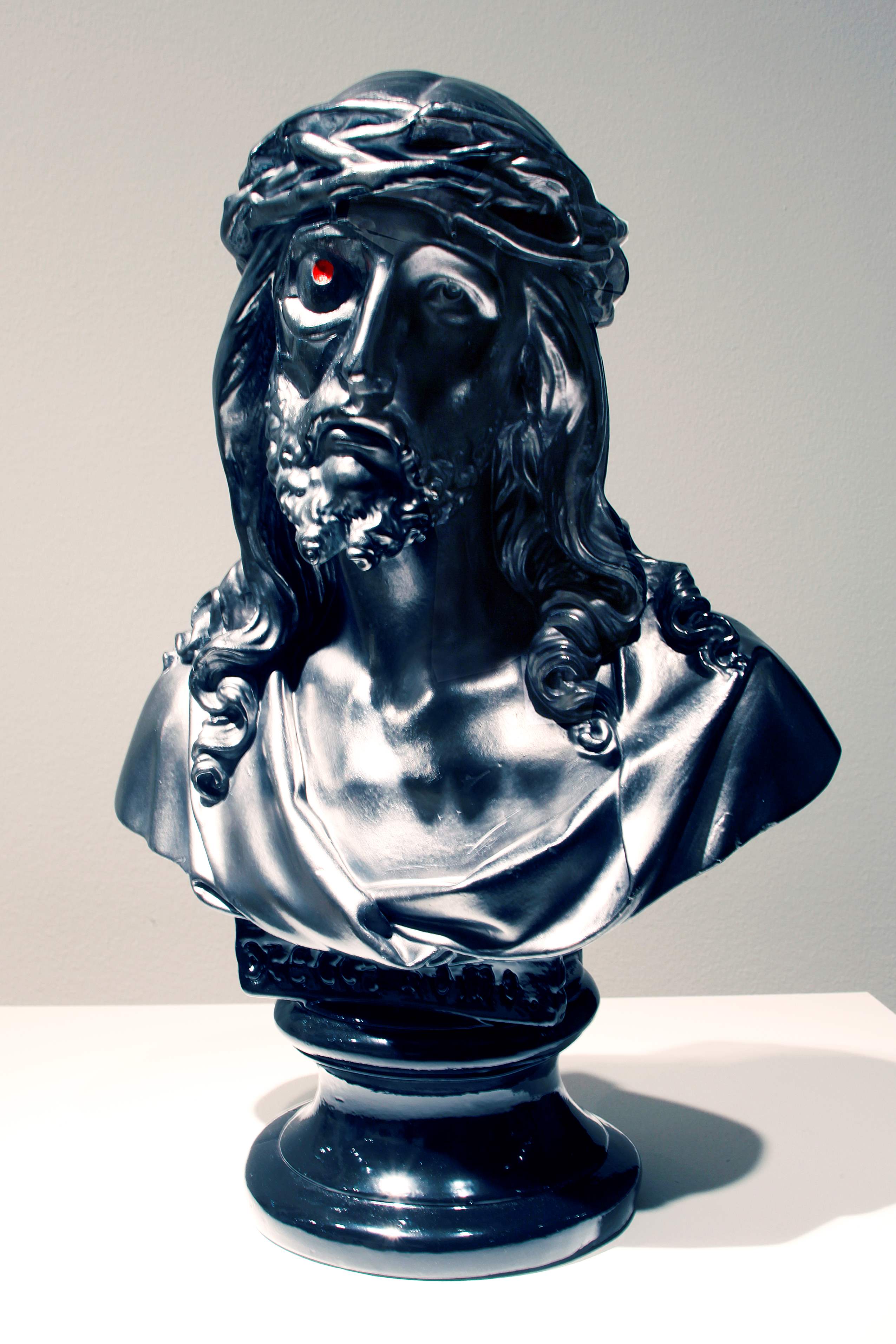 With recognizable loans from both art history and pop culture Dahlstrup presents first and foremost a male figure in various comical yet serious situations. We see Darth Vader in a Madonna pose with a helpless child in his arms, Jesus caught in the dangerous mouth of a big shark and the Marlboro Man with a mouth full of smoky cigarettes. Although these men have gained a lot of publicity and have had endlessly long airtime through the years, Dahlstrup manages to place them in yet unseen contexts. It is refreshing, original and funny.
