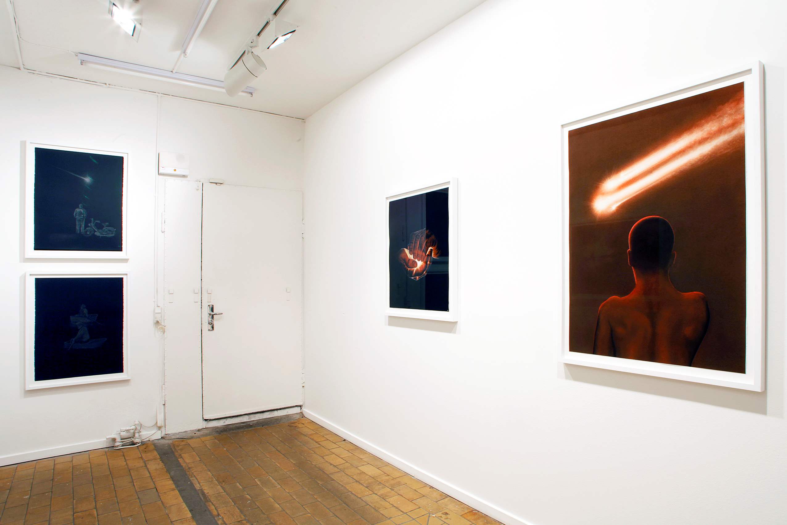 Armed with charcoal, color pigment, graphite and pencil, Dahlstrup has created an exhibition, where impressive craftsmanship cannot be ignored. Simple figurations, neat strokes, controlled erasings and detailed lines characterize Dahlstrup’s work, whether he works with charcoal or graphite, with colors or monochrome. The meticulous procedure and simple color palette contrast the whimsical figurations. It’s a clever move, that leaves us in an interesting aesthetic space between play and seriousness.