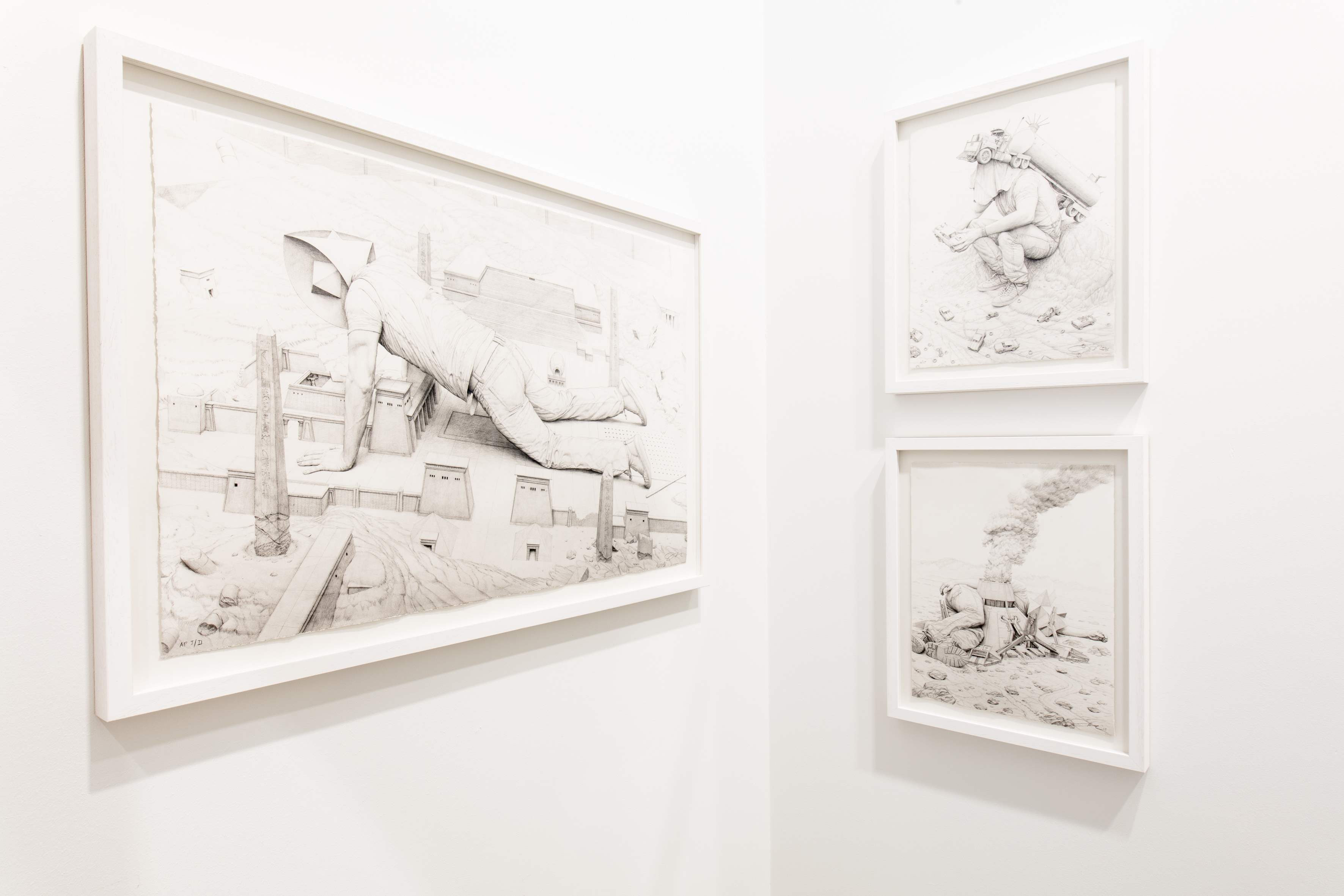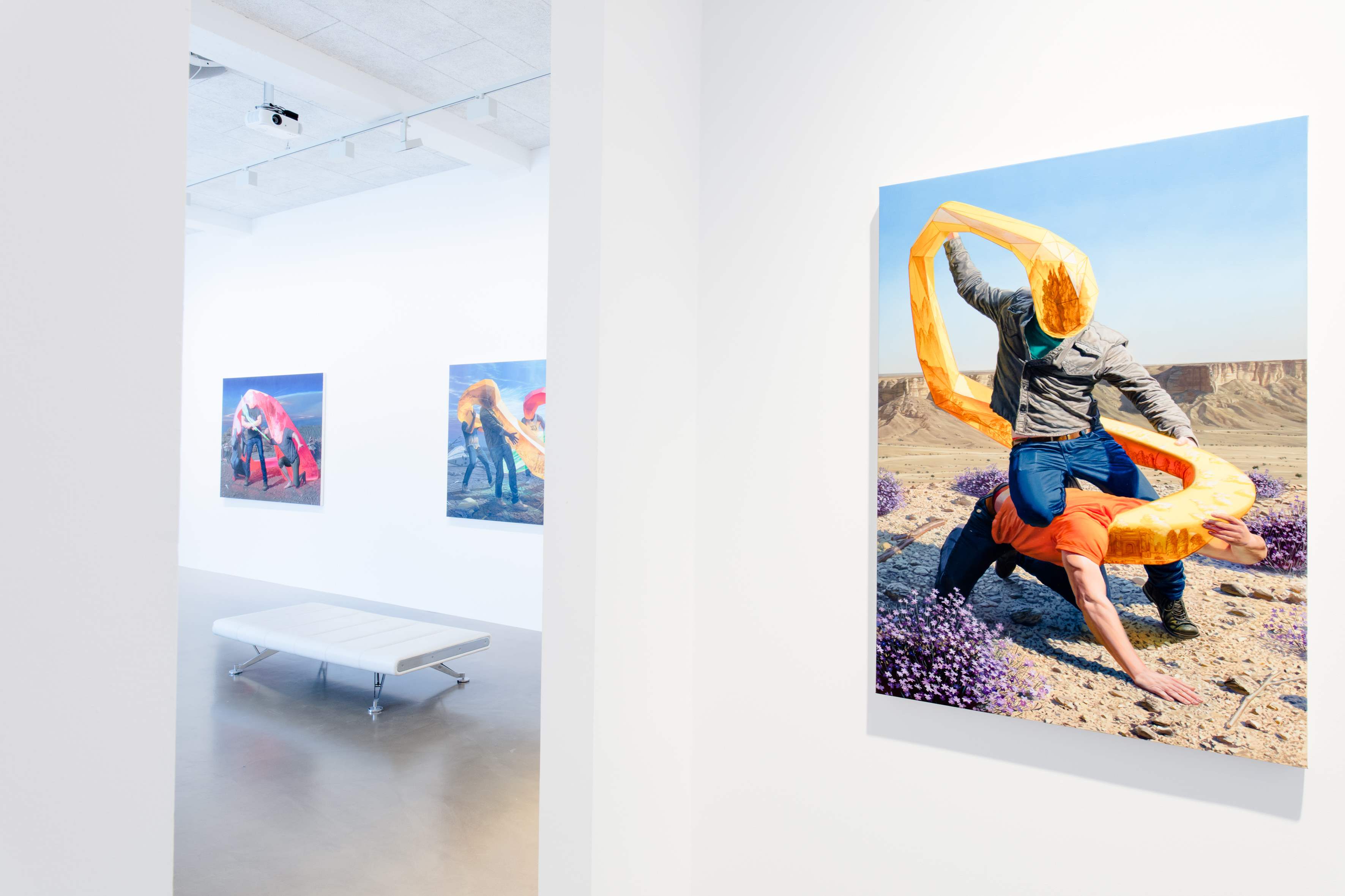 Jean-Pierre Roy challenges us to stop and consider how it feels to question our immediate reaction to what we see in front of us. In each of the artworks in the exhibition, he presents a series of different characters, all caught in the middle of a sensory uncertainty. He has placed them in remote, Spartan surroundings with their hands and faces buried in blurred temporal geometry. For these characters only one thing is clear: the only thing they can be certain of is their uncertainty.