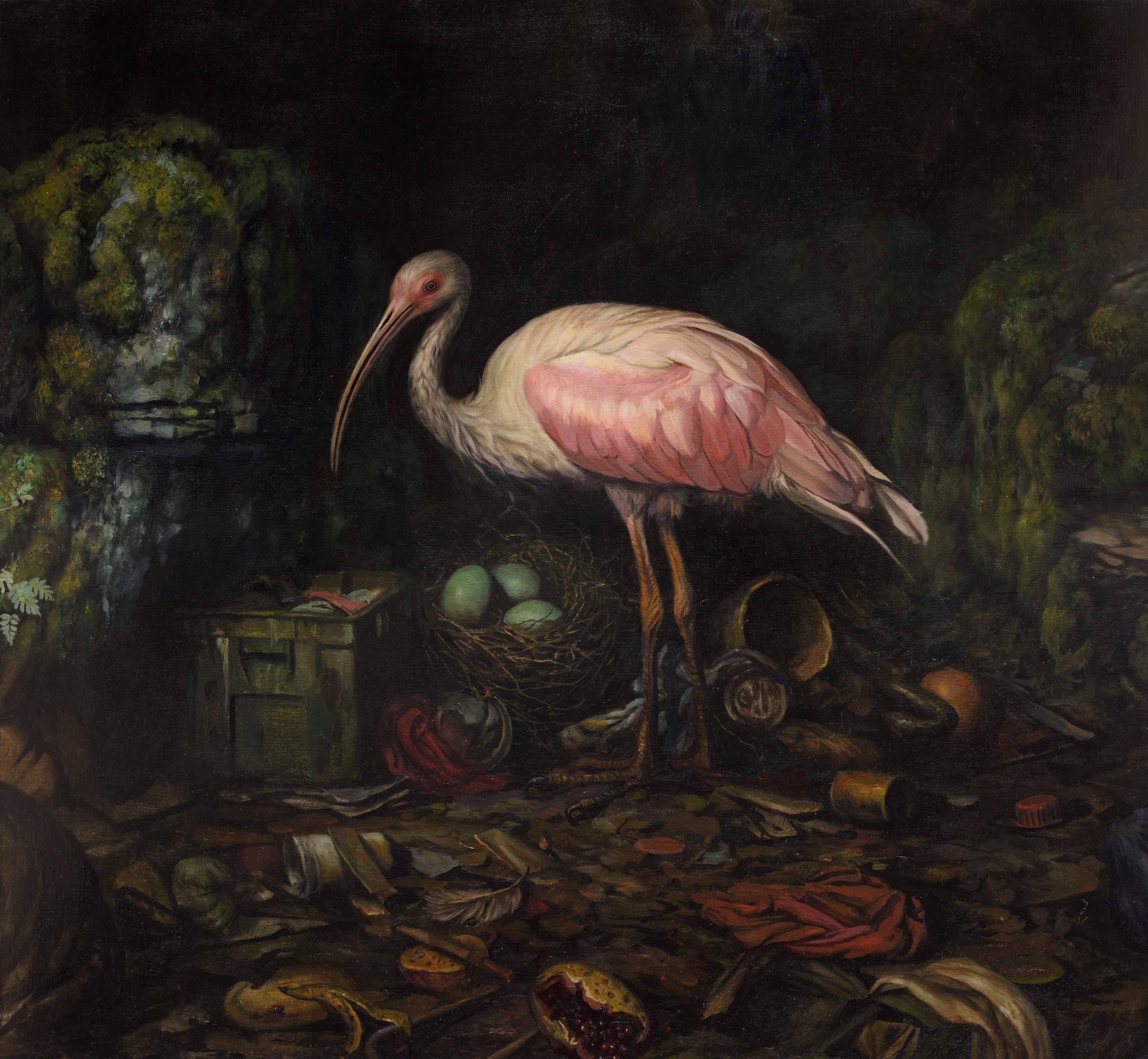 Through his mastery of oil painting techniques and his choice of subject, Wittfooth places himself in a long tradition of masters who depict reality as they see it. However, in Wittfooth’s works, nature has been pushed into the background and stripped of its original power. There’s a sense of decay, where humanity’s careless exploitation of nature has left a world marked by pollution and plastic waste. One could say that in Koti, Wittfooth revisits themes from his earlier works, where animal figures appear as vital and powerful characters, in stark contrast to the selfish tendencies of modern society. Koti includes 10 large oil paintings, each carrying Wittfooth’s vision of a world in transition.