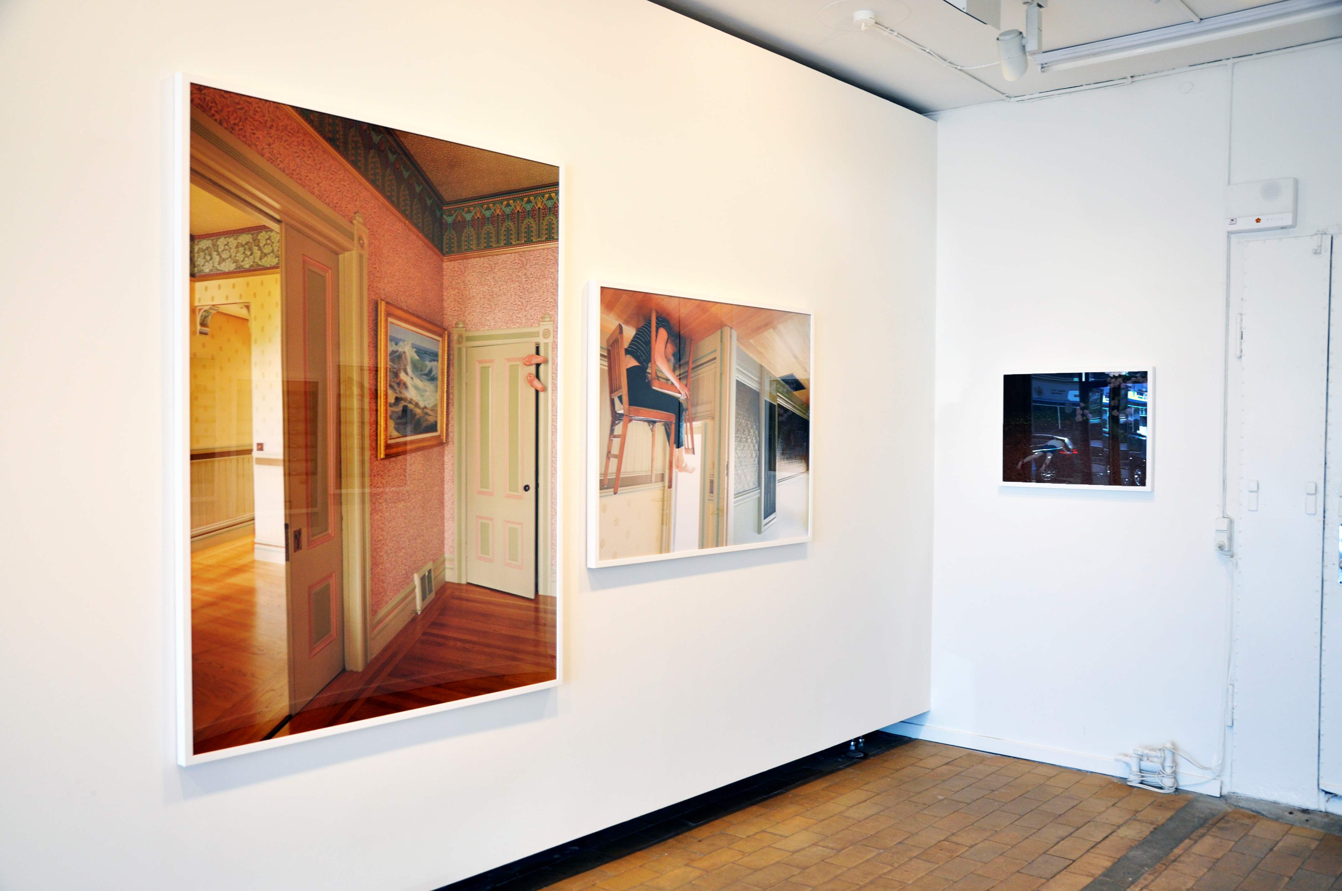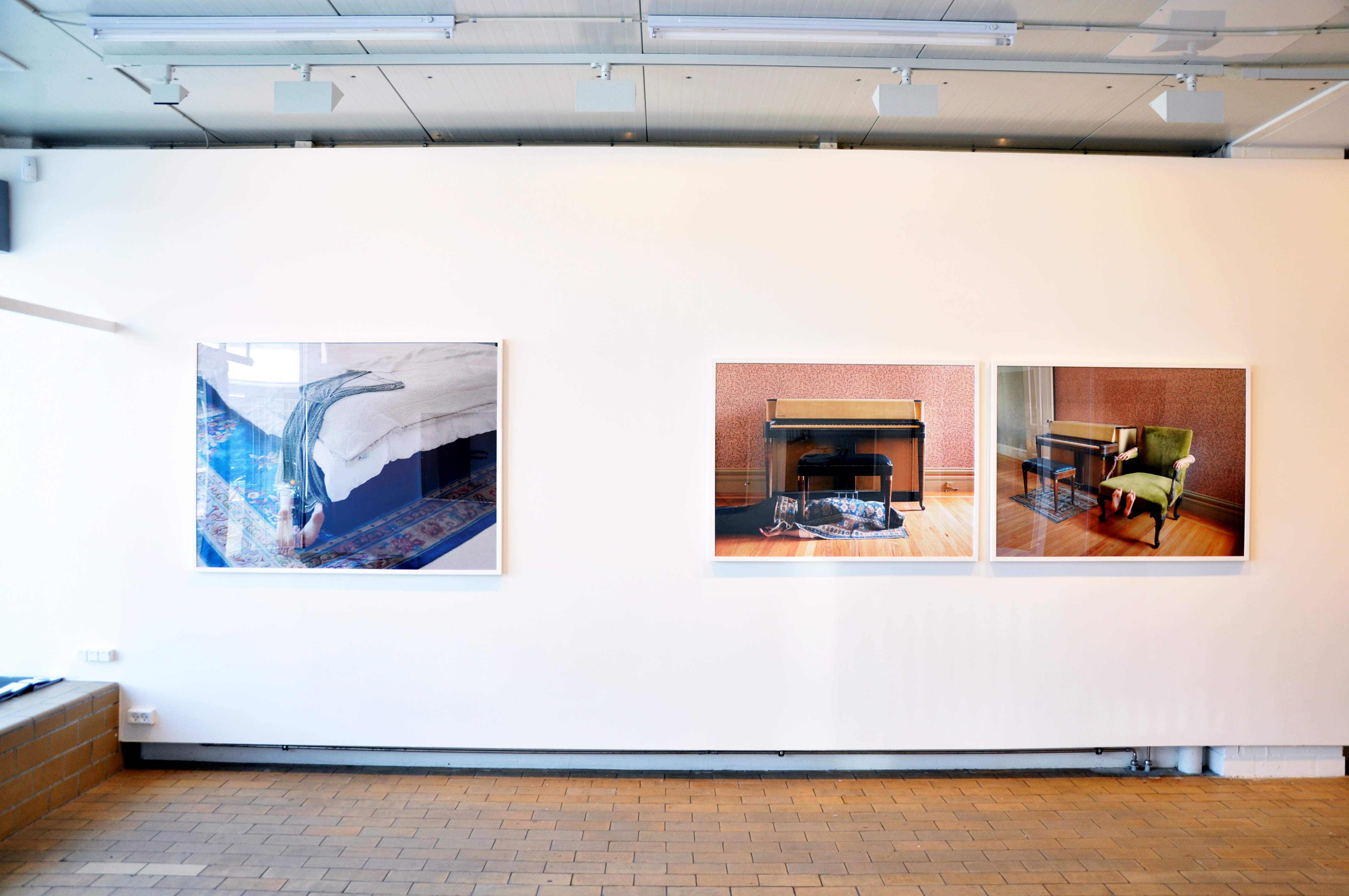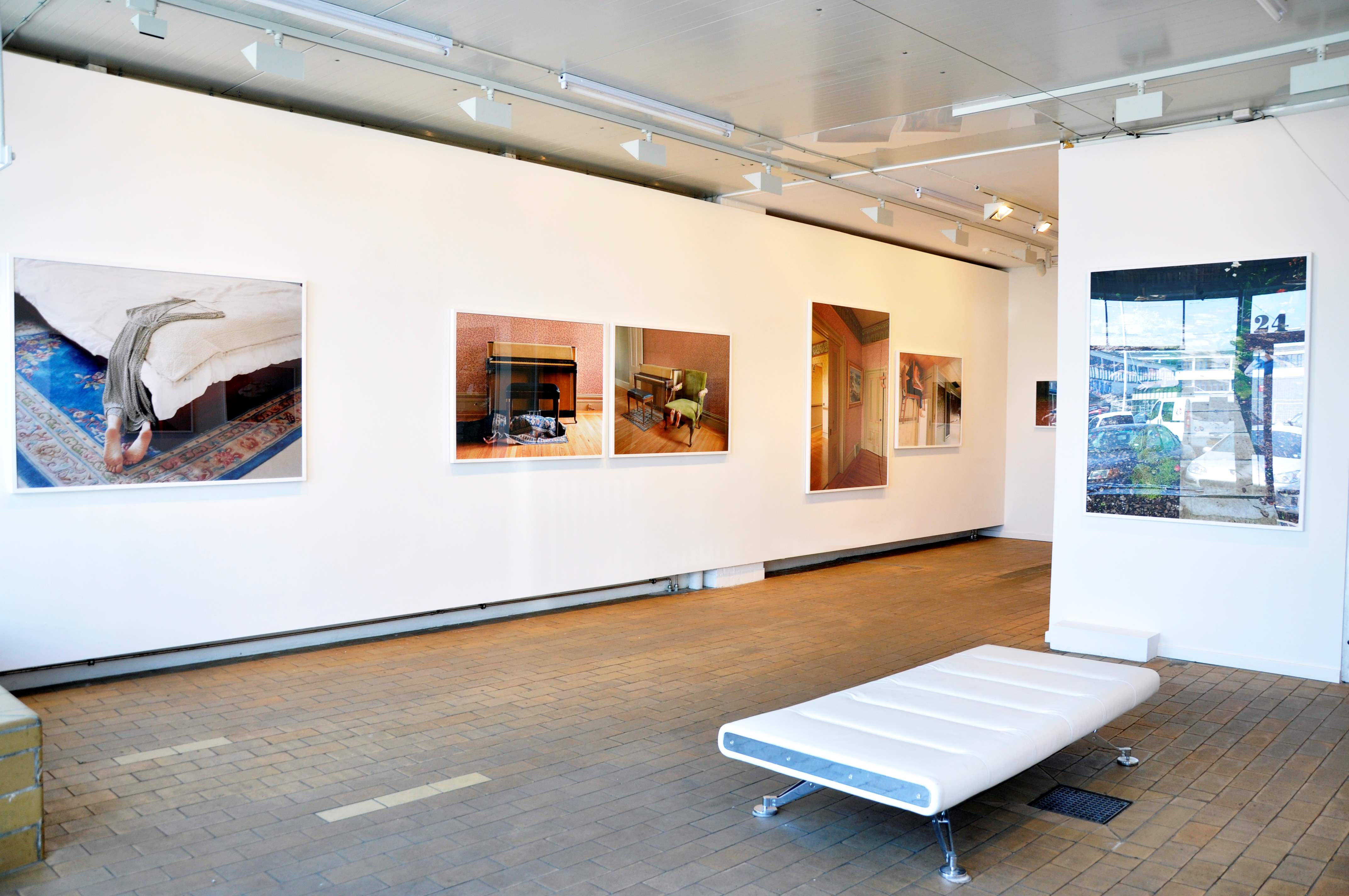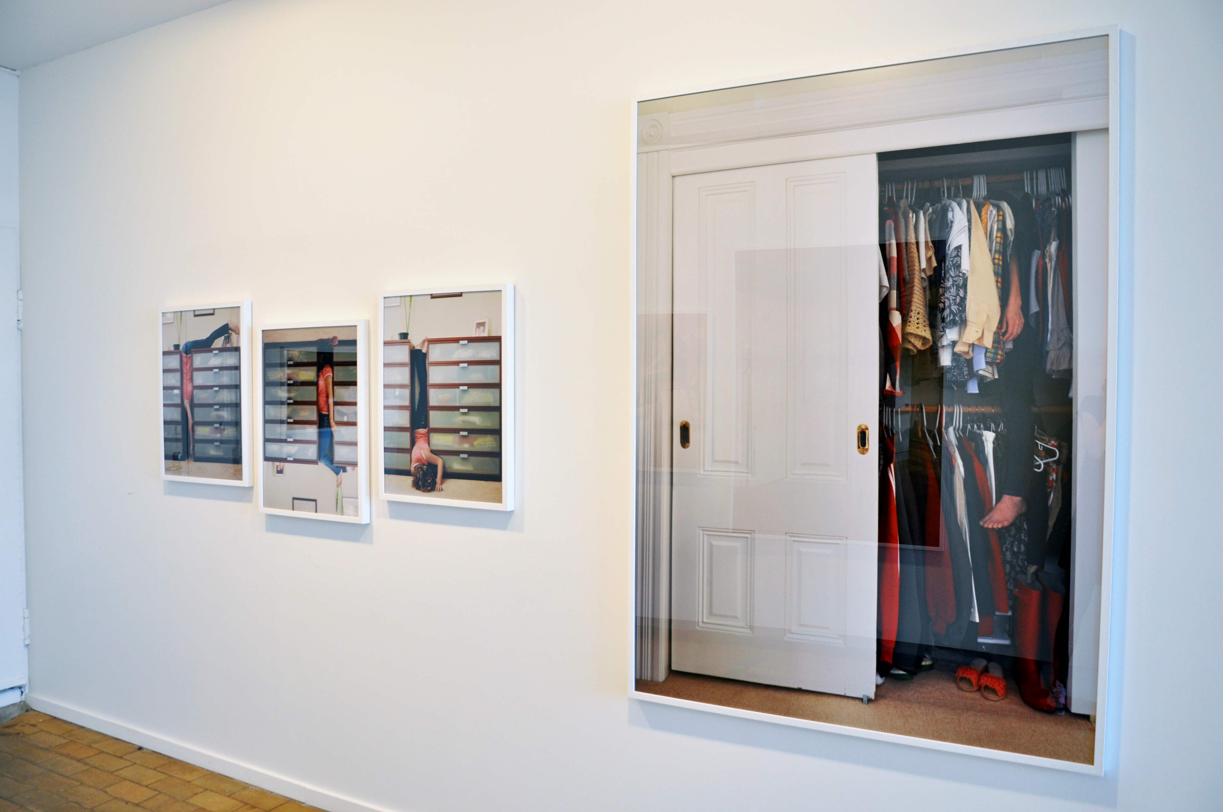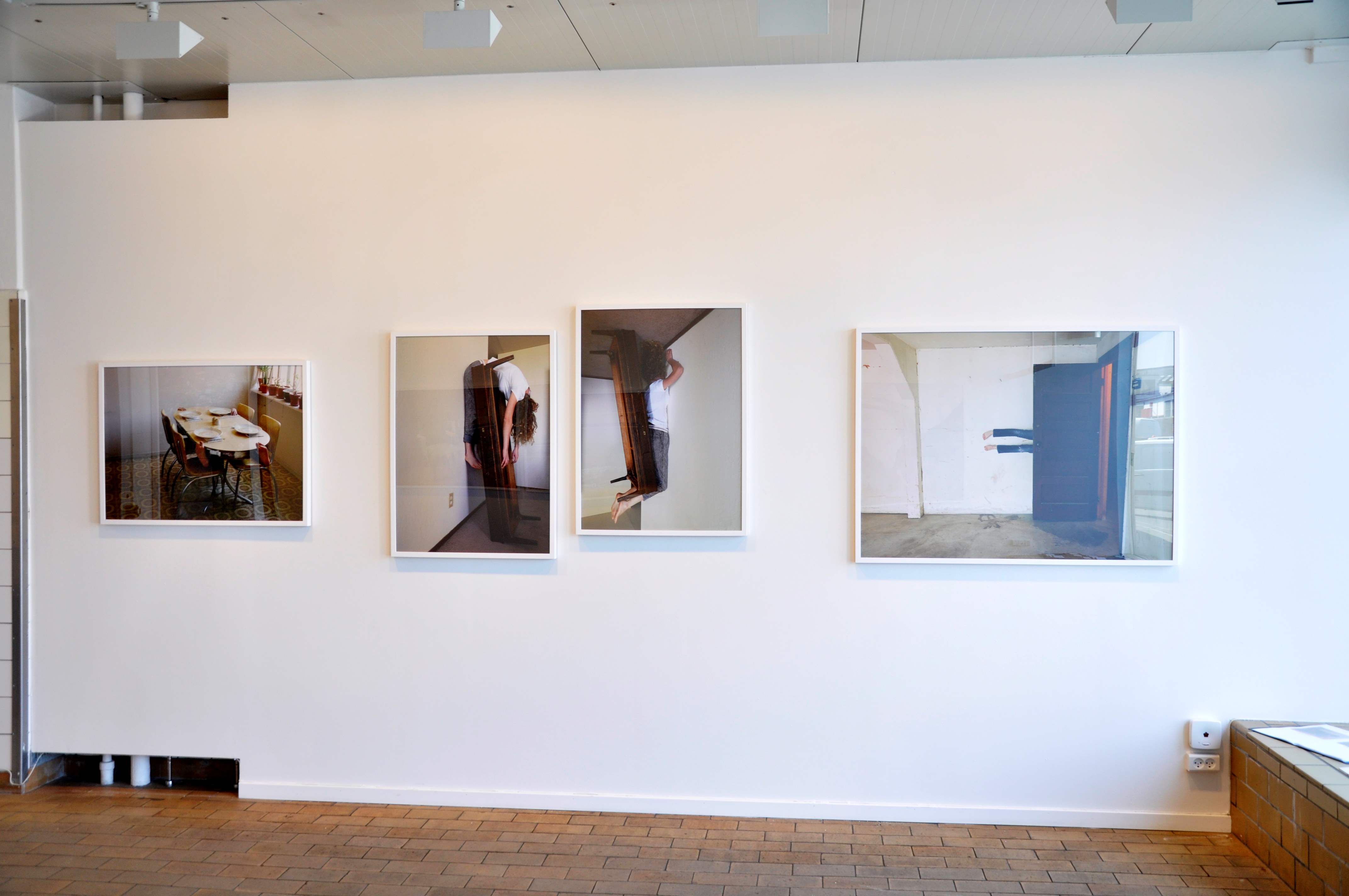 Udstillingen ’Finding Myself at Home’ præsenterer 13 nye værker, der er hentet til København fra Lee Materazzis nuværende base i San Francisco. Alle fotografierne omhandler hjemlige sysler, der fordrejes til absurde situationer. Vi møder en kvinde, der på akavet vis ligger under havefliserne i baghaven. I et andet fotografi ser vi kun en kvindes nøgne fødder stikke ud fra entré skabets øverste hylde. Blandt de mange bizarre hjemlige scener ses også en kvinde, der anstrengt holder sig selv fasthængende under sit køkkenbord.