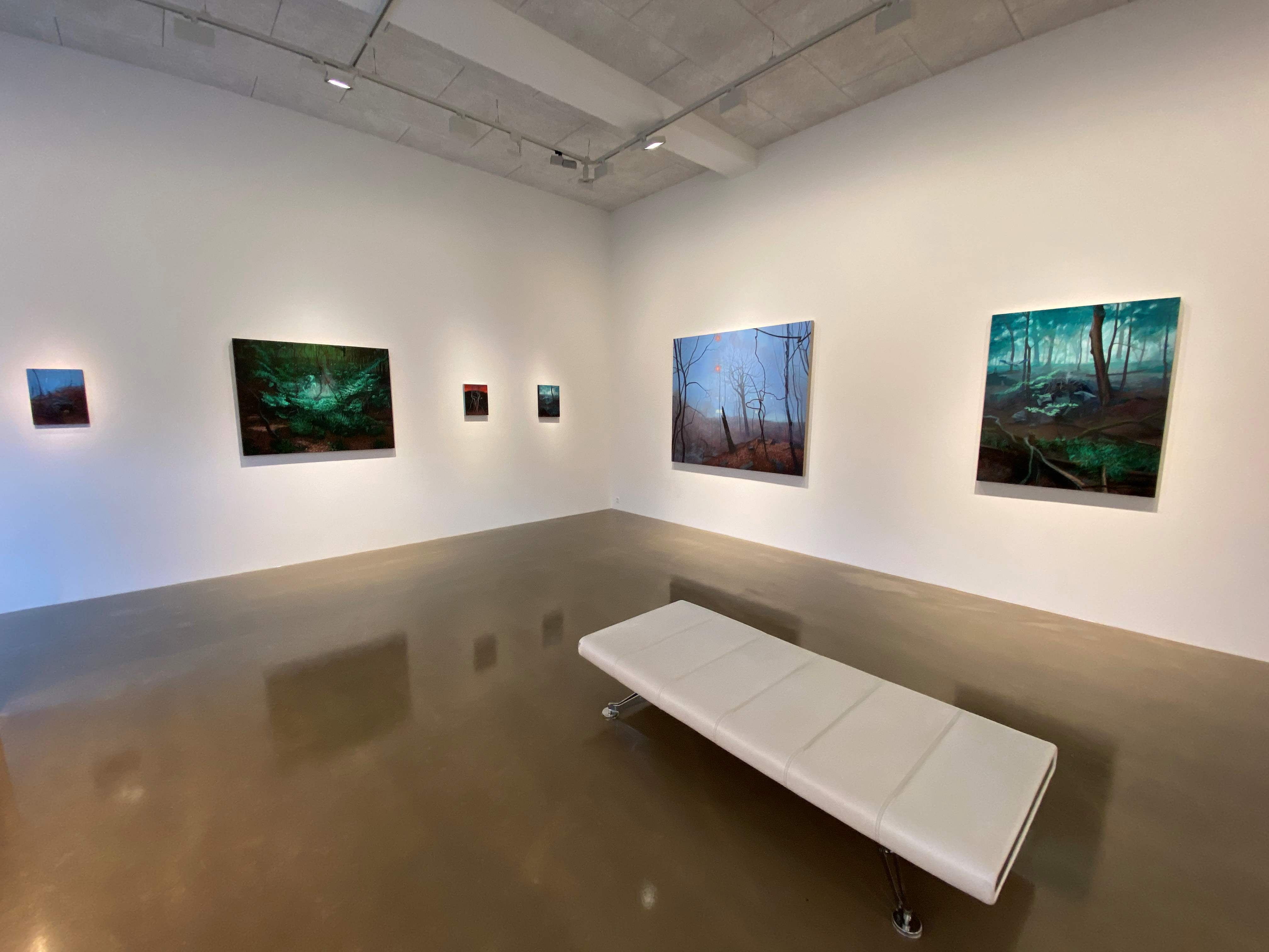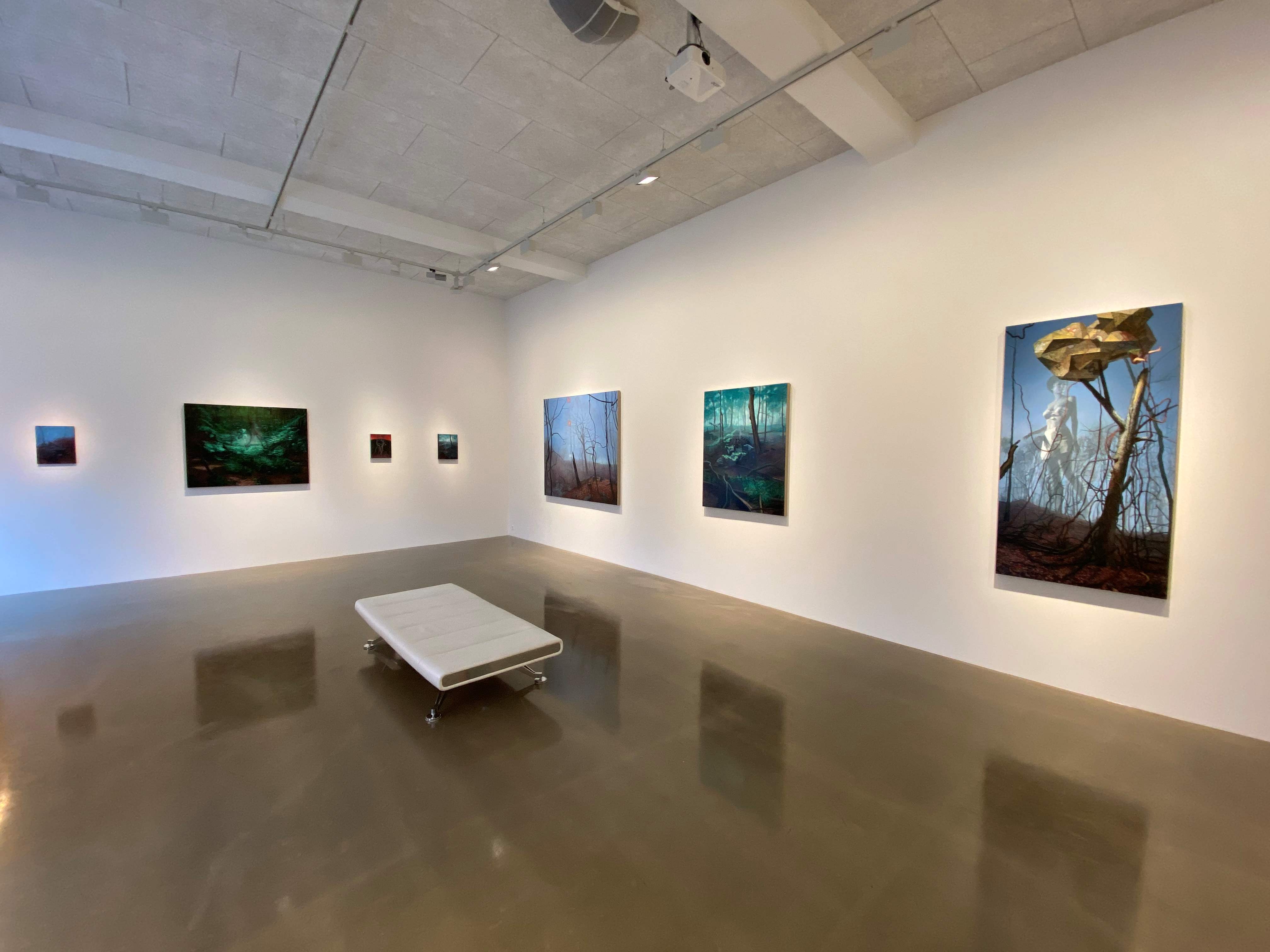 It follows that our notion of nature is culturally constructed which holds especially true for my current environs. Having moved to the Hudson River Valley from Brooklyn several years ago, Jacobsmeyer is again surrounded by embattled woodland. Here, between the Sawmill River Parkway and the New York Thruway among the giant trees shrouded in vines he can recognize the landscape he came from. There’s a grandeur here, a power that people don’t seem to notice. John Jacobsmeyer’s paintings show very clearly what a great landscape painter he is, but it is in the often twisted elements that he positions in the unanticipated surroundings that you find his characteristics and depth. The painting Colossus is a great example of how he has positioned the giantess as a metaphor in this place and shows how he reinterprets the art history as well as experiences from his own past and thereby creates a parallel reality.
