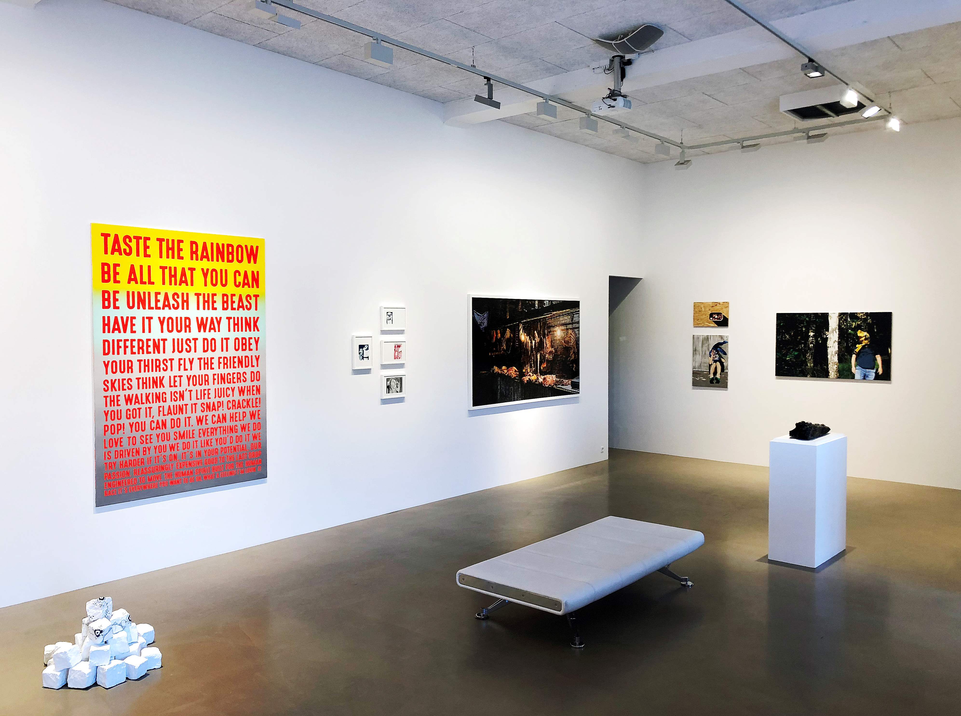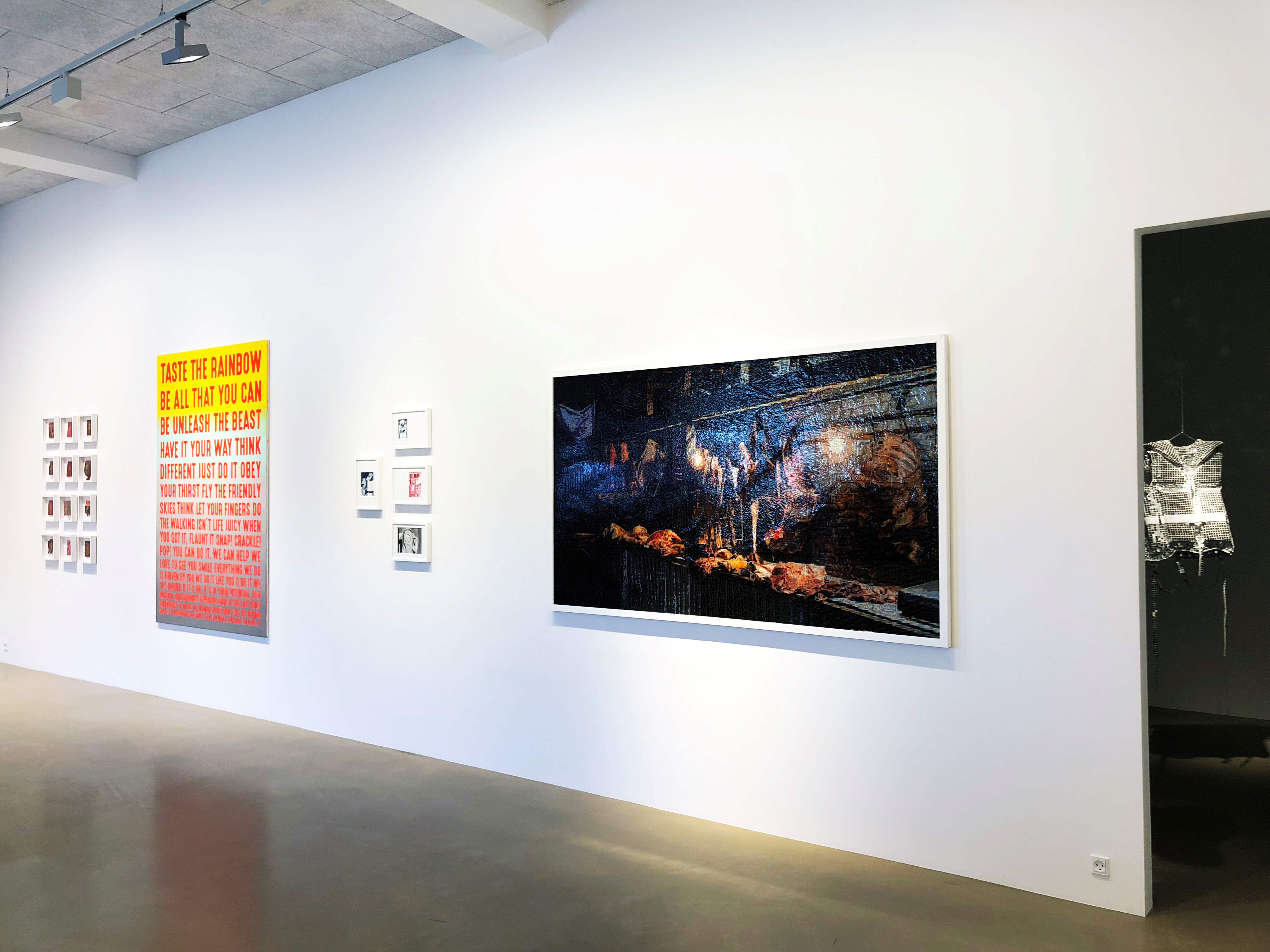 In Nadia Plesner’s new solo exhibition ‘Survival of the Fittest’, the physical and virtual room converge and invite us into Plesner’s captivating pixilated universe of painting, drawing, sculpture and art installation which in unison refer to survival of the fittest in the digital food chain of social media.
