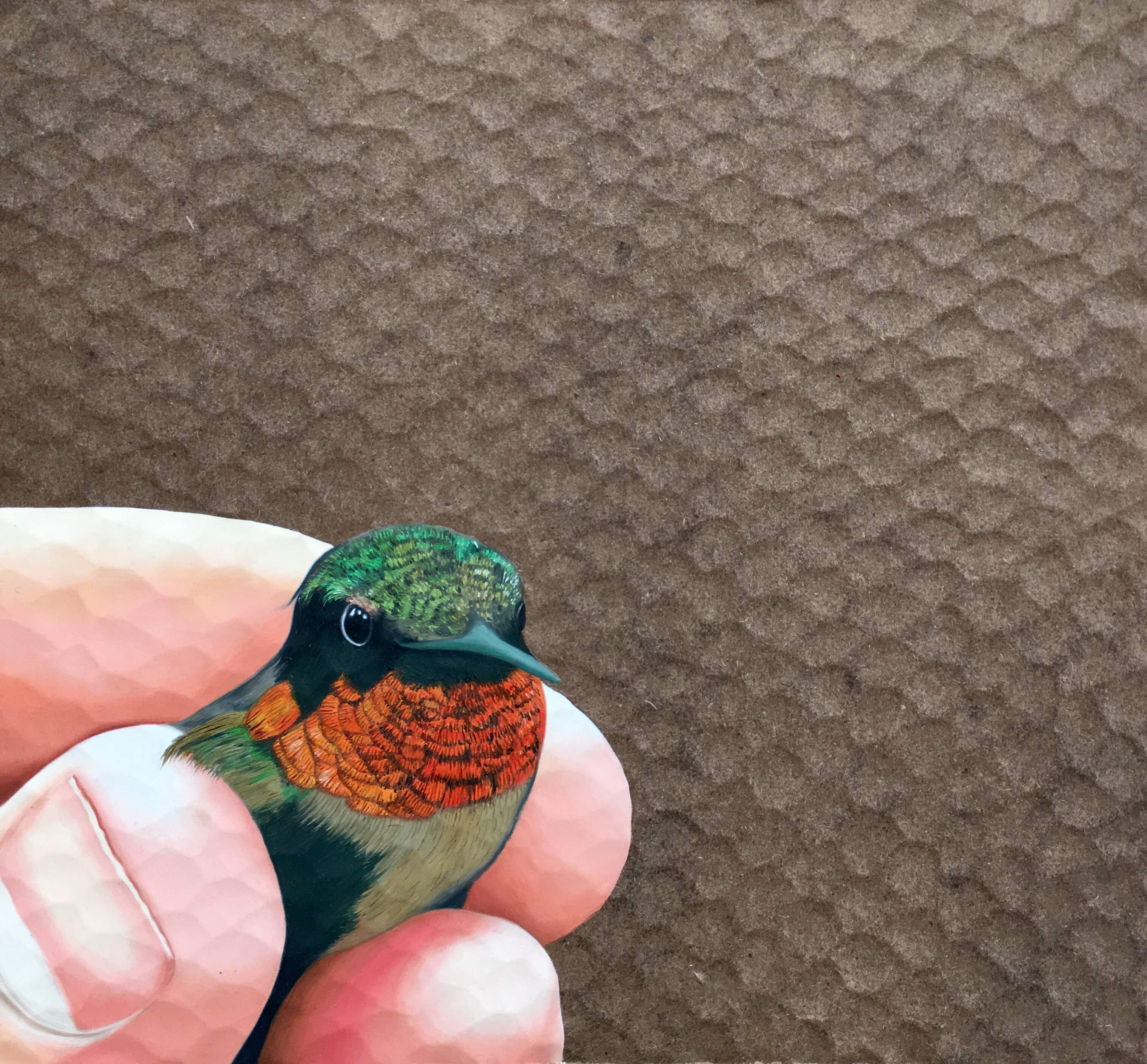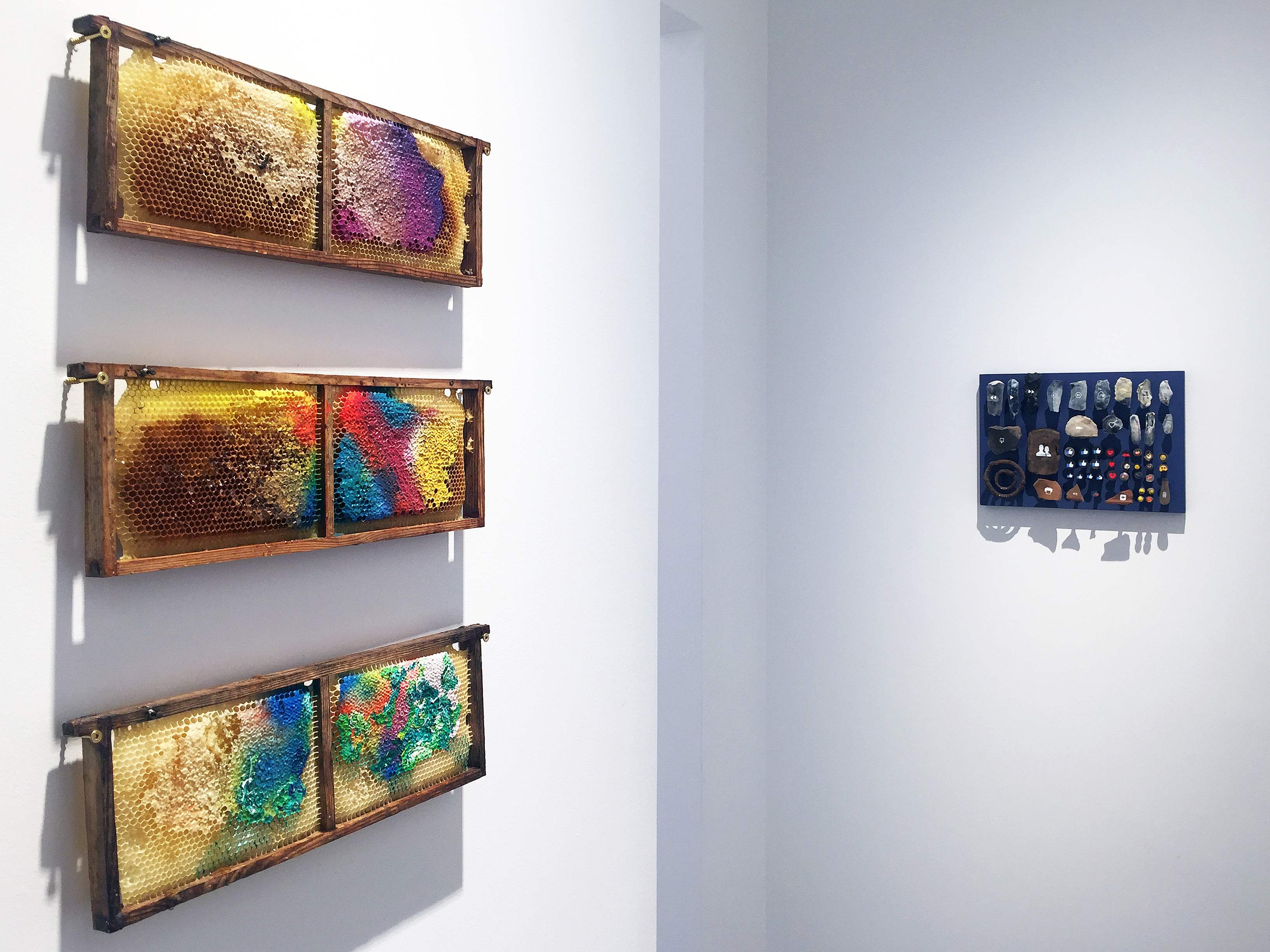 For ‘Survival of the Fittest’ Plesner has created a number of new works in direct dialogue between reality and the digital world. The contrast between the physical work of her artistic craft and the pixilated effect of the photos converted into pearl mosaics of wondrous rich detailing, allures the viewer to experience the work at various distances. Viewed from a distance the images stand sharply. But as we move closer to the surface, the eye no longer read the pearls as pixels as they efface close-up, and thus the image becomes abstract.