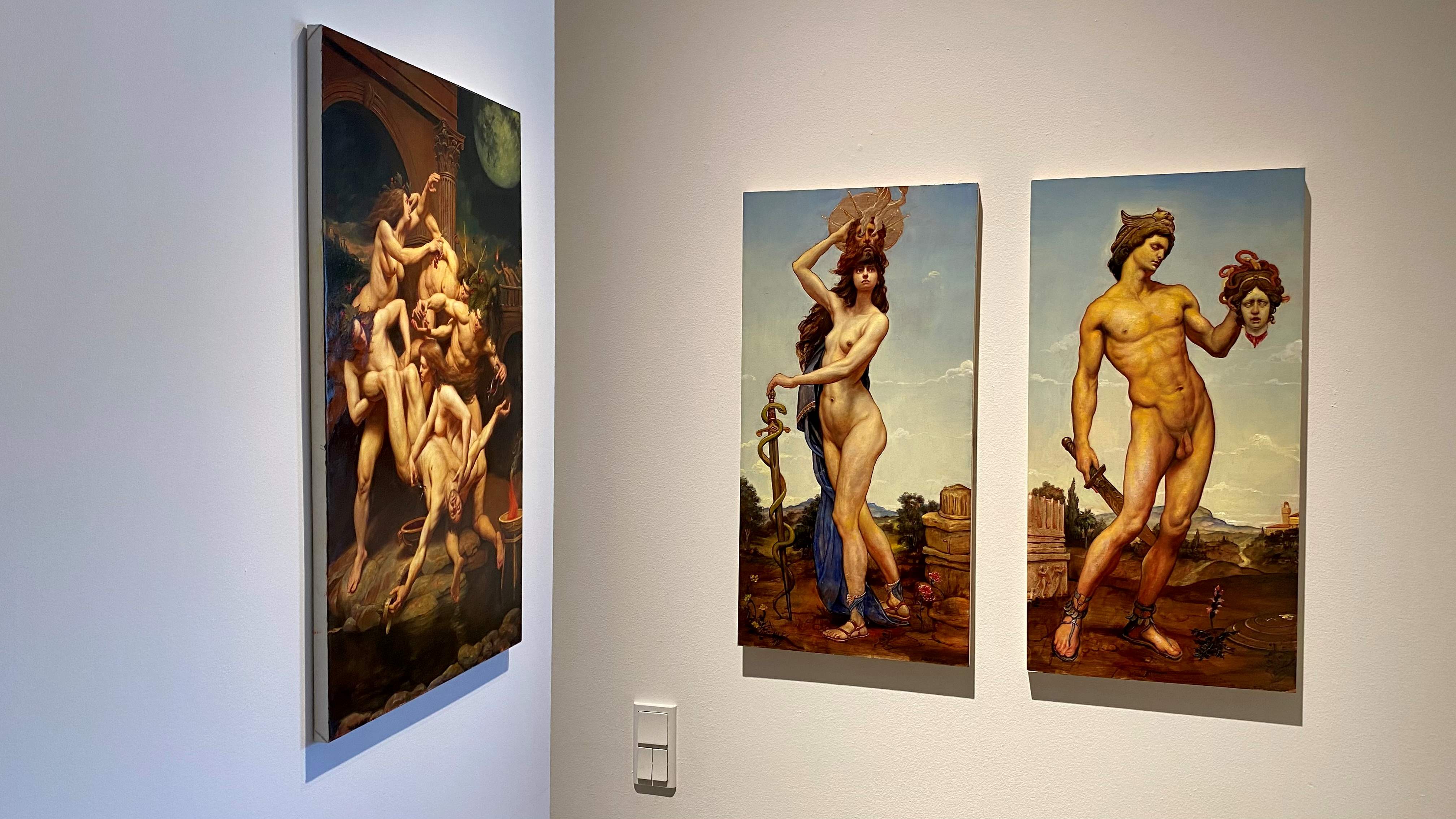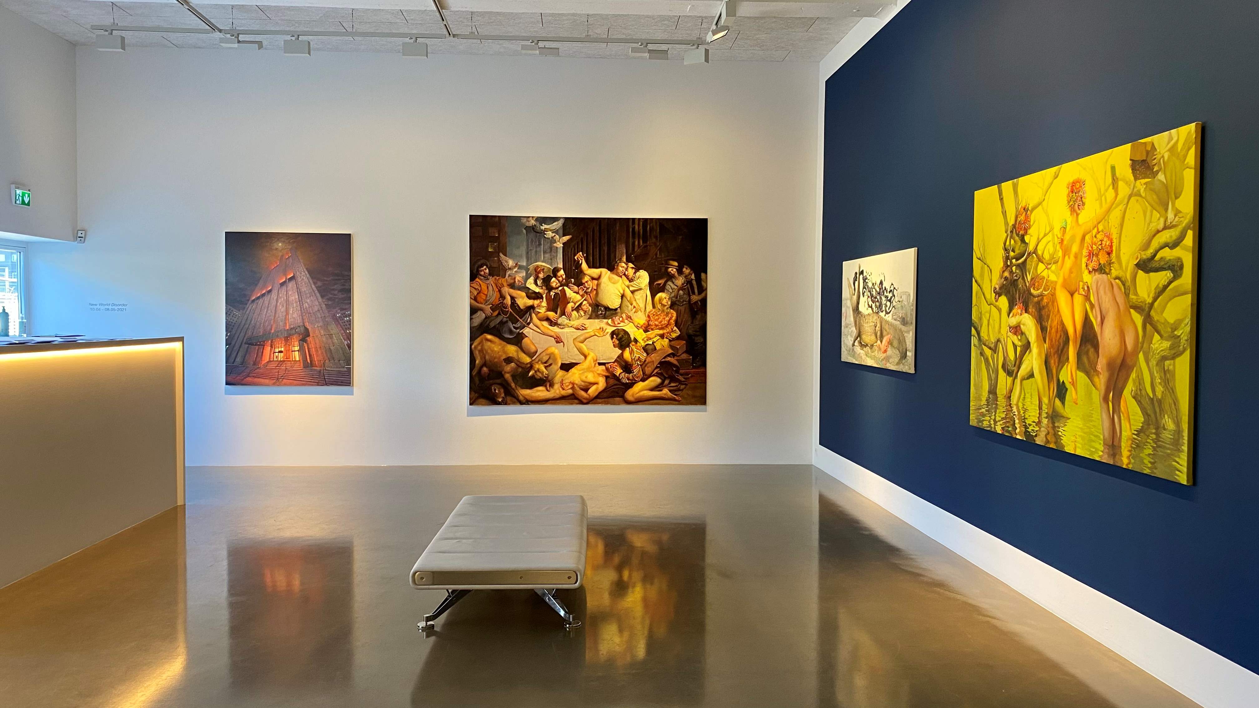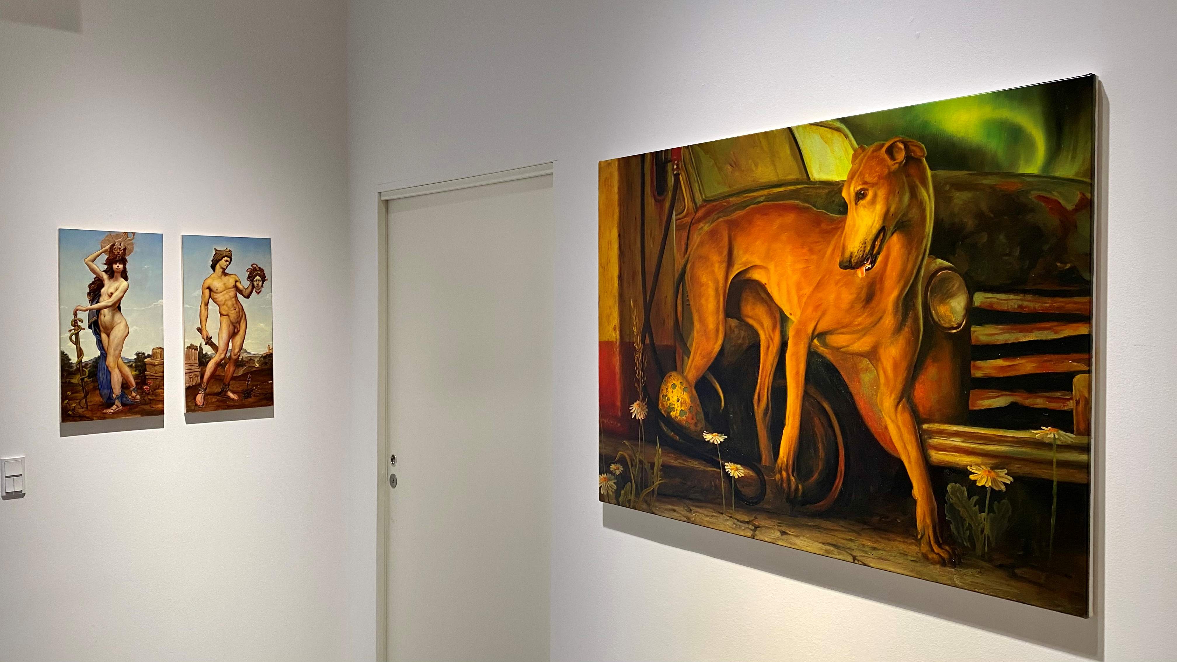The exhibition shows 13 oil paintings on canvas, linen and panels