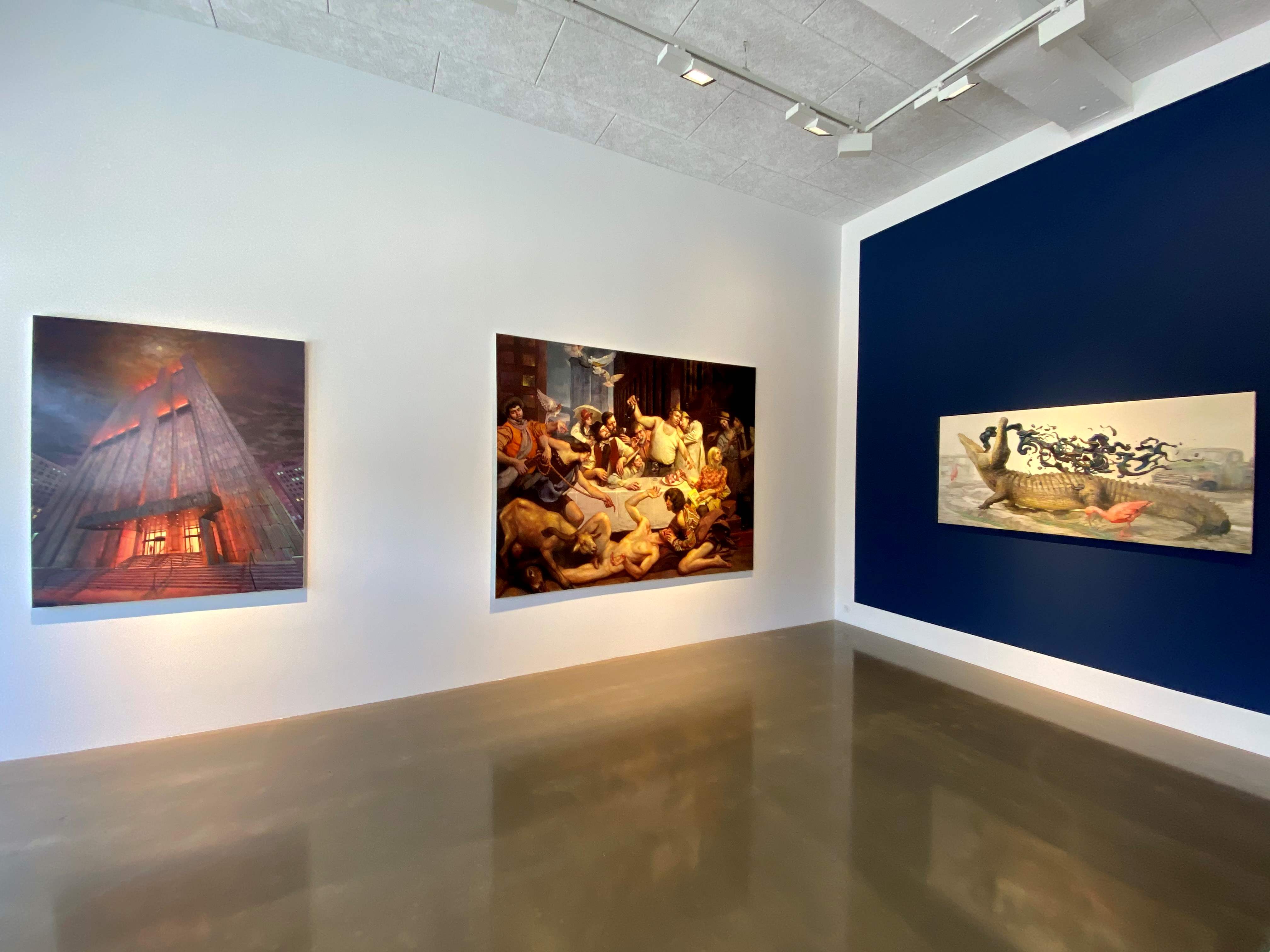 Adam Miller uses a historic perspective to find parallel stories and myths that reflect our current situation in a search for answers and understanding. Taylor Schultek investigates the values of communication and language that have become much more apparent after a period of intense division, and thirdly Martin Wittfooth, explores the intersection of the manmade and natural worlds, keenly brought to focus in the chaotic turmoil at the start of this third decade of the century.