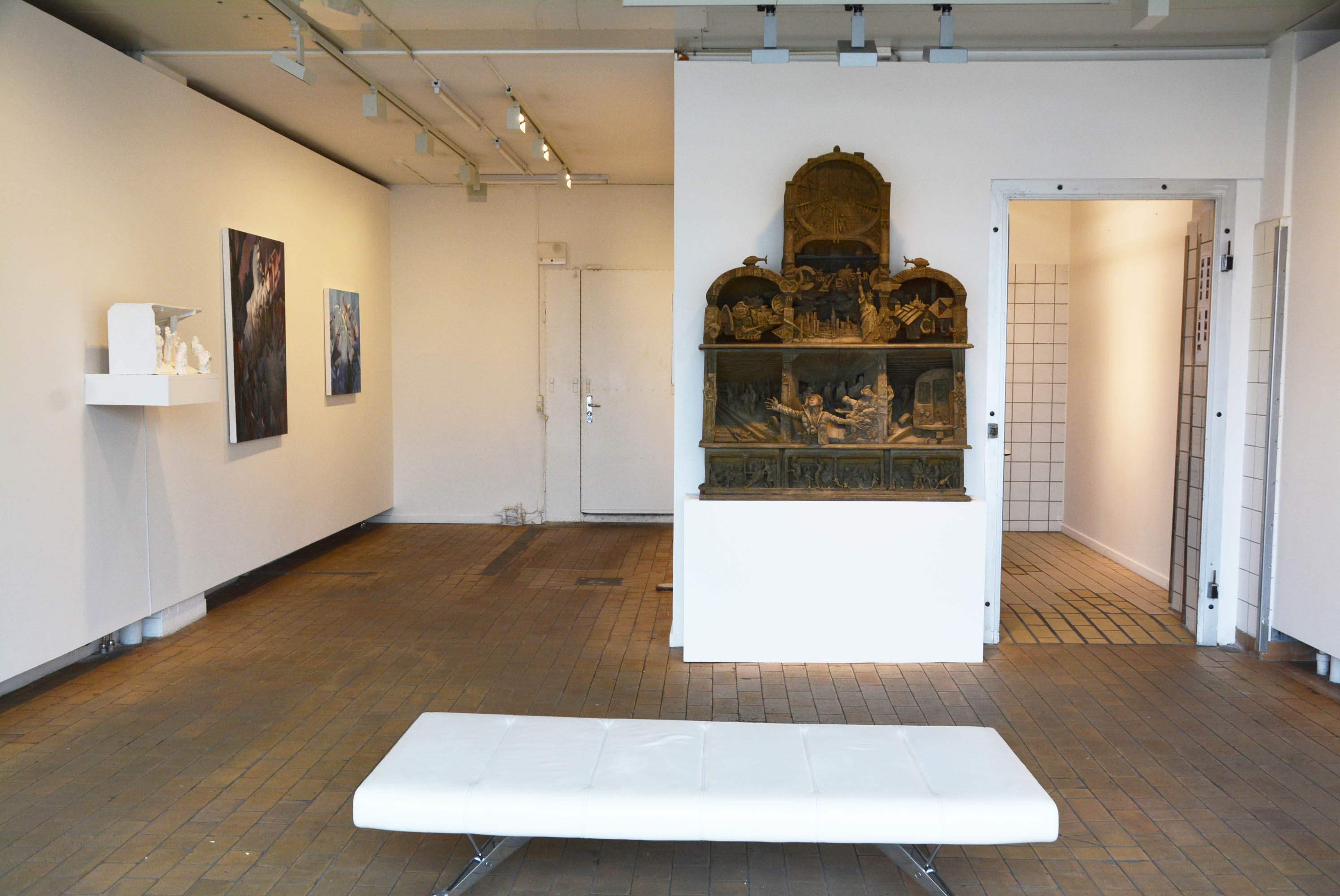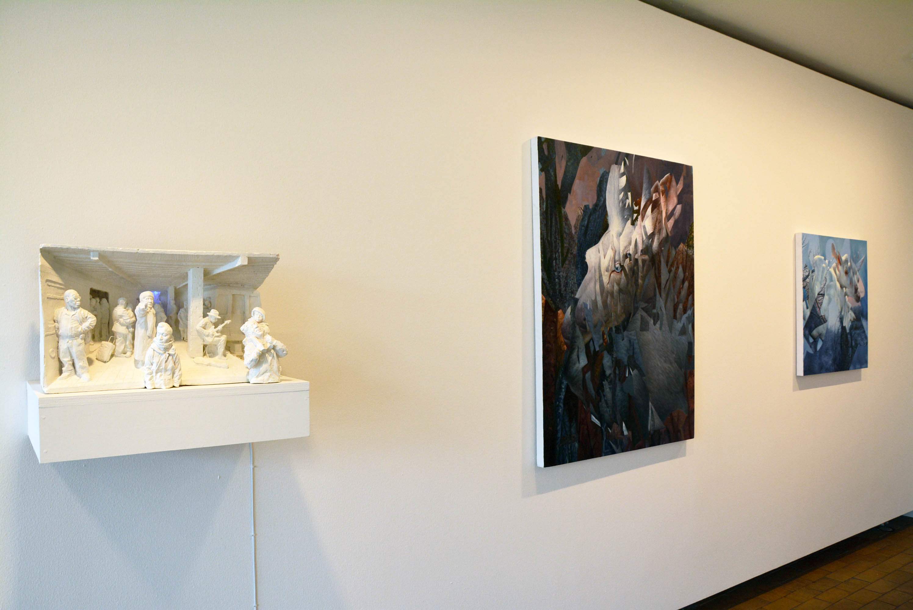 Udstillingen består af 12 oliemalerier og to skulpturelle værker.