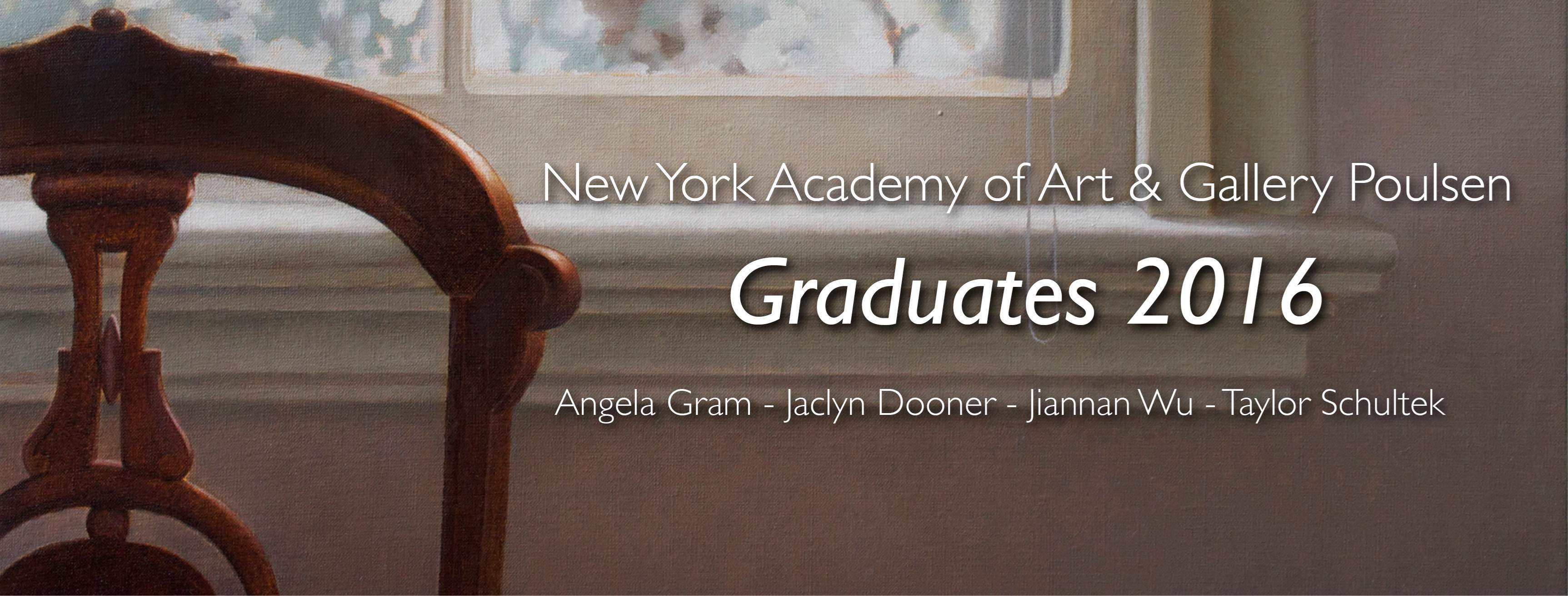 Med udstillingen ”Graduates 2016” giver vi et direkte indblik i, hvad der rører sig blandt de helt unge på den stærkt pulserende kunstscene i New York, når Dooner, Gram, Schultek og Wu indtager udstillingsrummet med skarpe, figurative perspektiver og øjensynlig teknisk snilde. De har formået at skabe fire unikke universer, der komplimenterer hinanden særdeles godt. På tværs af æstetisk tilgang og personlige udtryk opstår en række hemmelige rum i udstillingen, som publikum inviteres til at snige sig ind i. Døre, vinduer, gange, tomme gader og fragmenterede virkeligheder skaber tilsammen en tillokkende mystik, der tvinger os til at stille spørgsmålstegn ved det umiddelbart genkendelige.
