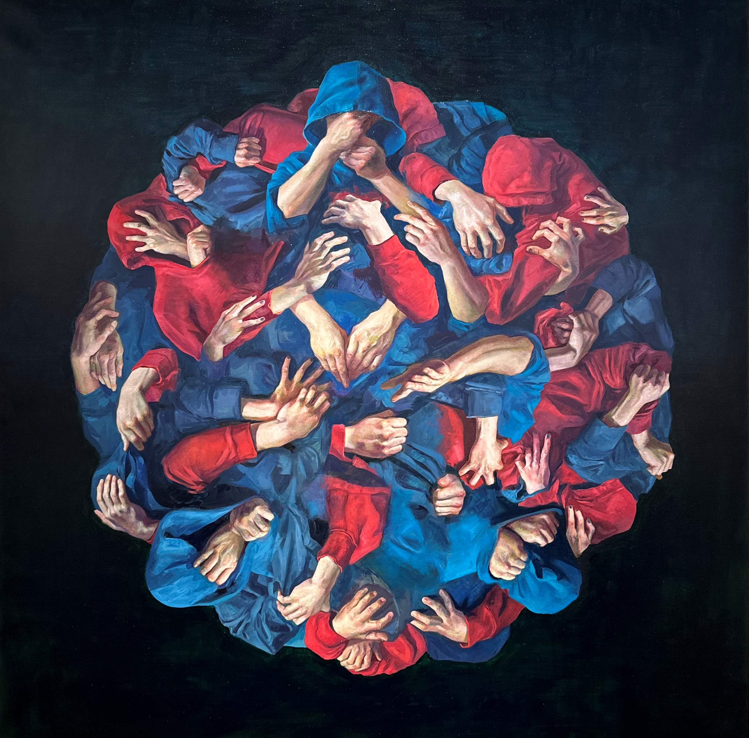 In German Tellez’s body of work, we are met with an interconnected wheel of carefully choreographed limbs grasping at one another, suggesting a common universal language that embeds itself in the human form. His introspective work of intricate interpretations of bodily shapes sparks an emotional and primal experience. Tellez seeks to create a sacred encounter with the viewer, examining the fundamental order that underlies both the artistic and spiritual experience. In these thought-provoking works, Tellez employs recurring images of the human body and complex balanced forms to explore the purported innate qualities of humanity, delving into the relationship and tension that exists between topics such as pleasure and pain or the rational versus the instinctual. With his work, Tellez wishes to encourage viewers to contemplate the mysteries of human experience, the cosmos and our role within the universe.
