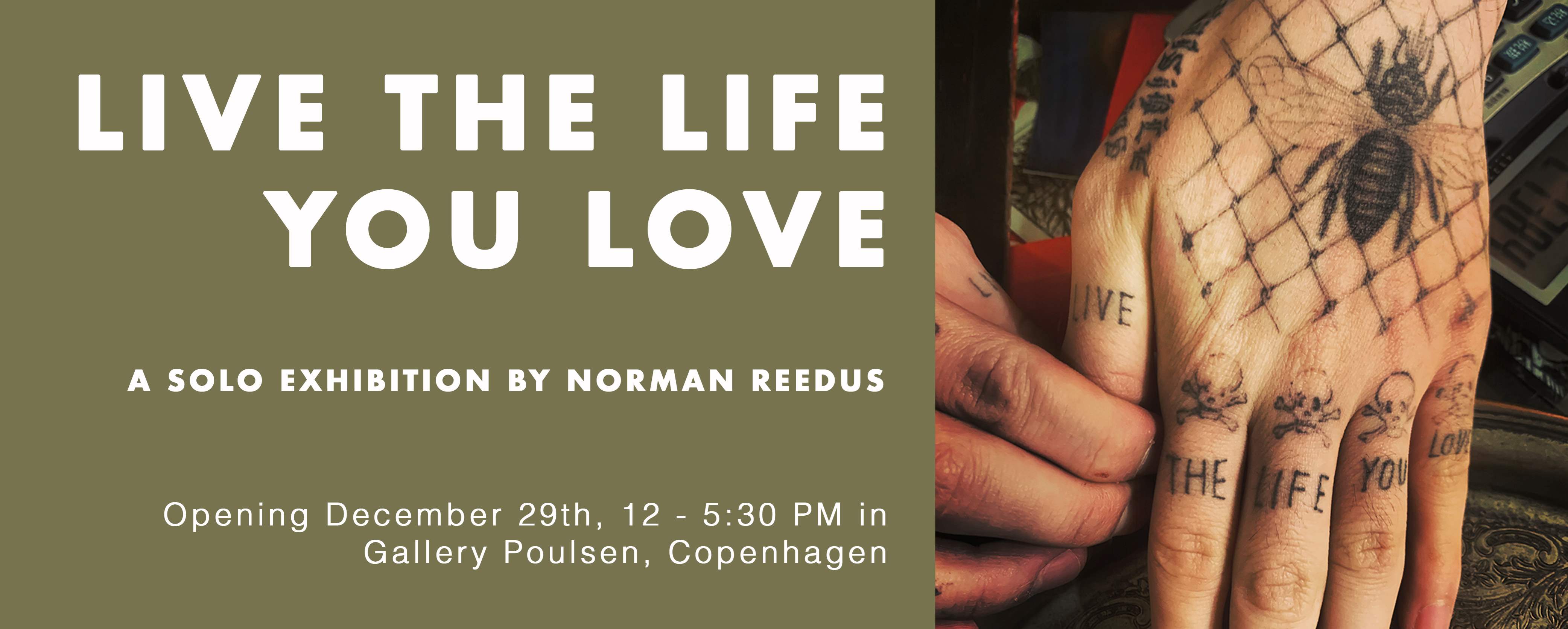 We met Norman Reedus at Art Basel Miami 2019 at a New York Academy of Art dinner party after being brought together by mutual acquaintances. Norman was in Miami for the opening of his solo exhibition, and he invited us to the block party the following day. In best Gallery Poulsen fashion we didn’t waste the time and arranged a Norman Reedus solo exhibition in Copenhagen right then and there. Therefore, it is with great pleasure we now invite you to “Live the Life You Love” – A Solo Exhibition by Norman Reedus, opening December 29.