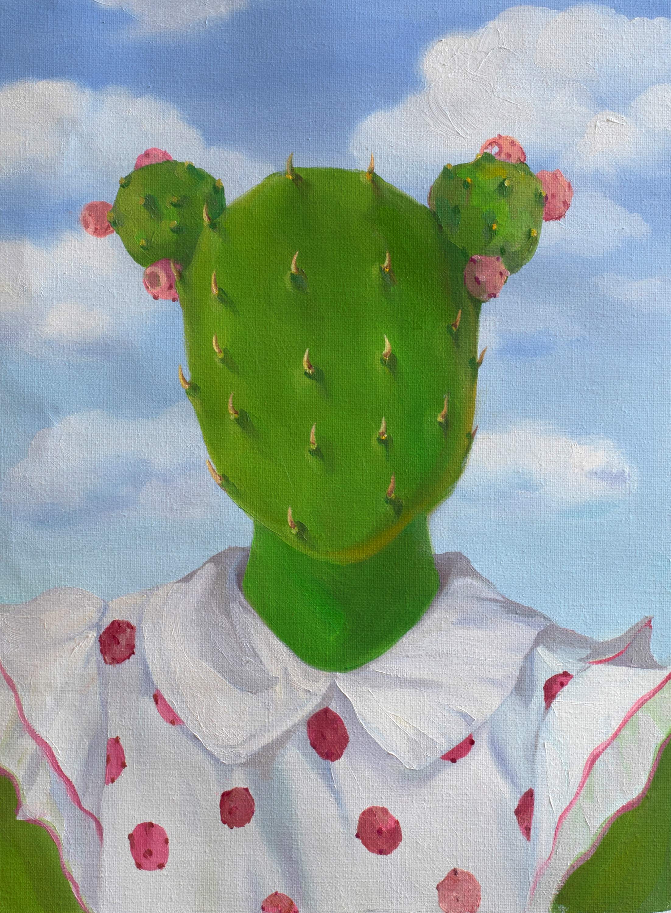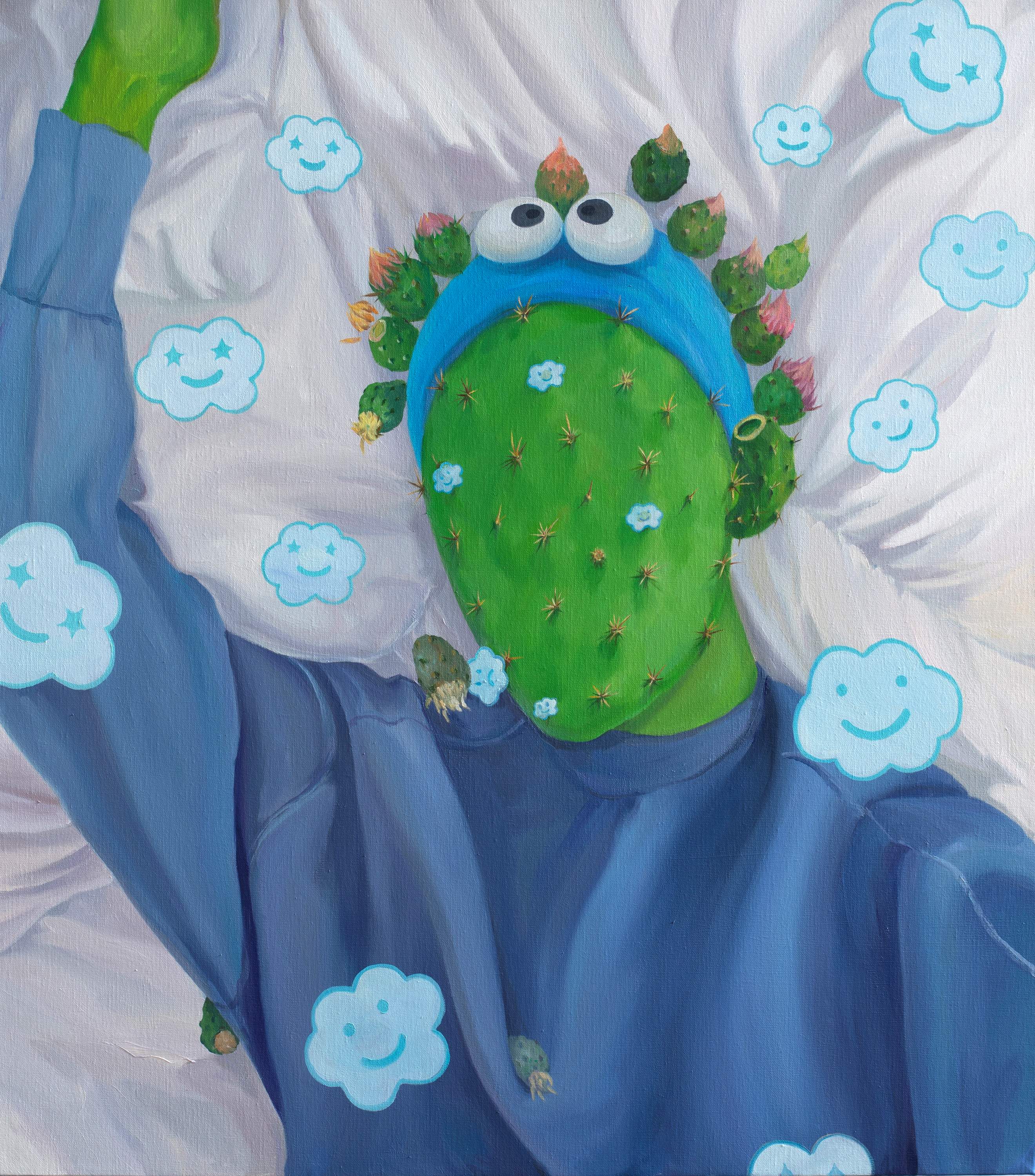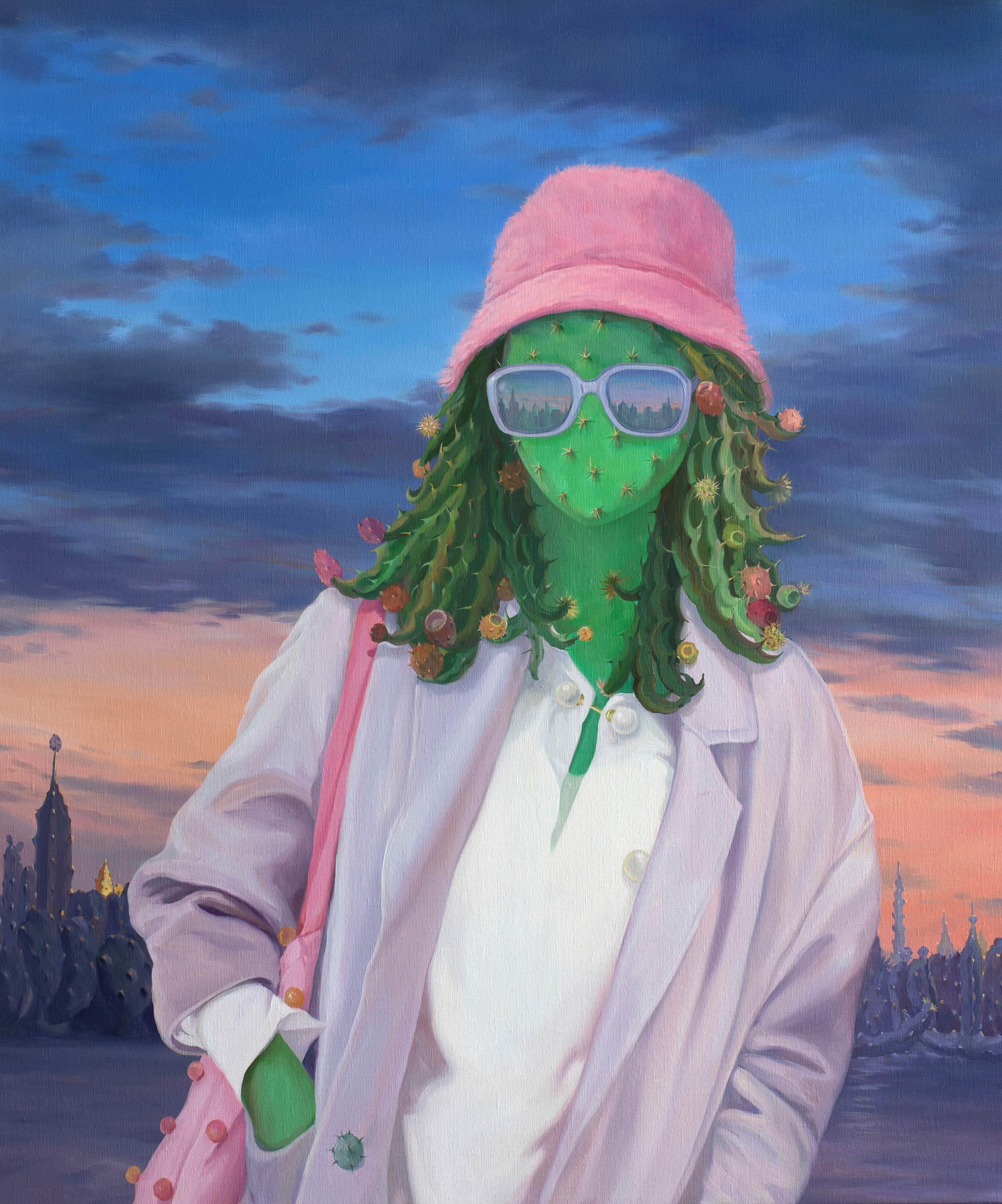 Whereas the focus of Jingyi Wang’s previous works acted as a lonely portrayal of humankind’s changed relationship with nature, due to a shift in ideals and ways of living in the wake of the pandemic, the new presentation uses her recognizable cactus portraits to convey intimate interpersonal relationships where loneliness is deliberately absent. Instead, the cactus is used as a vehicle to examine our everyday lives and to convey strength, independence, warmth, and care. Qualities that characterize Wang’s relationships with her friends and family. Hereby, the exhibition adopts a new focus that is based on an embodiment of Wang’s internal, and often subconscious, contemplations.