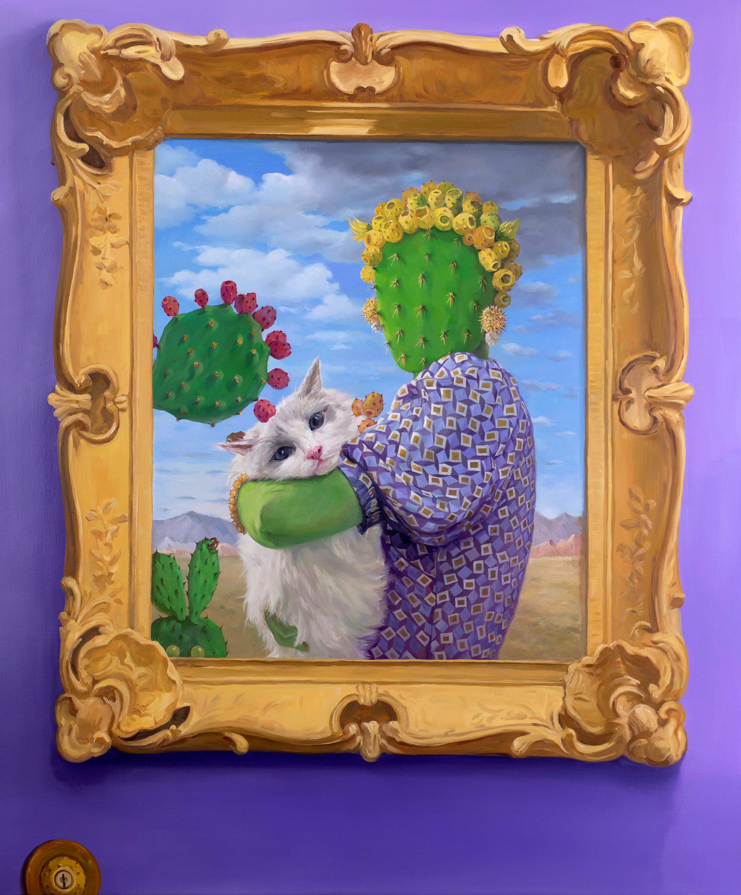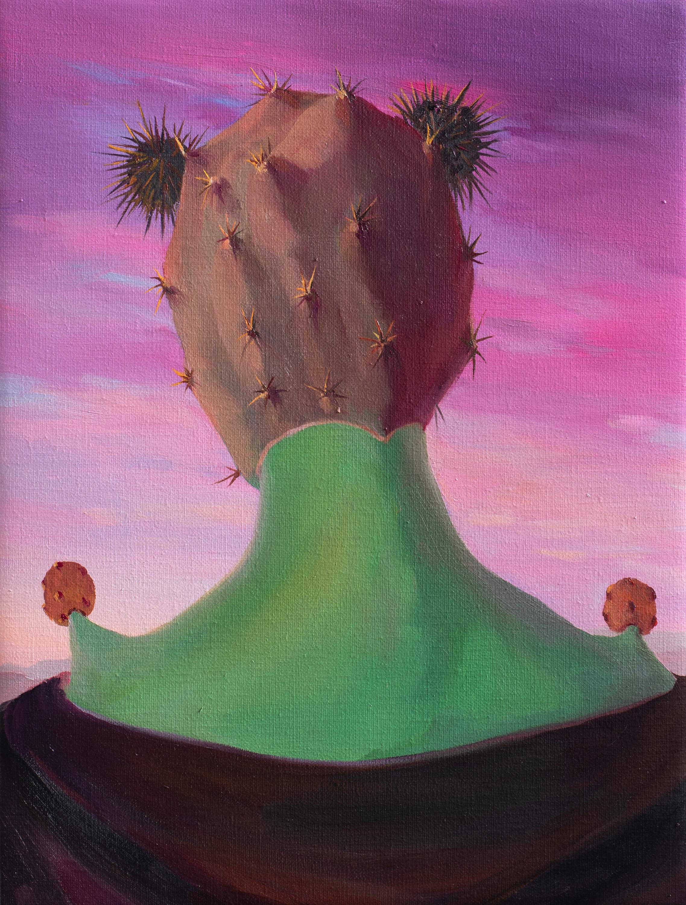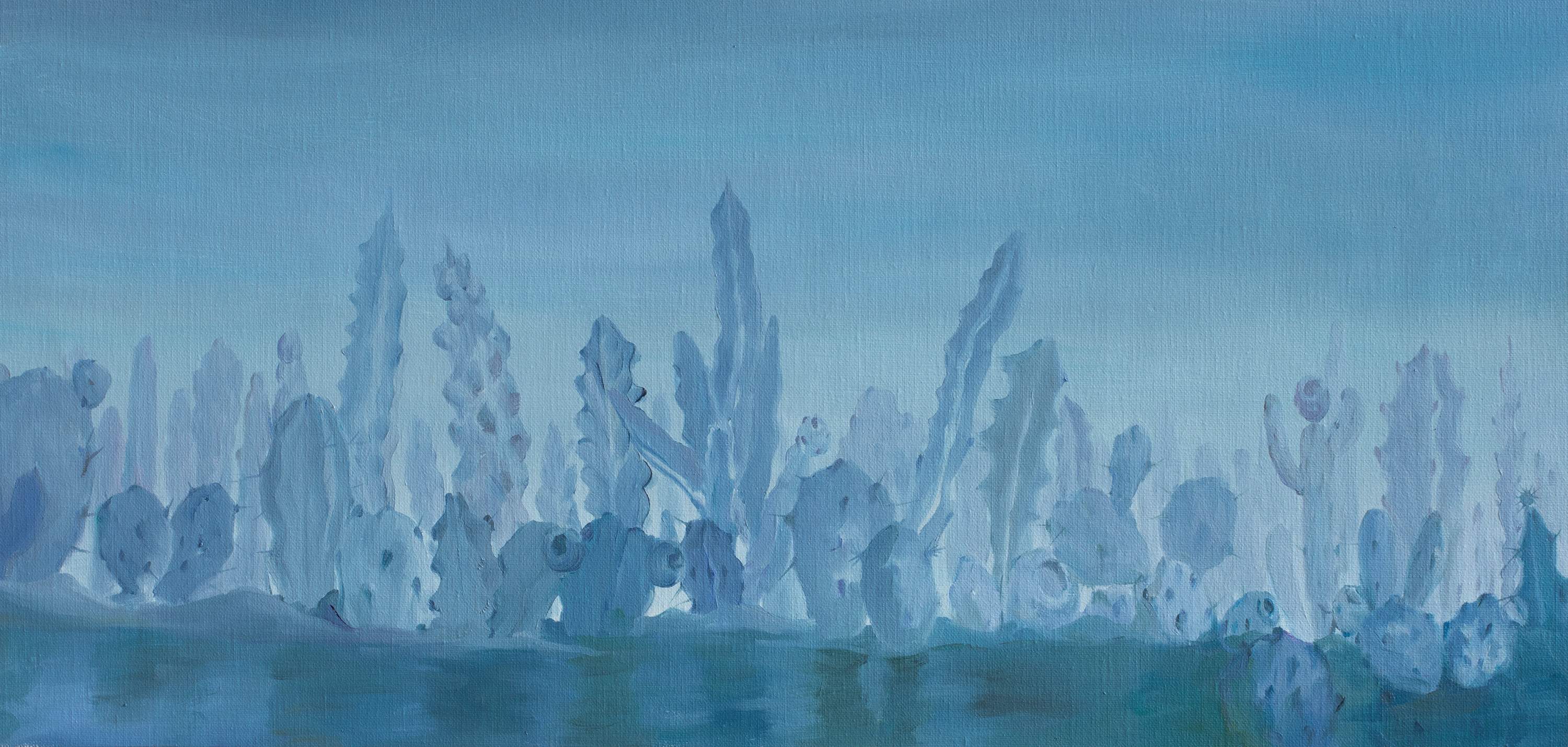 Whereas the focus of Jingyi Wang’s previous works acted as a lonely portrayal of humankind’s changed relationship with nature, due to a shift in ideals and ways of living in the wake of the pandemic, the new presentation uses her recognizable cactus portraits to convey intimate interpersonal relationships where loneliness is deliberately absent. Instead, the cactus is used as a vehicle to examine our everyday lives and to convey strength, independence, warmth, and care. Qualities that characterize Wang’s relationships with her friends and family. Hereby, the exhibition adopts a new focus that is based on an embodiment of Wang’s internal, and often subconscious, contemplations.