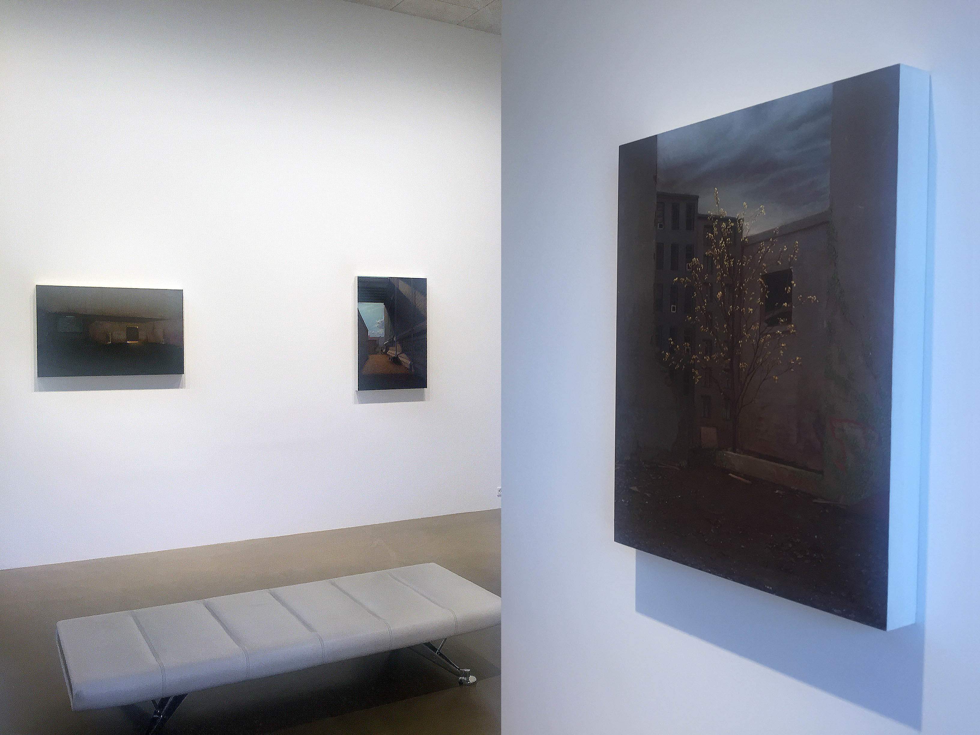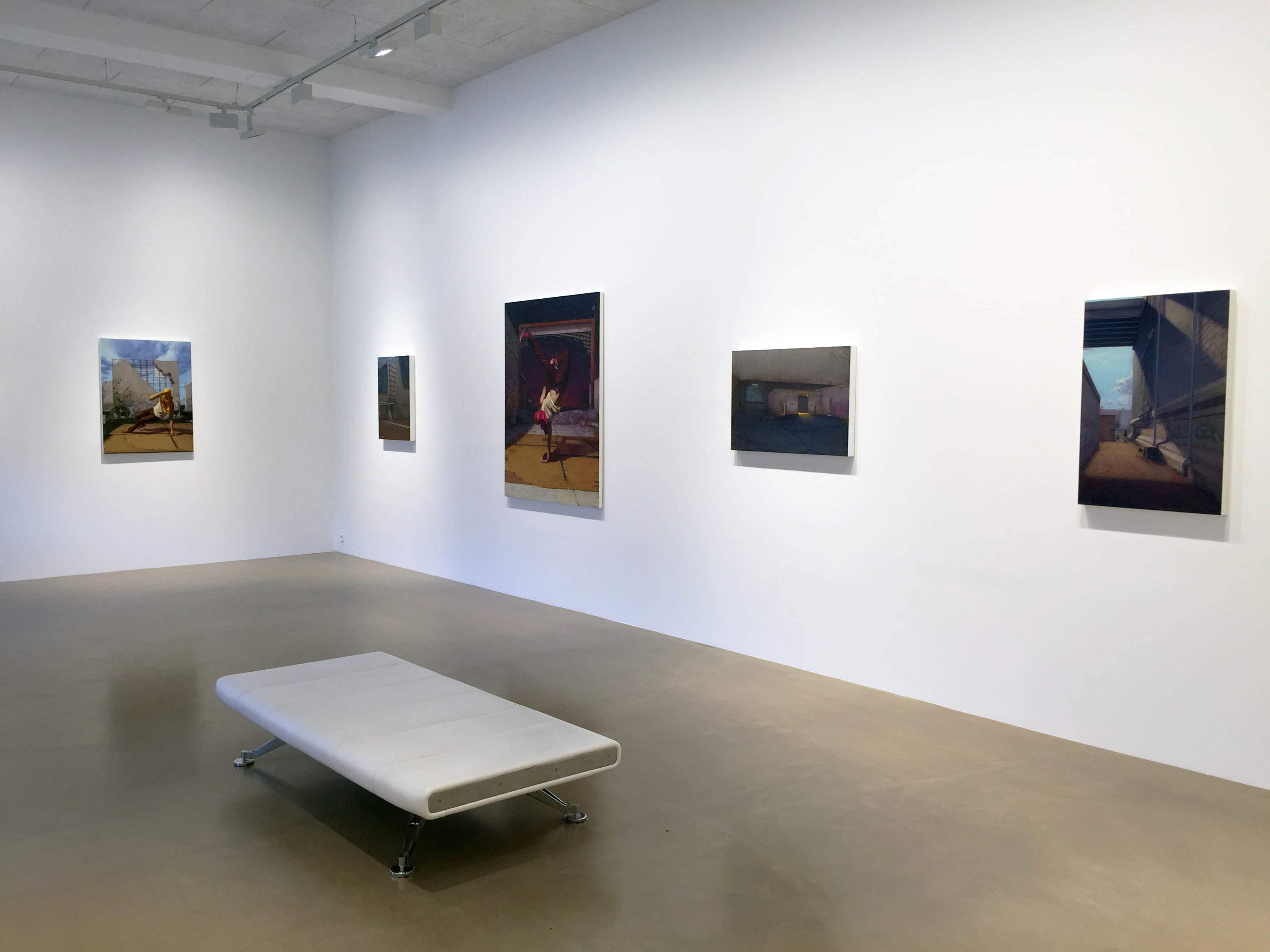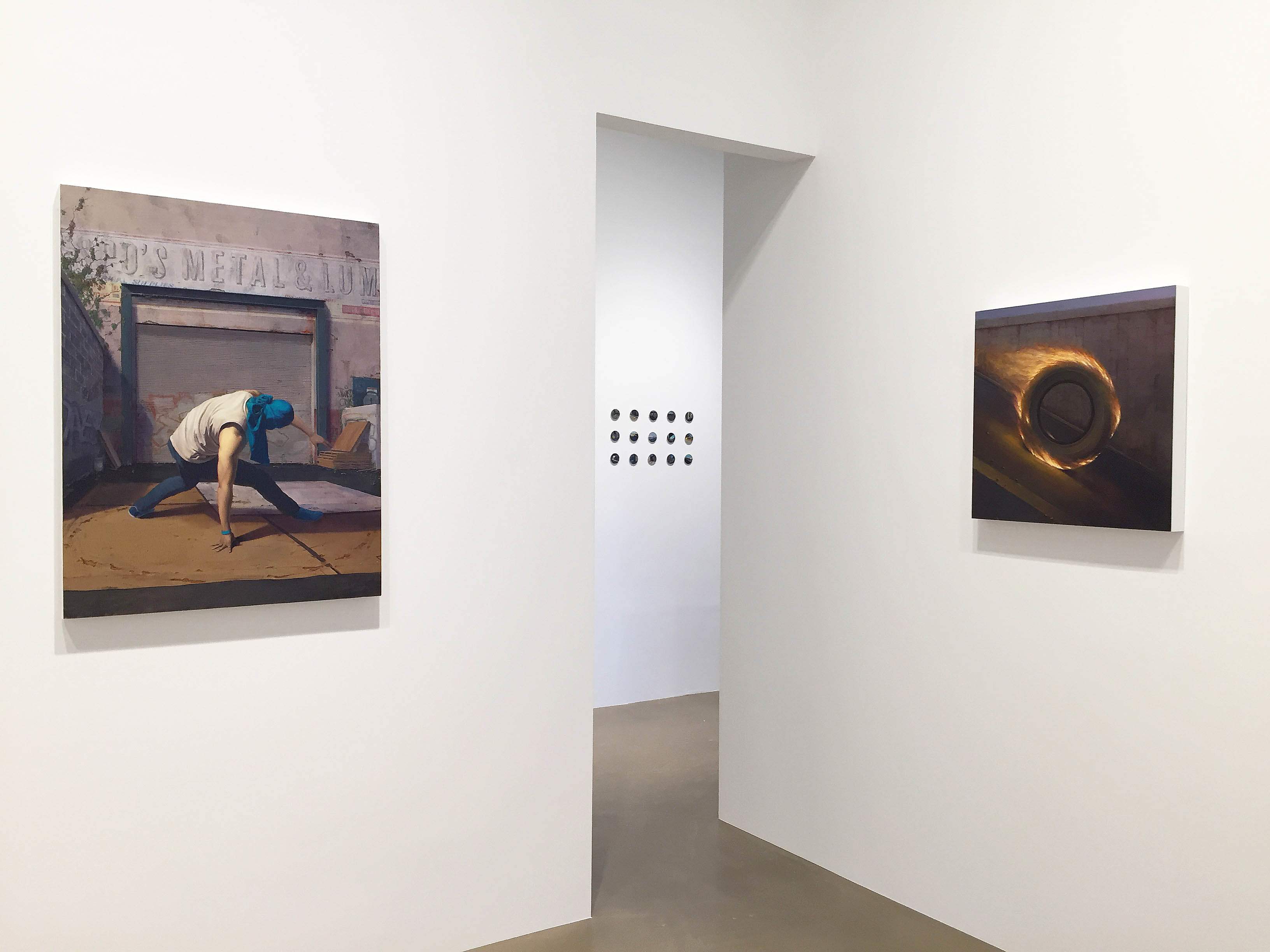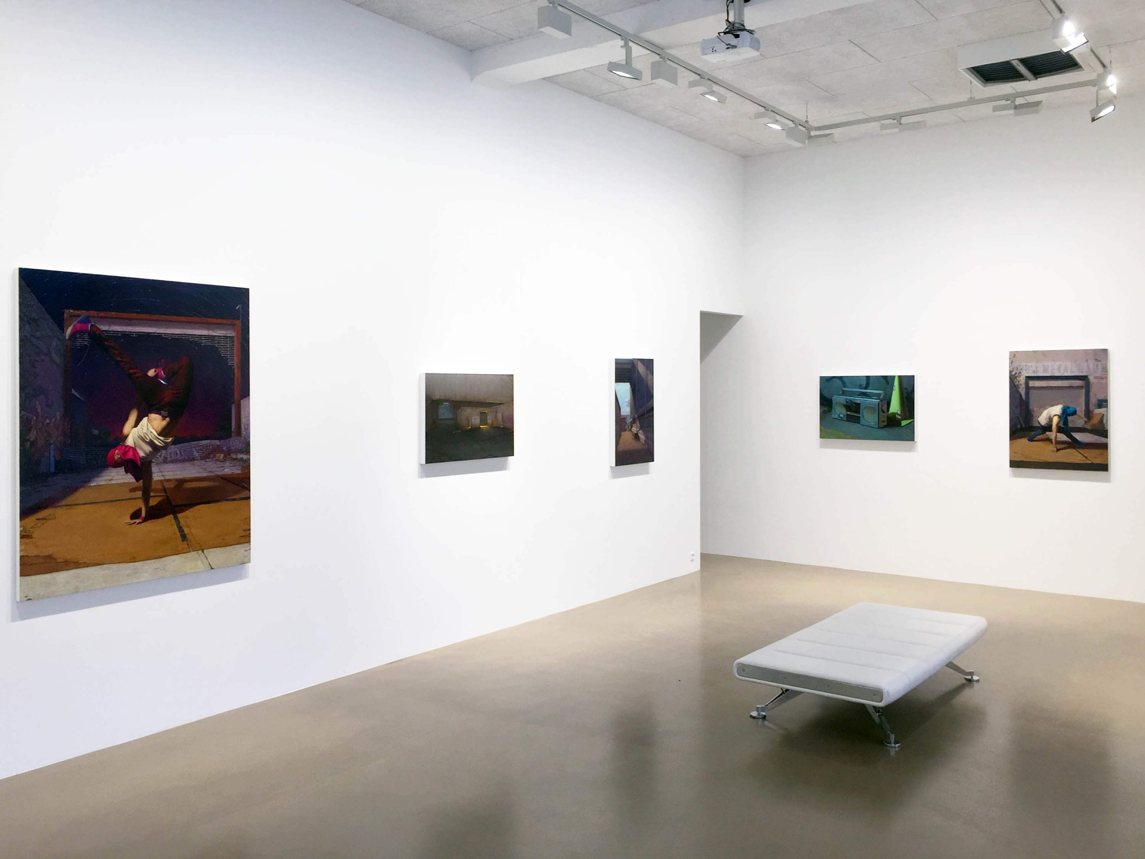We mark this final part of the year with an tremendously beautiful solo show, when we open the doors to Taylor Schultek's world of desolate alleys, dilapidated back yards and masked boys, vitally breakdancing across the canvas.