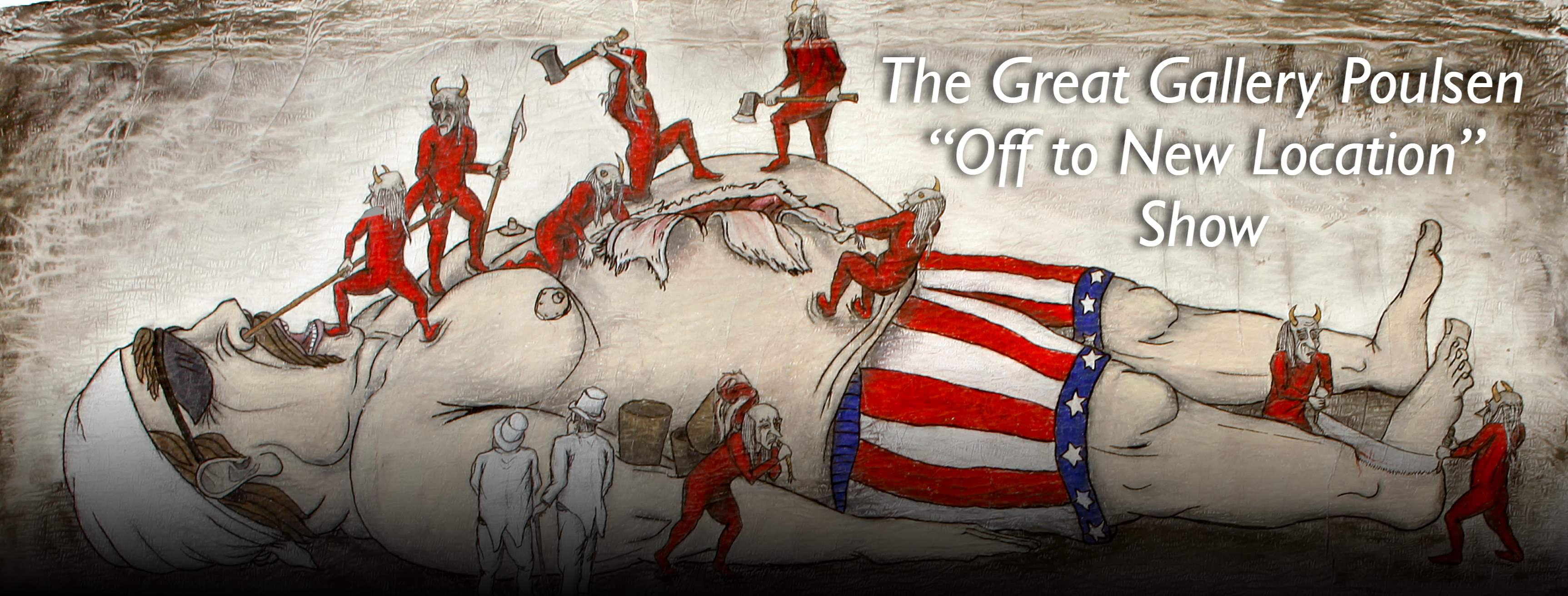 Med ”The Great Gallery Poulsen "Off to New Location" Show” markerer vi et komma i historien og tager hul på et nyt kapitel i helt nye omgivelser. Efter seks år i den hvide Kødby siger vi farvel til det klinisk hvide kølerum på Flæsketorvet og rykker ind i et brutalt autentisk slagterhus i Staldgade 30A i den brune Kødby, hvor historien driver ned ad væggene!