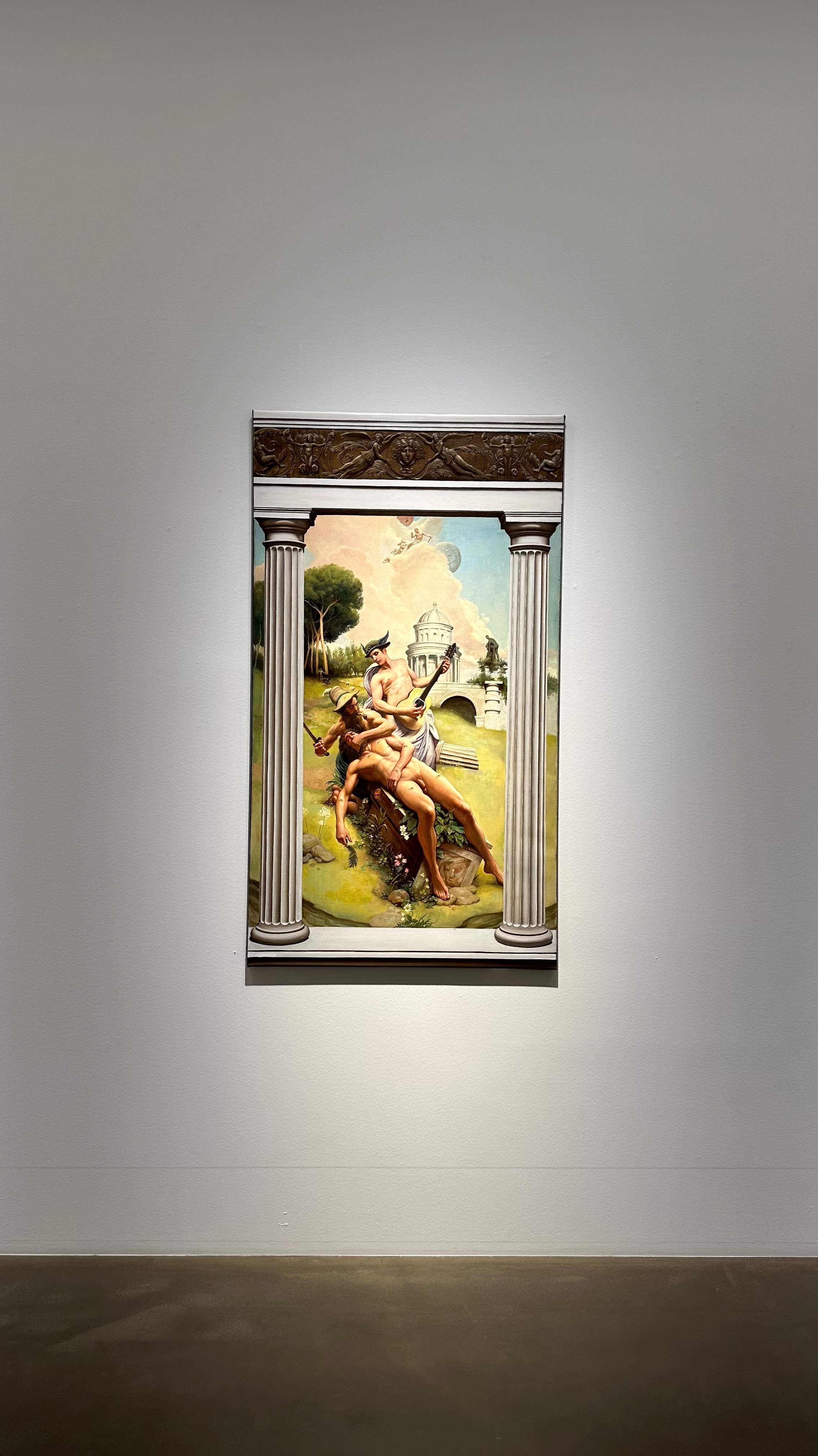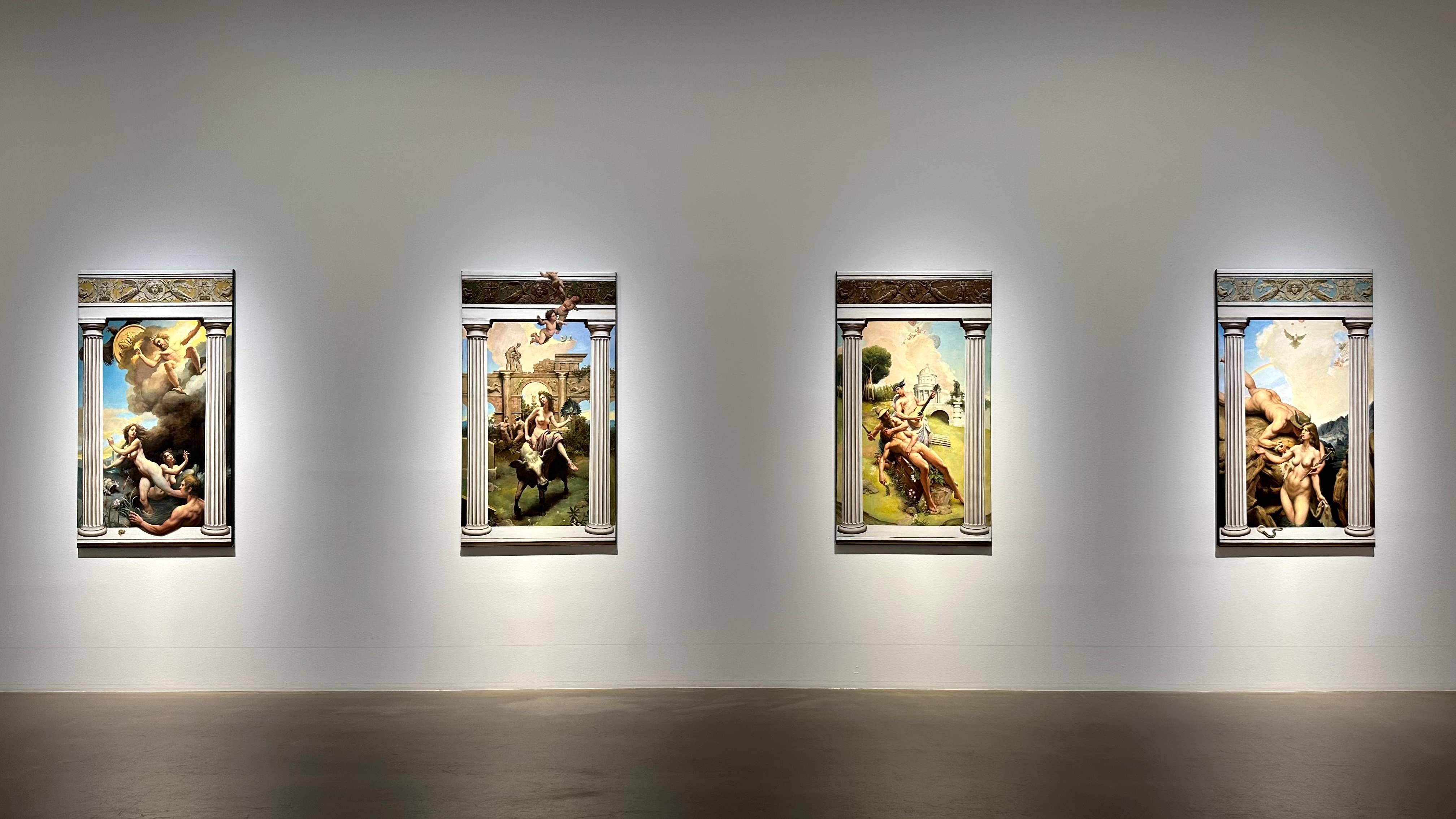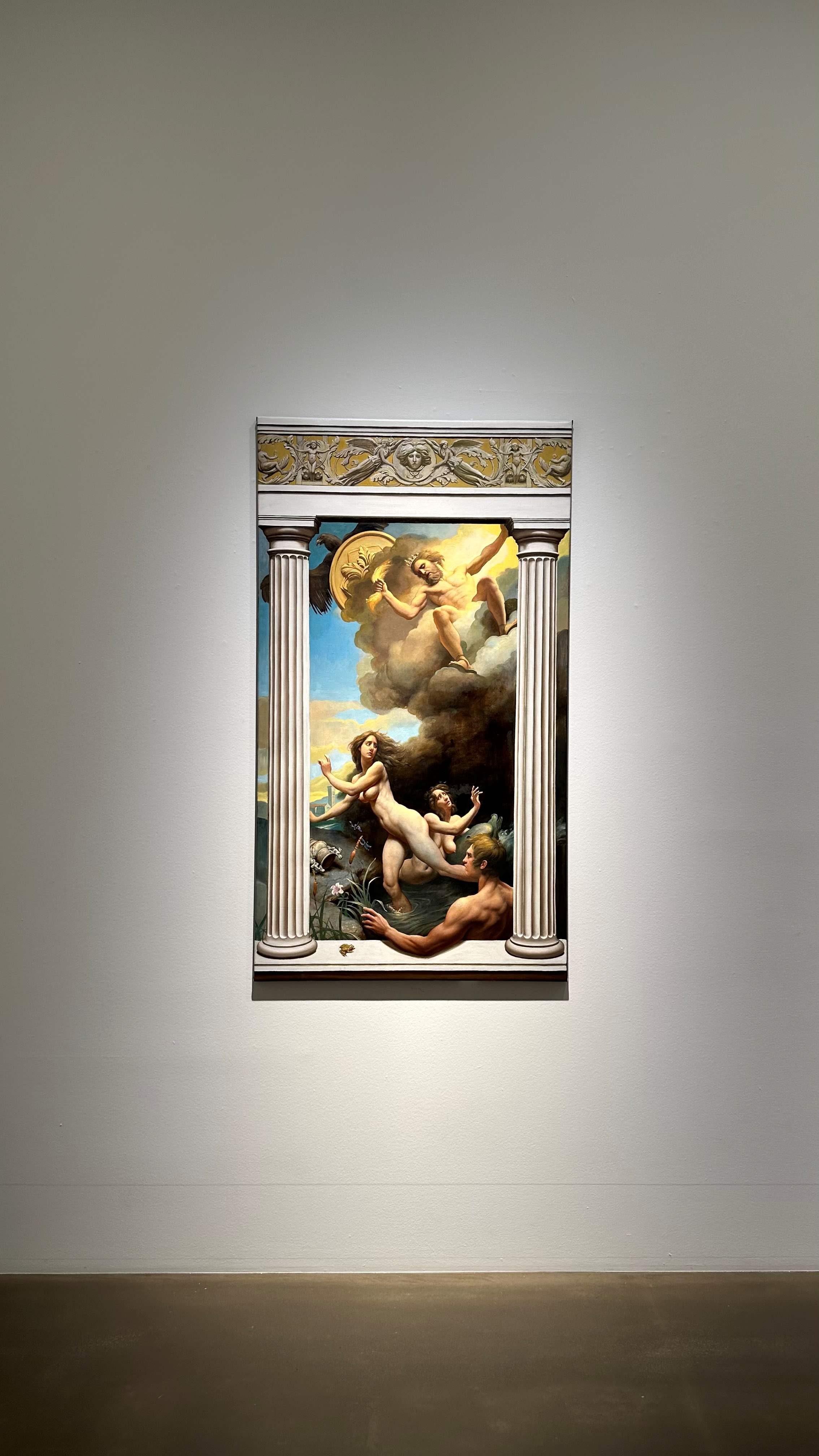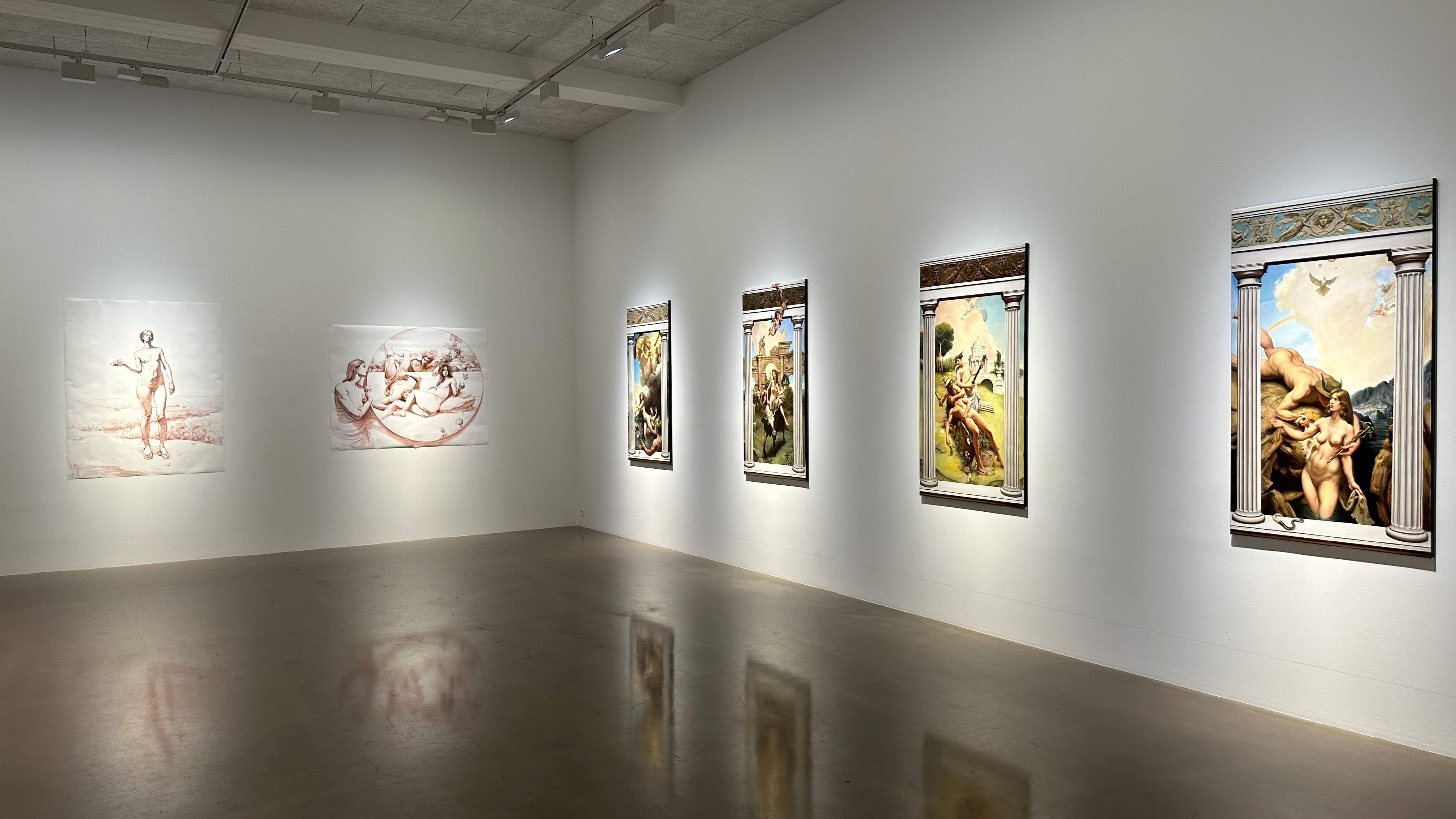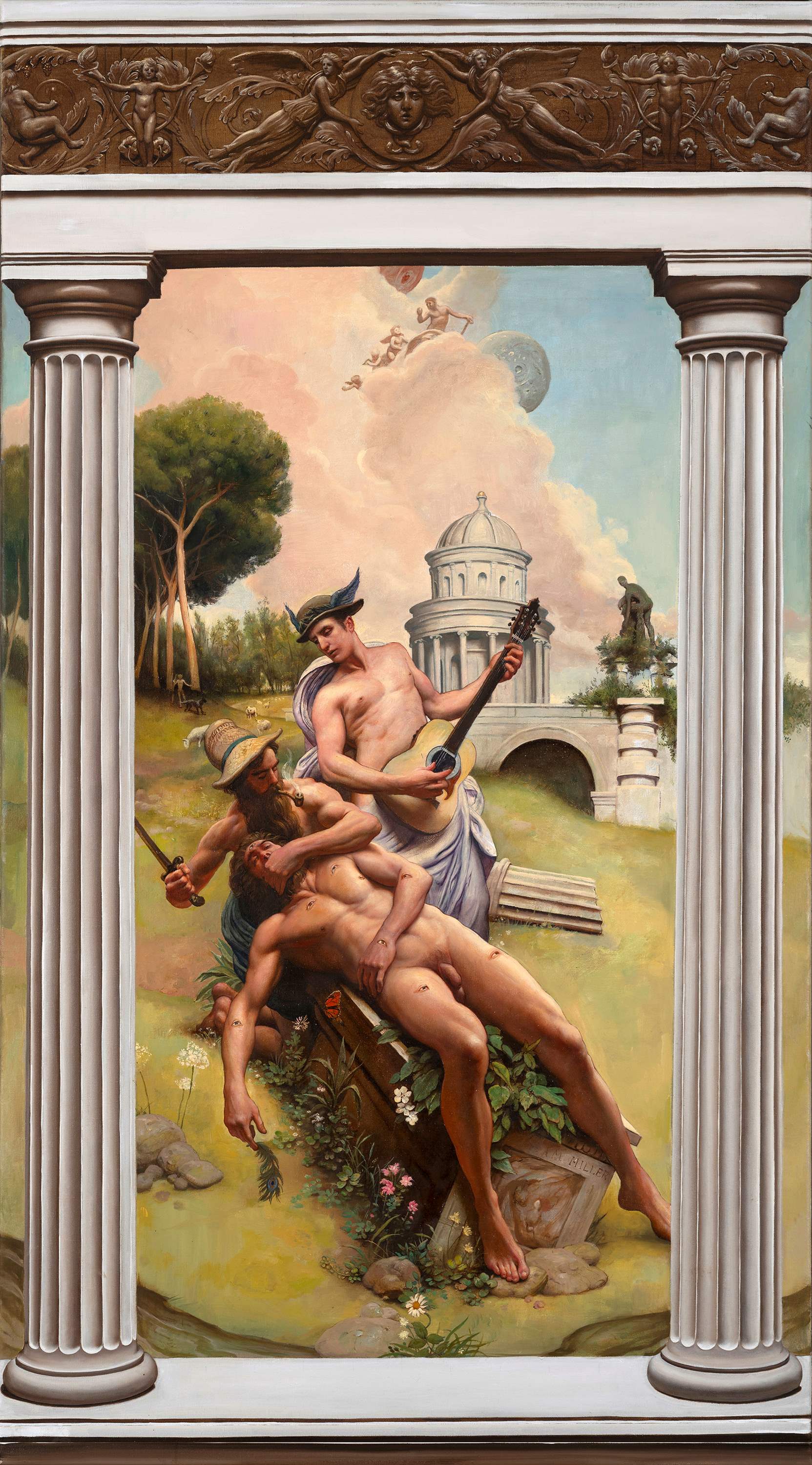 Adam Miller’s new solo exhibition is inspired by the poem Metamorphoses, written by the Roman poet Ovid, which is a compendium of stories of the gods and heroes of ancient Greece. It is playful and erotic and has inspired multiple great masterpieces of Western art. The Metamorphoses has been Miller's subject for the last four years, where he has been exploring the illusionistic mixture of architectural forms, sculpture, and realistic narrative scenes reminiscent of Italy's Renaissance palazzos and cathedrals.