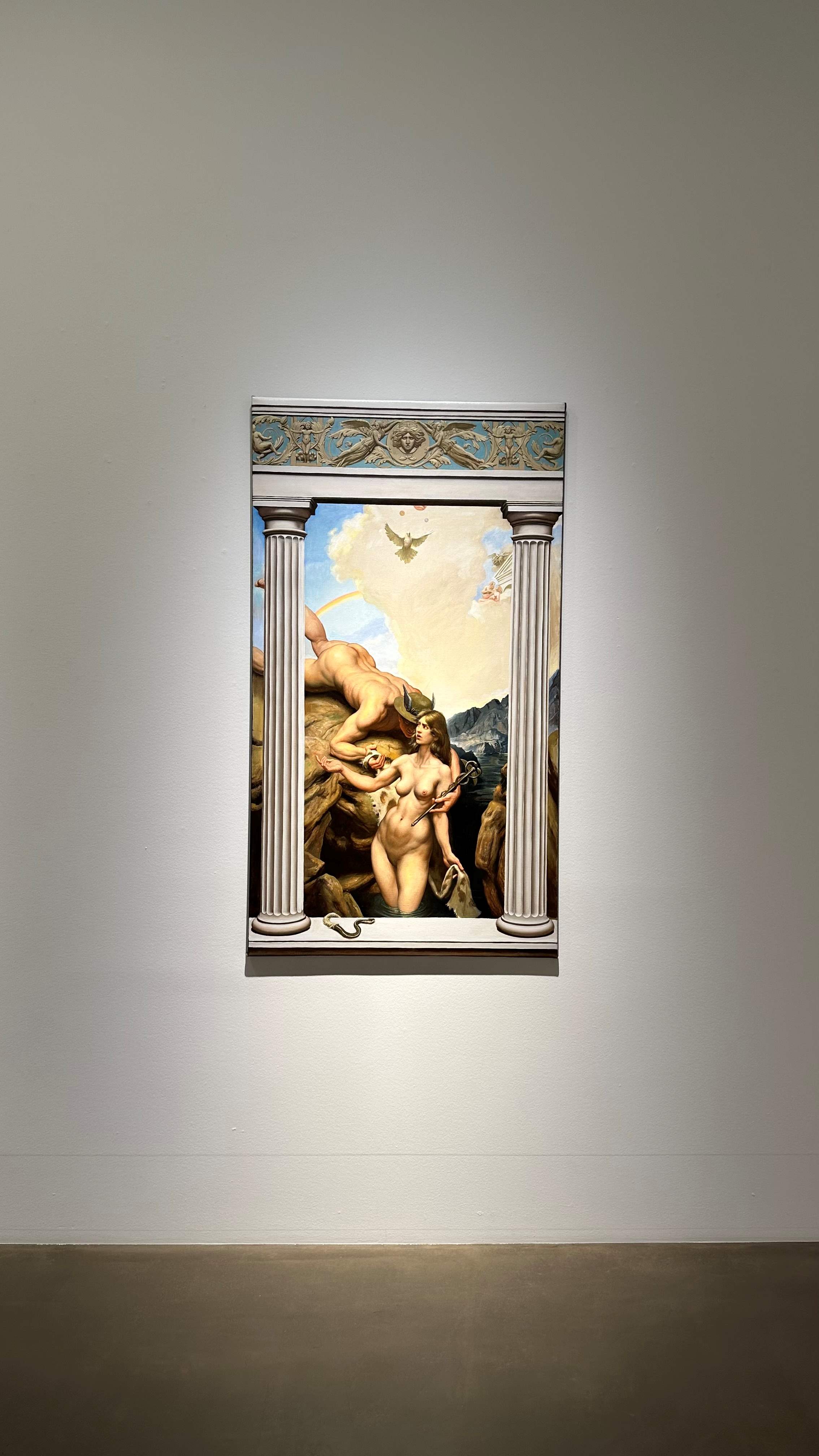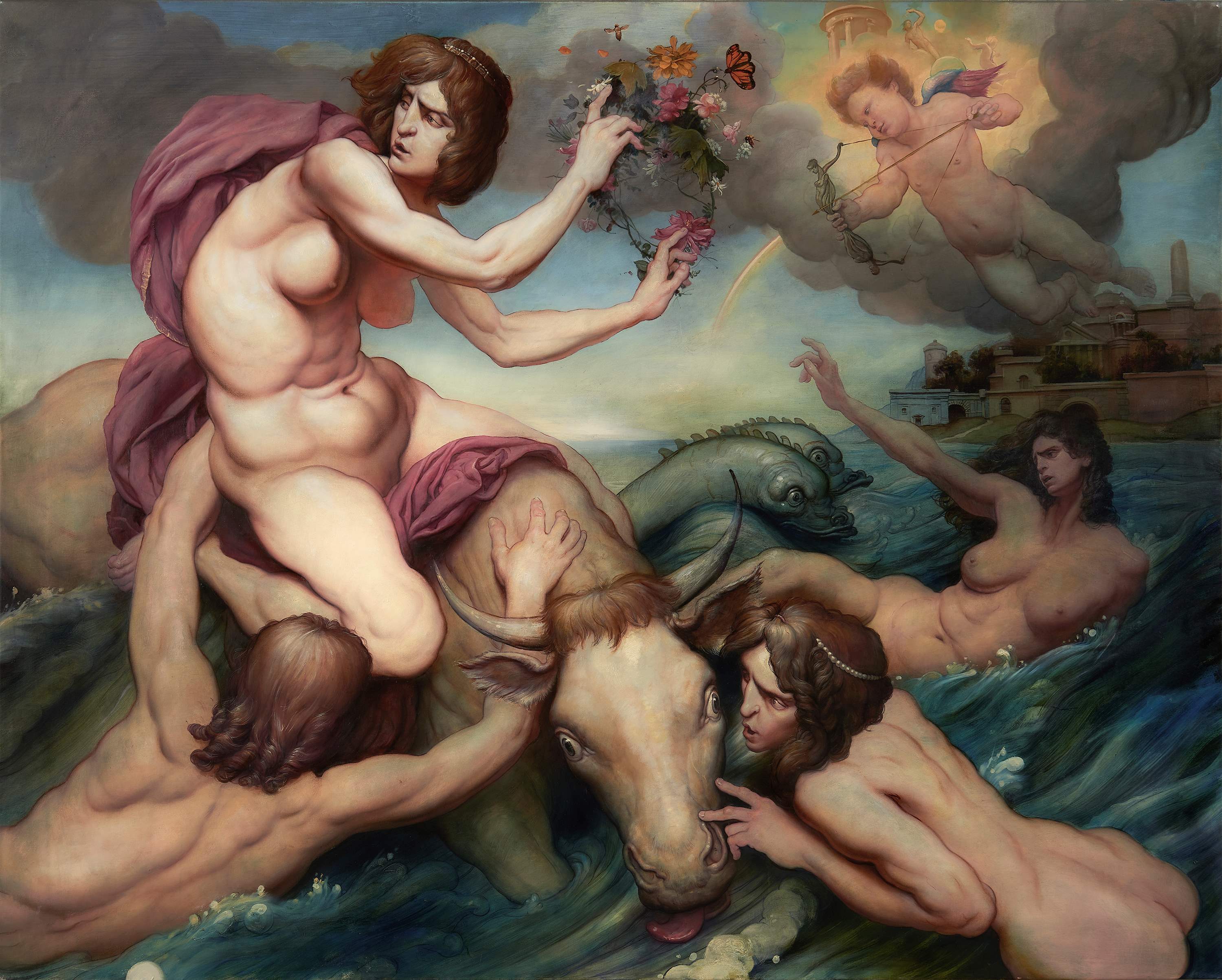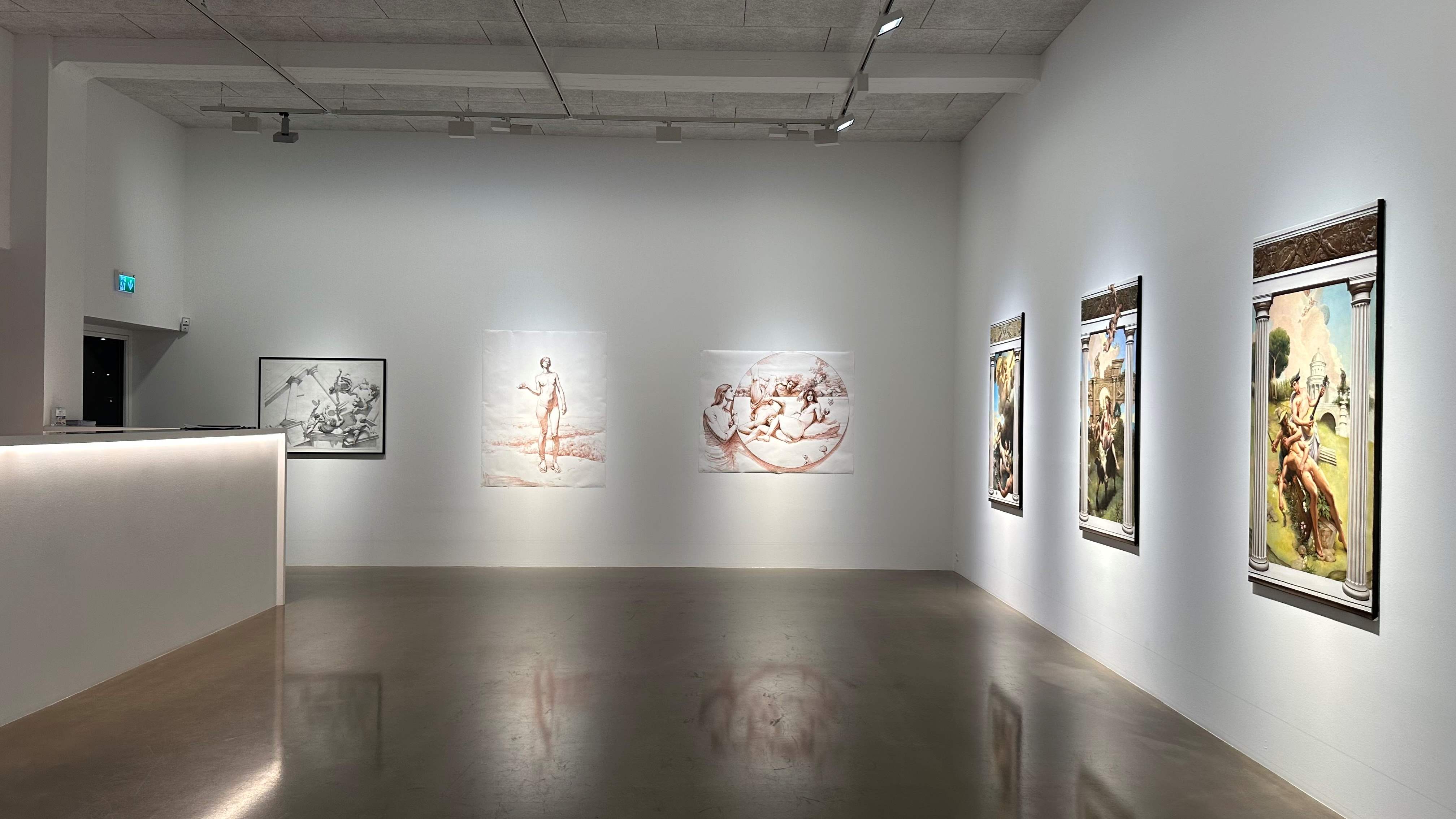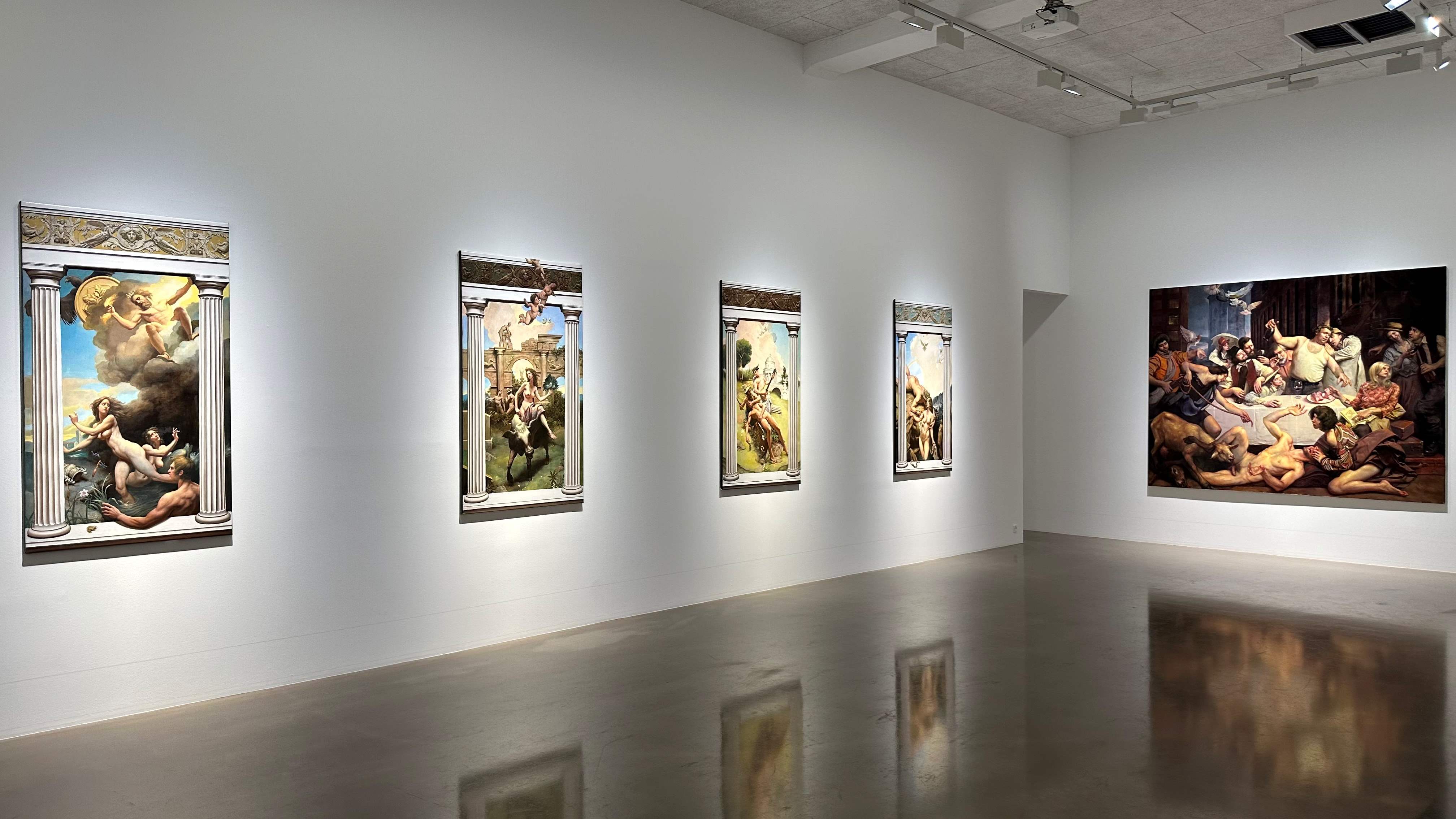 Adam Miller’s new solo exhibition is inspired by the poem Metamorphoses, written by the Roman poet Ovid, which is a compendium of stories of the gods and heroes of ancient Greece. It is playful and erotic and has inspired multiple great masterpieces of Western art. The Metamorphoses has been Miller's subject for the last four years, where he has been exploring the illusionistic mixture of architectural forms, sculpture, and realistic narrative scenes reminiscent of Italy's Renaissance palazzos and cathedrals.
