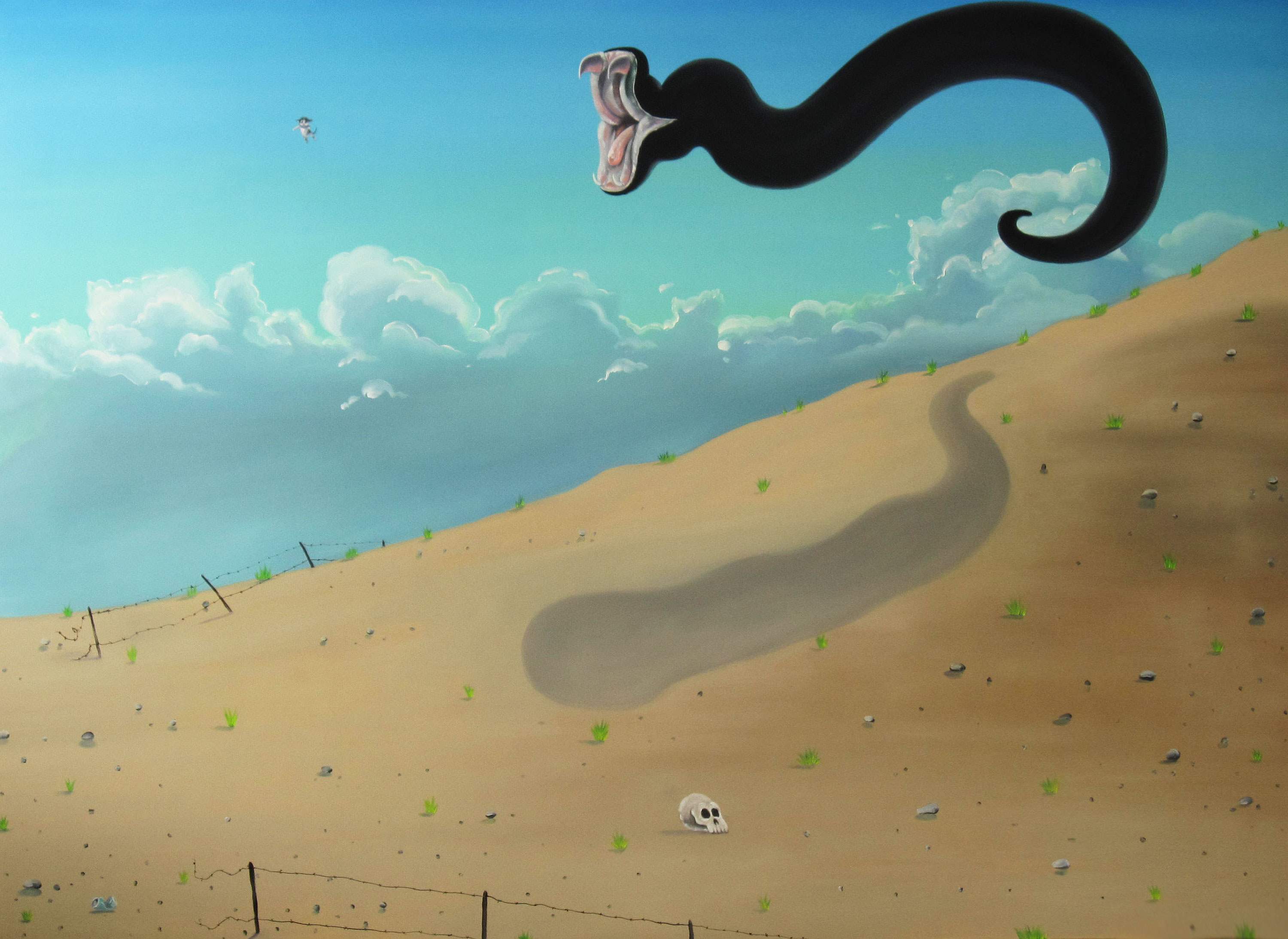 'The Wild Bunch' starts working as the oil, chalk, collage, watercolor, pencil, pen and acrylic gets thrown in all directions. From Surrealism to magic realism all the way to science fiction and pop art the viewer is thrown back and forth amongst these spectacular universes. As did the bullets fly under the Old West's harsh conditions, the viewer here must surrender to this wild bunch of artists letting their talent hit them like a shot through the heart.