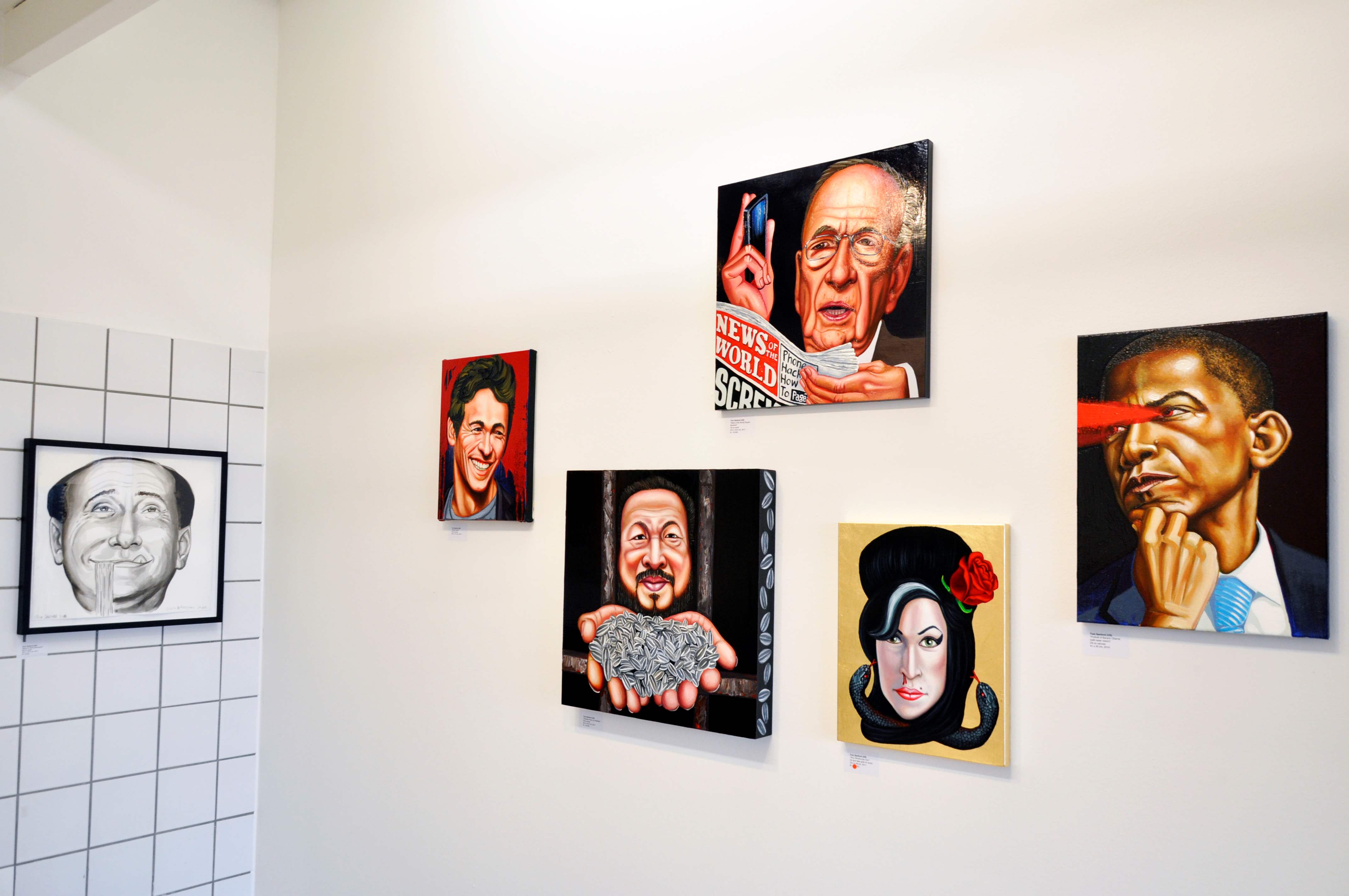 Britisk rocks nyligt afdøde bad-girl, Amy Winehouse, er malet som et ikon med henblik på at blive æret af hendes fans og den ulækre udnyttelse af anti-heltene Charlie Sheen og Silvio Berlusconi er malet i skrigende, men smukke tableauer der fremstår som lige dele renæssance maleri og lav-pande politiske tegneserier. Sanfords arbejde er et bastard-mix af samme slags som den kultur det stammer fra.