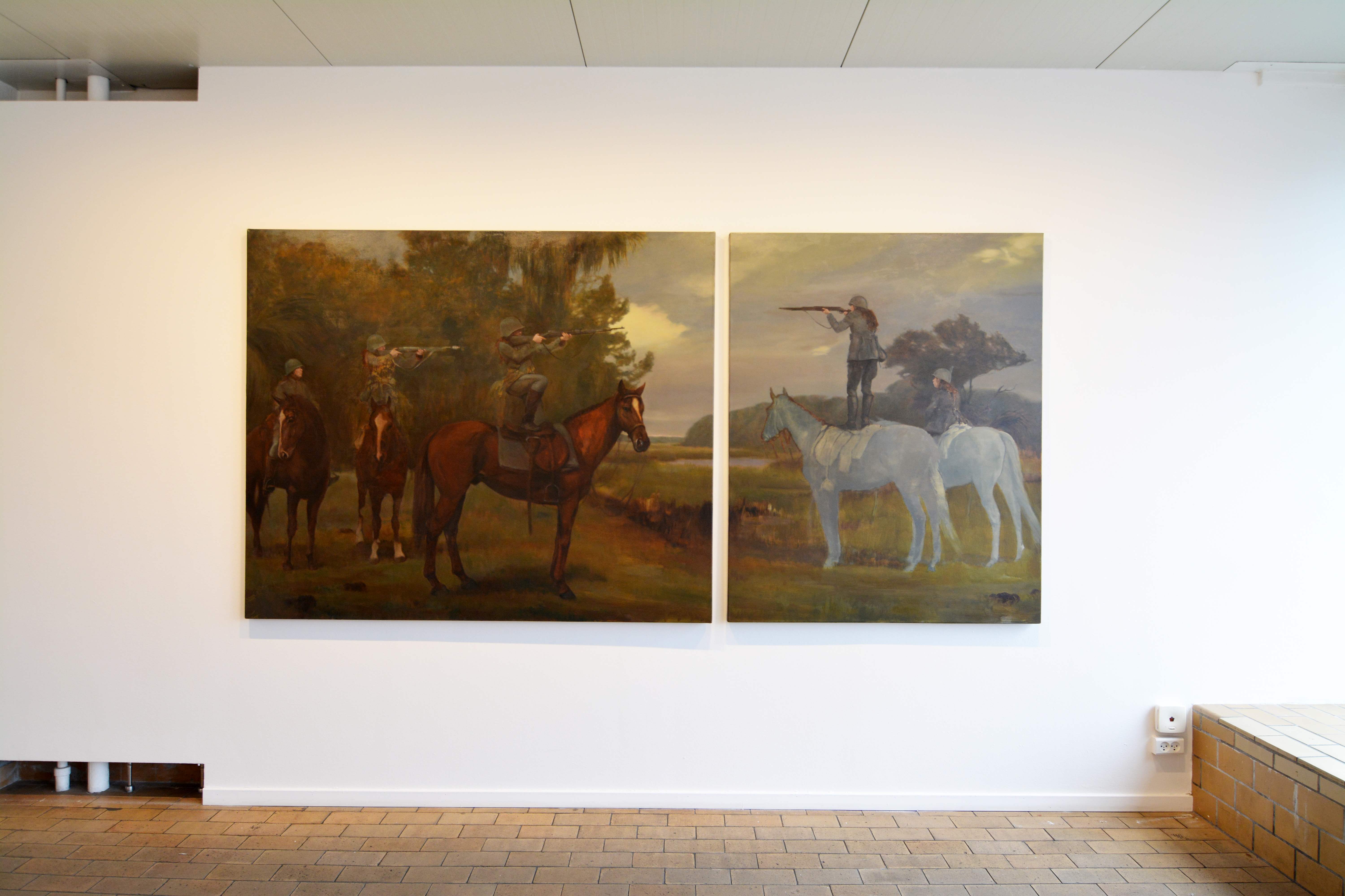 Abigail Schmidt operates at first sight within the frame of historical painting, but if you look closer you will find a lot of alluring twists like emaciated horses and anti-heroic soldiers that undoubtedly makes her works innovative and contemporary. In a bizarre but very convincing way Schmidt mixes unconnected elements like American landscapes with German soldiers resulting in absurd allegories of decline and turmoil.