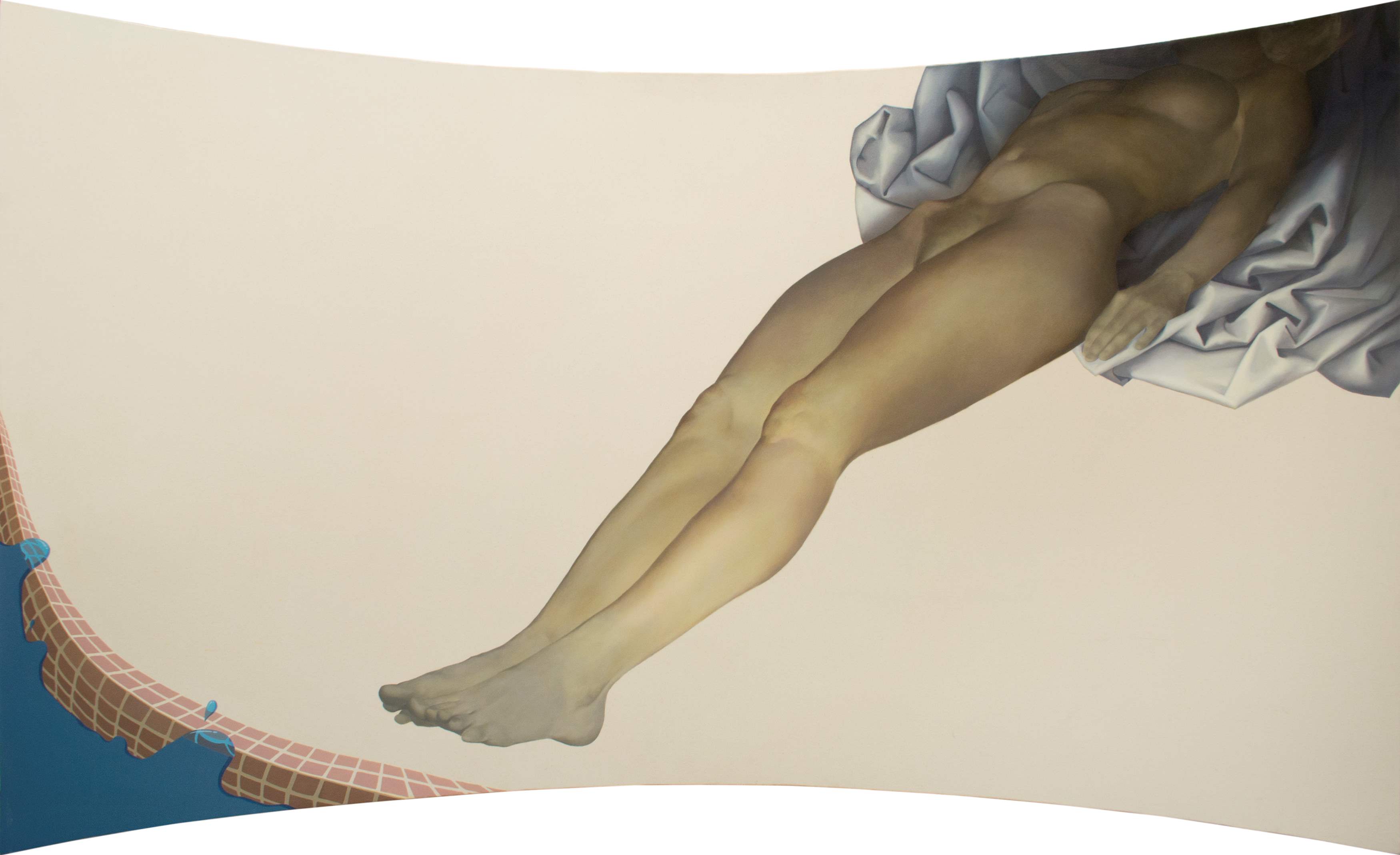 Shangkai Kevin Yu, on the other hand, doesn’t embed objects in his composition discreetly. With flying elements like a chair, a naked female body and obviously missing elements we are drawn into a world of the inexplicable. Kevin Yu mixes both objects and technics that we usually do not connect, which leaves us with interesting expressions when it comes to the media painting, as well as the obvious visual expression and the overall narrative of the work.